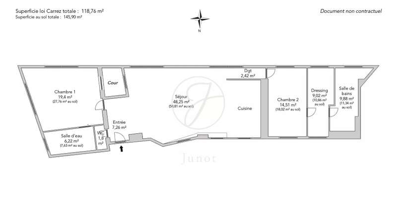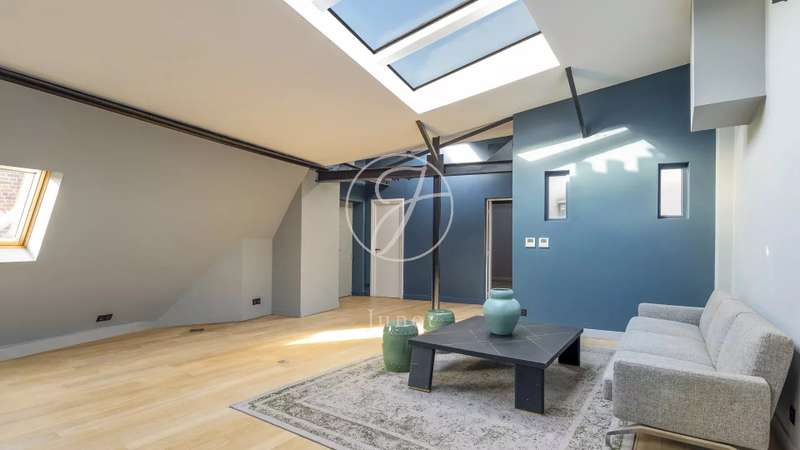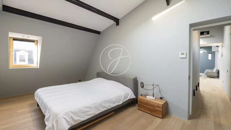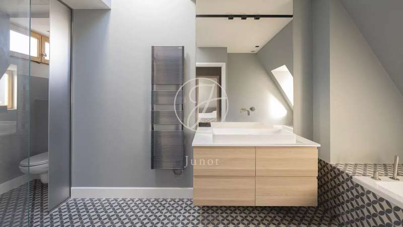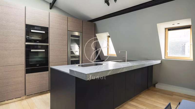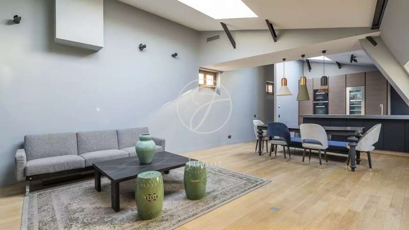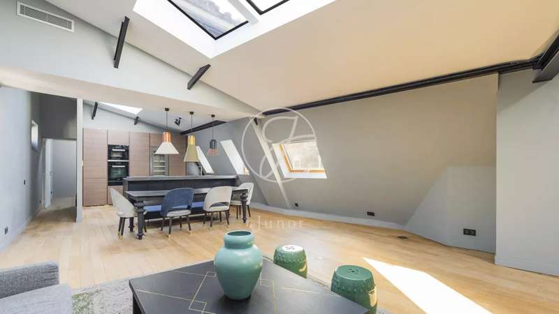In the heart of the Golden Triangle, on the sixth and top floor of a beautiful Haussmann building with janitor and elevator, superb apartment of 118.76sqm and 145.90sqm on the ground, entirely renovated with taste by an architect. In absolute calm, it boasts spacious accommodation. It comprises an entrance hall, a double reception room with a fully-equipped open kitchen, two suites with their own bathroom, shower and toilet, and a guest toilet. Reversible air conditioning throughout. Plenty of storage space. Highly optimized layout with no loss of space. A cellar completes this offer.