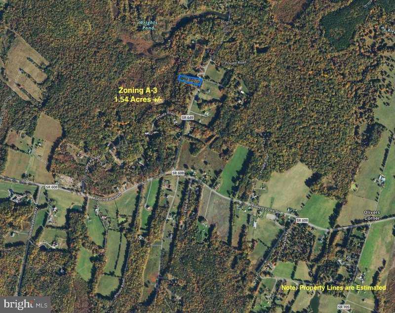 1.53 Acre +/- Residential Building Lot in Spotsylvania (Spotsylvania County) *A3 Zoning (Agricultural) *Paved State Maintained Roads *Electric Available *Approximately 138 feet of Road Frontage *No Percolation Tests or Septic Reports Available *Lot Dimensions are estimated via GIS *House setback requirements - 30 ft from front property line, 10 feet from both side lines, and 35 feet from rear property line *Many uses allowed by right with this zoning such as recreation, residential and many more (Documents and Online Resources Available) *4 Minutes (3 miles) to Oakley Forest Wildlife Management Area (Wildlife Refuge) containing 4,459 Acres for hiking, camping, wildlife viewing and hunting *20 Minutes to Route 3 (Plank Road Shopping *25 minutes to Central Park Shopping Center *30 Minute Drive to Downtown Fredericksburg *Information is considered reliable but not guaranteed, all information to be verified by prospective purchasers. *Bring Your Builder or Ask for Recommendations. *Ready for your vision and enjoyment.