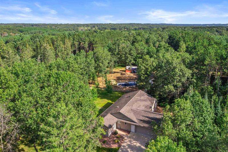 Recreational PARADISE! Over acres in a private setting in the highly sought after Amherst area! This 4 bedroom 3.5 bathroom home with attached 2 car garage with floor drain and walk-out lower level has endless amenities, including beautiful wood and tile flooring through much of home, stainless steel appliances, walk-in pantry, stunning granite countertops in kitchen, vaulted ceiling, upper bathrooms and laundry room, in floor heat in lower level and sun room! En-suite bathroom in primary bedroom, large craft area and office in lower level, family room, and additional walk-out bedroom with attached hot tub room leading to covered fire pit at exterior! 40' x 52' Clearly pole building with insulated workshop, 240-amp service, 100-amp service, concrete floor, air compressor, and 14' tall sliding doors on either end can allow for drive through RV storage! Driveway has utility hook-ups for RV as well! Home is on a Generac generator with dedicated 500 gallon LP tank with separate 1000 gallon LP tank for home! Per seller, in-floor heat at basement, 4 season room and attached garage. Shooting range set up at back of property, chicken pen is ready for birds, lots of wildlife present, especially deer! UPDATES (per seller): New kitchen appliances, granite countertops in kitchen and kitchen sink, professionally epoxied garage floor, hot tub room added to property on slab, concrete walk to fire pit added, covered fire pit with gazebo structure and metal roof built, most light fixtures in home replaced, portion of yard fenced in, shooting range added, office in lower level added, tile in lower level installed, granite countertops at main floor bathrooms, safety tub in primary suite added lower level bathroom vanity/mirror/lights replaced! Tile installed at bathrooms and laundry rooms and more! ADDITIONAL INCLUSIONS: wood splitter, pull-behind lawn sprayer, zero-turn mower, air compressor in pole building, chairs at covered fire pit, hot tub, fridge and microwave in lower level, additional refrigerator in laundry room, generator While the list of possible uses for the property is quite long, the properties that can accommodate this kind of recreation are in short supply. Call today to schedule a private tour of this home before it's too late!