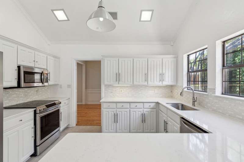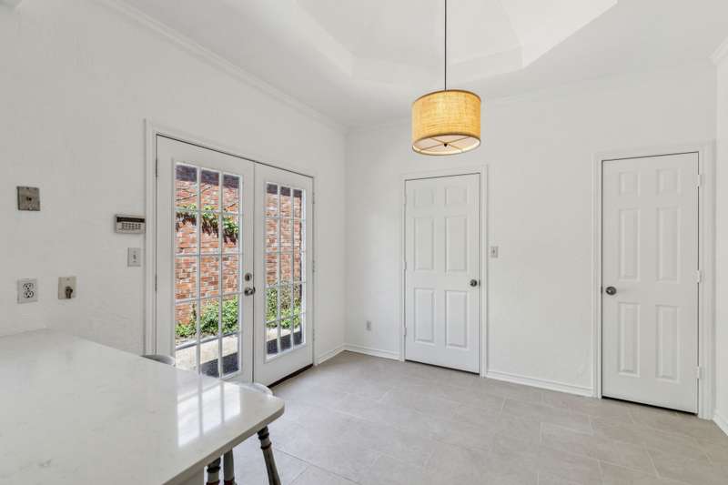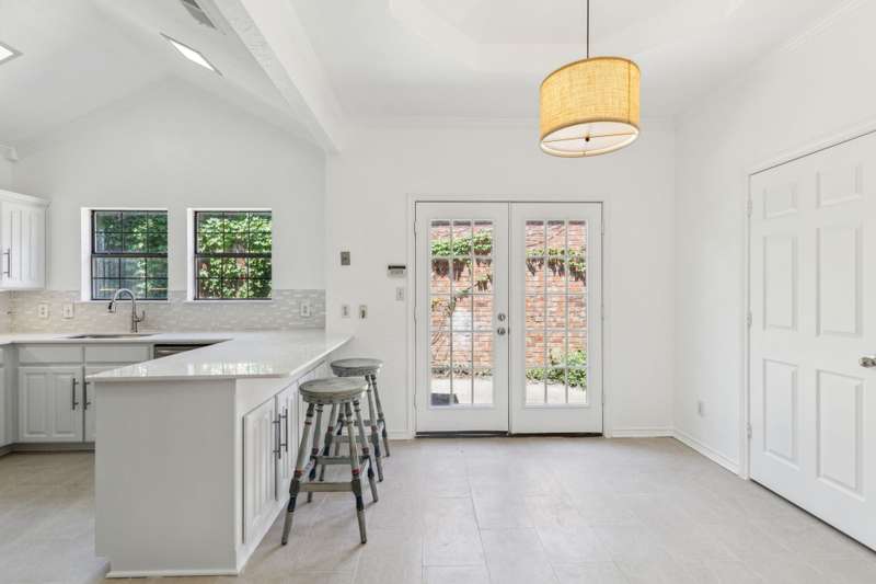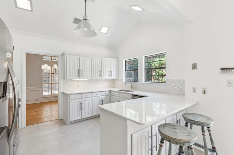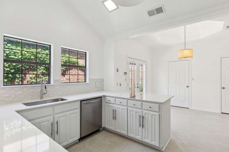 Tucked away in a prime Dallas neighborhood resides a newly renovated 3-bedroom, 2-bath, 2-car garage home close to shopping, dining and major roads. As you enter the front door, a charming outdoor atrium greets you, perfect for planters or quiet reflection. Natural light fills the spacious den, illuminating the newly refinished wood floors, vaulted ceilings and a cozy fireplace. The kitchen showcases new granite countertops, stainless steel appliances and a charming breakfast nook overlooking a small outdoor area. The large primary suite includes a walk-in closet and dual vanities. A lovely outdoor back patio adds the finishing touch. With one of the largest square footage floor plans in the subdivision, this hidden gem offers the perfect blend of comfort, style and peaceful outdoor living.
