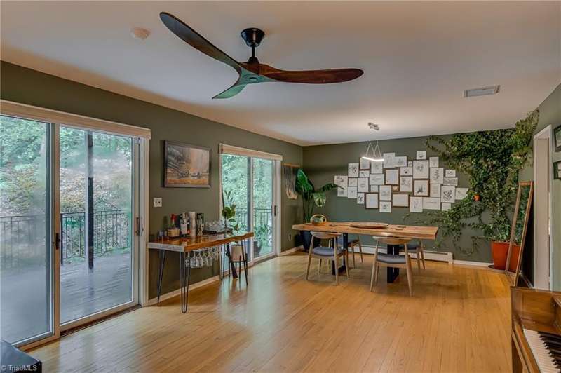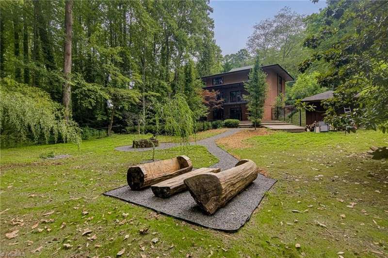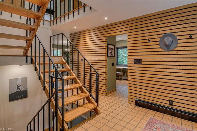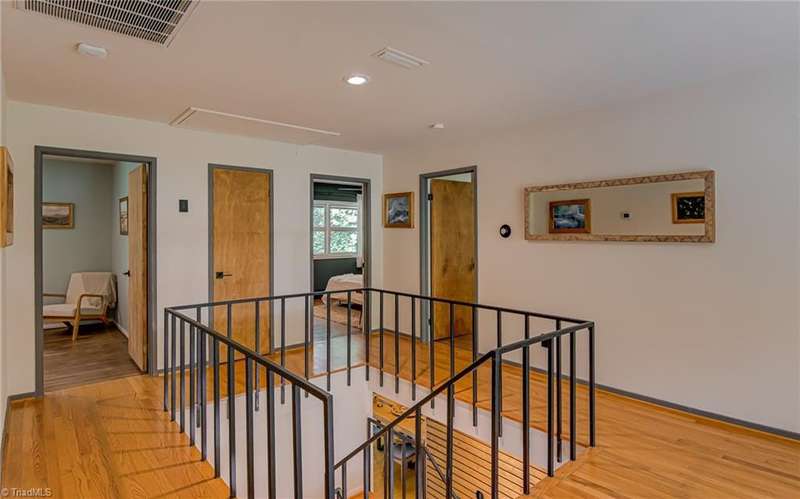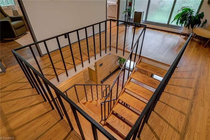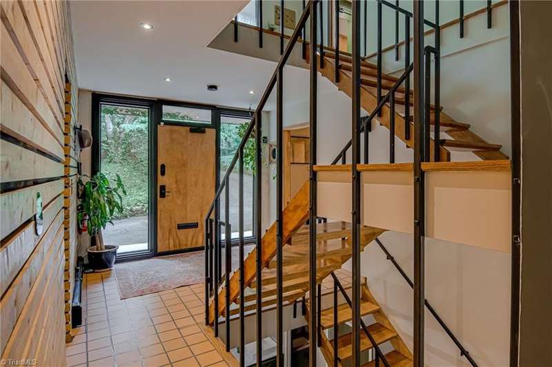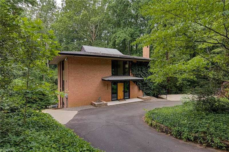The cool factor.. Designed in 1965 by acclaimed Modernist architect, Lamar Northrup, this mid century modern home will excite the senses of any seeking something very out of the ordinary. With a comfortable and accommodating main floor and primary bedroom, it leads to a large living room perfect for entertaining and a covered deck overlooking its serene back yard. Downstairs you will find an exercise room or studio and guest suite that could be used as a second living space for family or friends.The upstairs bedrooms with a second primary provide total privacy from the rest of the home. Lots of office space choices for any who wish to work from home in one of the coolest places in town close to everything Winston-Salem !Due to traffic concerns present, showings are limited to hours between 10 am till 2 pm with exceptions for later scheduled showings from 6 pm till 8pm.