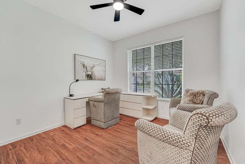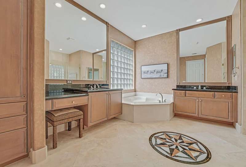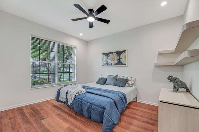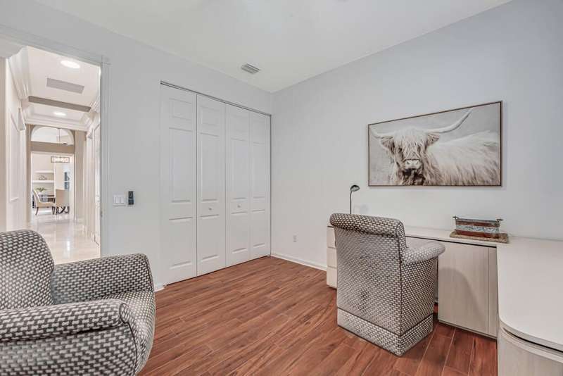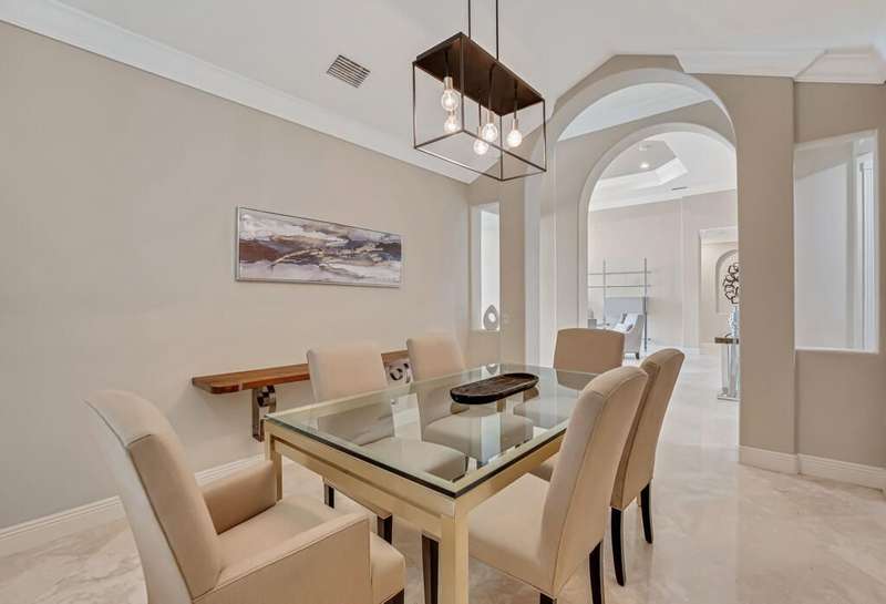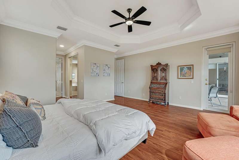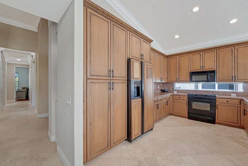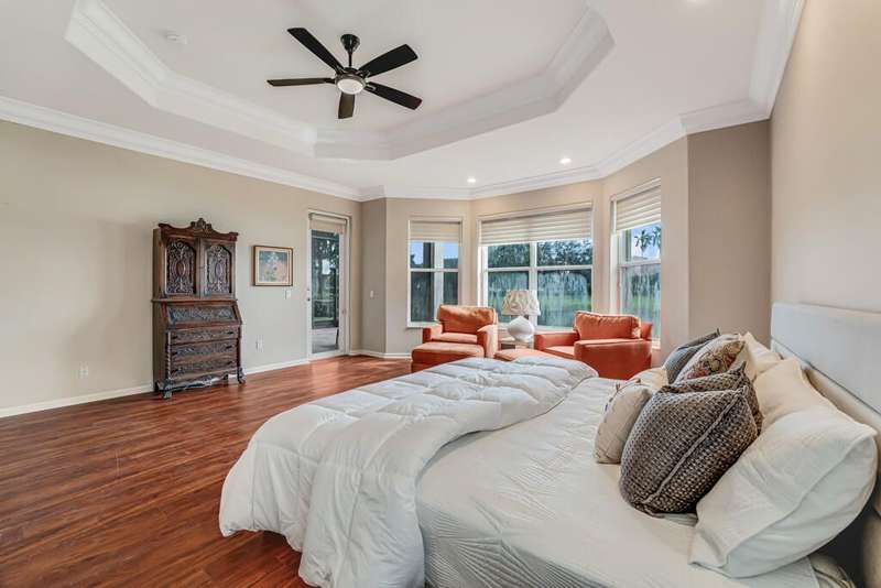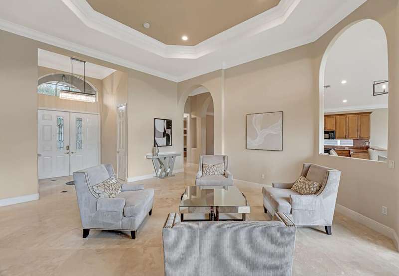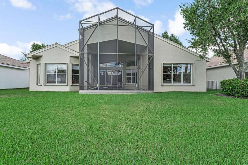 Magnificent MAIN LAKE WITH FOUNTAIN VIEWS make this 4 bedrm, 2 1/2 bath model home one of the most desirable in the community! A rare find, gorgeous marble floors & double entry doors greet you with light and bright open, airy space throughout! Gorgeous new lighting fixtures, LED high hats, super high ceilings, & a huge screened lanai with beautiful flooring , privacy overlooking water water everywhere create instant peace & serenity! No carpeting! Accordian shutter protection throughout! Walk to clubhouse, social tropical pool, full Serv restaurant, 6 pickleball crts, 3 Bocce crts! 10 tennis crts, 2 indoor racquetball CRTs, indoor whirlpool,resistance pool, lap pool too! Suana,steam, massage, Beaty salon, STATE OF ART FITNESS CTR! Country club lifestyle without the dues! LOVE THIS HOUSE!