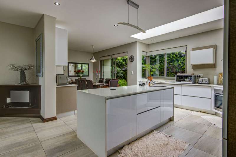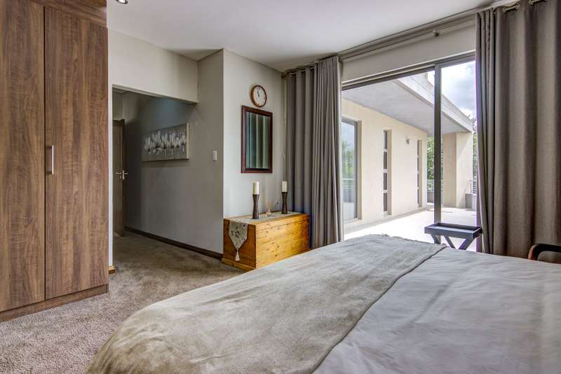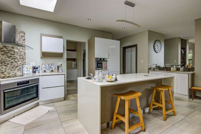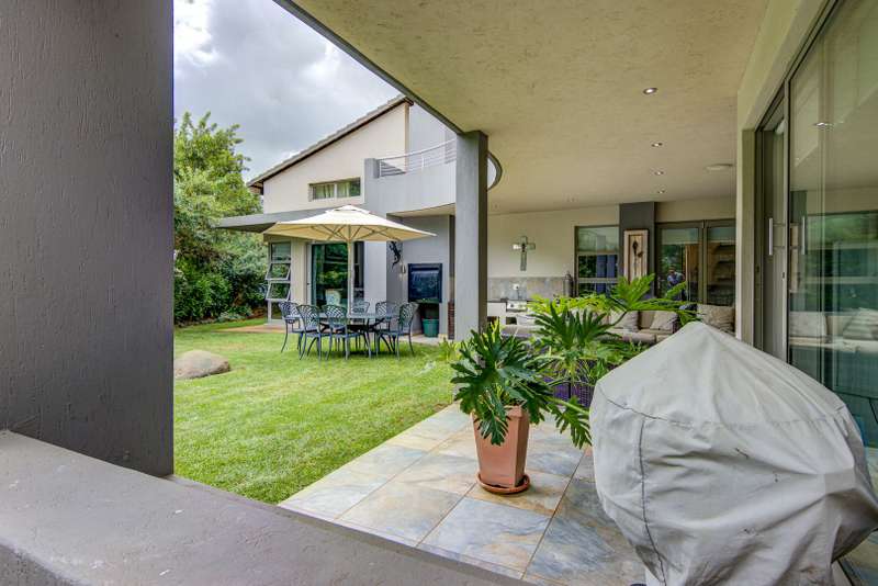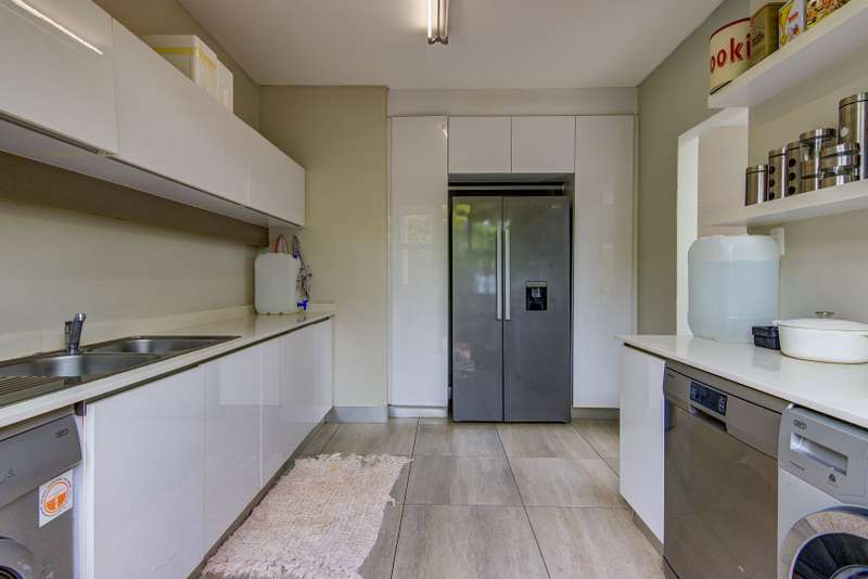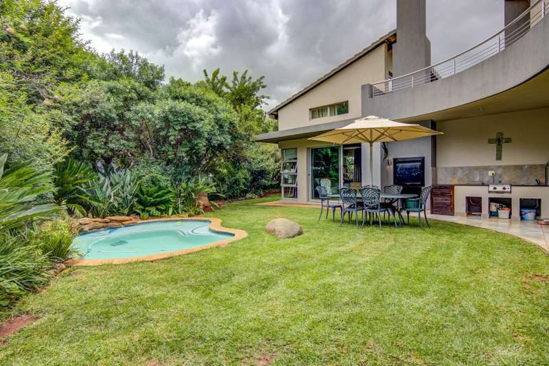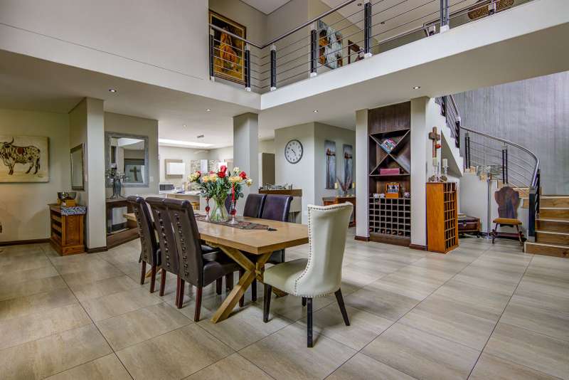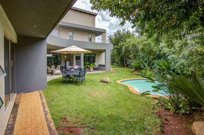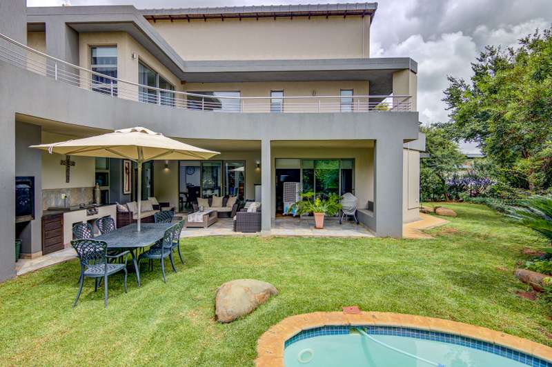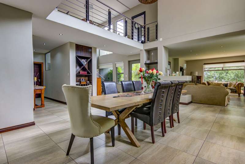 Discover this stunning double-story modern contemporary residence located in the prestigious Serengeti Golf and Wildlife Estate. The main suite is conveniently situated on the ground floor, featuring a dressing area, a spacious en-suite bathroom, and sliding doors that lead directly to the pool area and a private courtyard. The open-plan lounge and dining room are designed for seamless living, with sliding doors that open onto a charming patio. The expansive kitchen is a chef’s dream, complete with a breakfast nook, sliding doors to a private courtyard, a pantry, and a separate scullery. It's equipped with a large stove, extractor fan, microwave, and fridge/freezer. A guest toilet adds to the convenience of the layout. This remarkable home offers parking for up to four vehicles, along with an automated side garage door perfect for a trailer or golf cart. Additionally, there's a separate study for your work-from-home needs. Step outside to the covered patio, which boasts both a built-in gas and wood braai, perfect for entertaining. The spacious dining and seating areas overlook a beautifully landscaped garden featuring a lovely pool. A gracefully winding staircase leads you to the first floor, where you'll find two generously sized bedrooms—one with an en-suite bathroom and the other adjacent to a family bathroom. There's also a versatile third space that can serve as a family room, playroom, or be transformed into a fourth bedroom. Don’t miss the hidden room, ideal for art or hobbies, along with wrap-around balconies for enjoying the views. For added convenience, an outside en-suite bedroom makes an excellent guest suite or can serve as a teenage or nanny suite. The property is equipped with two water tanks and a drying yard, enhancing its appeal. This beautiful home is a must-see! Contact me today to arrange your exclusive viewing.