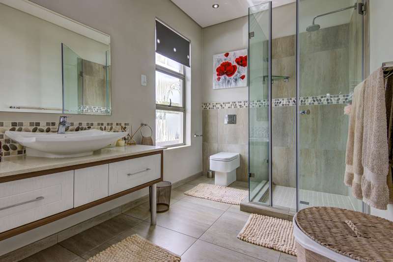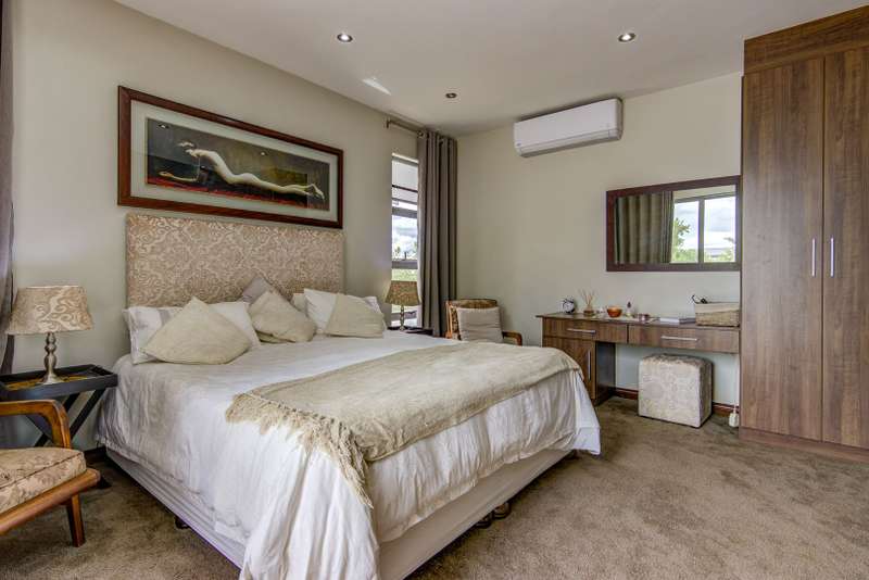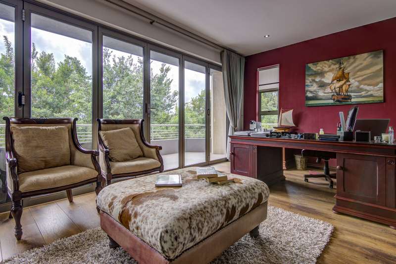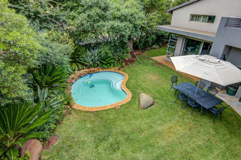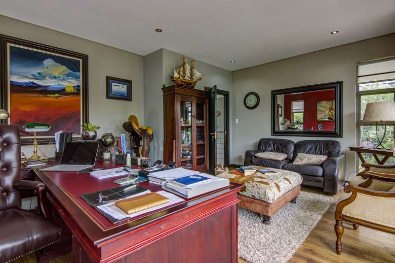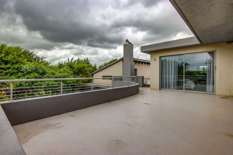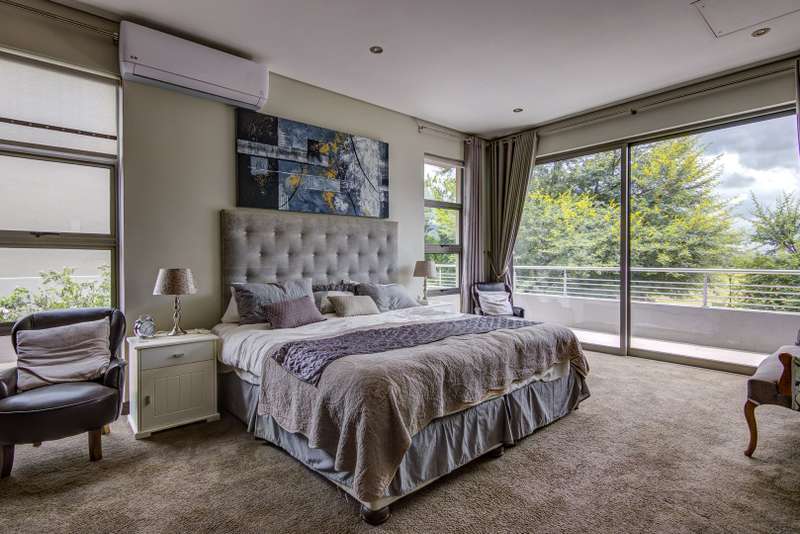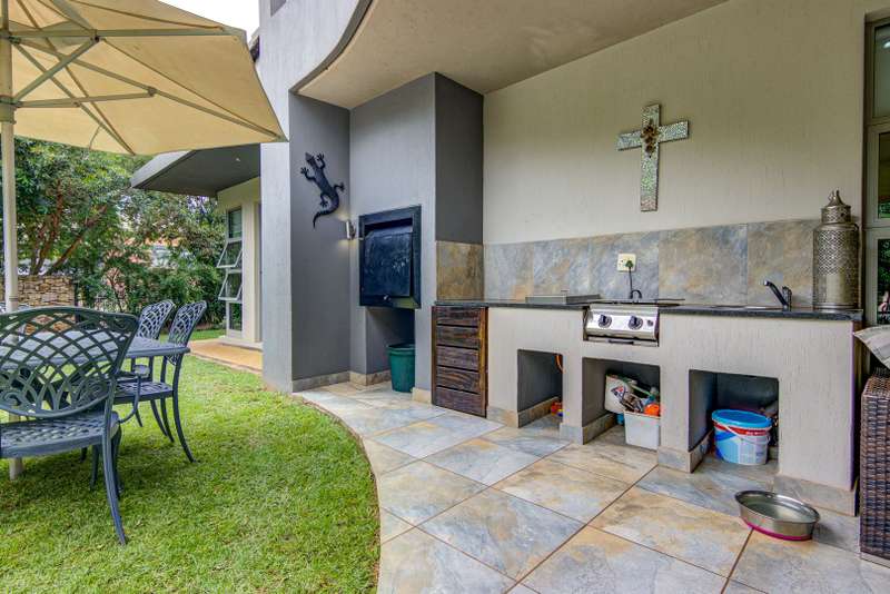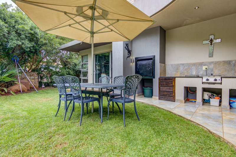 Discover this stunning double-story modern contemporary residence located in the prestigious Serengeti Golf and Wildlife Estate. The main suite is conveniently situated on the ground floor, featuring a dressing area, a spacious en-suite bathroom, and sliding doors that lead directly to the pool area and a private courtyard. The open-plan lounge and dining room are designed for seamless living, with sliding doors that open onto a charming patio. The expansive kitchen is a chef’s dream, complete with a breakfast nook, sliding doors to a private courtyard, a pantry, and a separate scullery. It's equipped with a large stove, extractor fan, microwave, and fridge/freezer. A guest toilet adds to the convenience of the layout. This remarkable home offers parking for up to four vehicles, along with an automated side garage door perfect for a trailer or golf cart. Additionally, there's a separate study for your work-from-home needs. Step outside to the covered patio, which boasts both a built-in gas and wood braai, perfect for entertaining. The spacious dining and seating areas overlook a beautifully landscaped garden featuring a lovely pool. A gracefully winding staircase leads you to the first floor, where you'll find two generously sized bedrooms—one with an en-suite bathroom and the other adjacent to a family bathroom. There's also a versatile third space that can serve as a family room, playroom, or be transformed into a fourth bedroom. Don’t miss the hidden room, ideal for art or hobbies, along with wrap-around balconies for enjoying the views. For added convenience, an outside en-suite bedroom makes an excellent guest suite or can serve as a teenage or nanny suite. The property is equipped with two water tanks and a drying yard, enhancing its appeal. This beautiful home is a must-see! Contact me today to arrange your exclusive viewing.