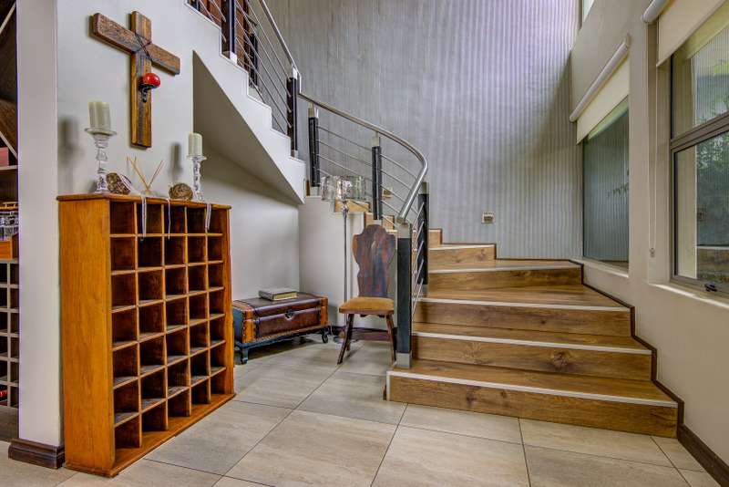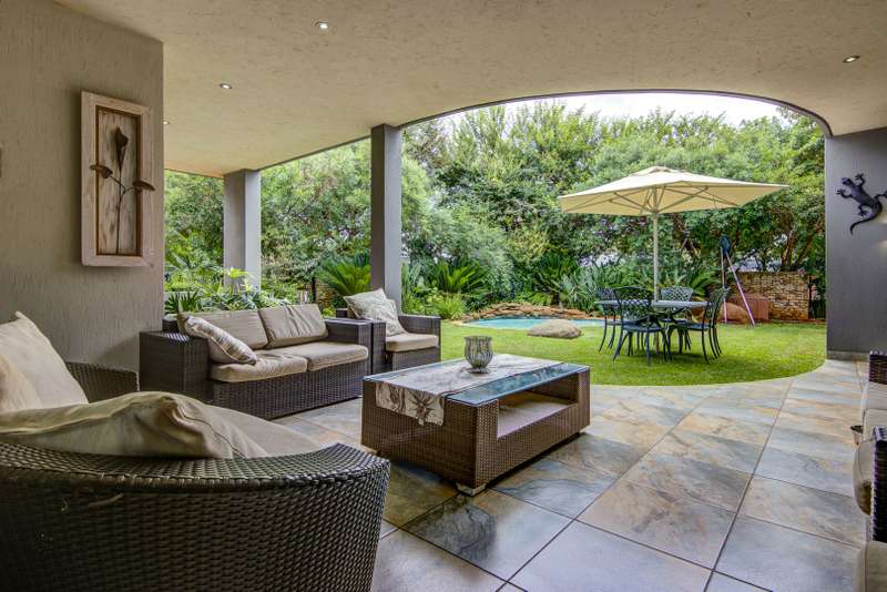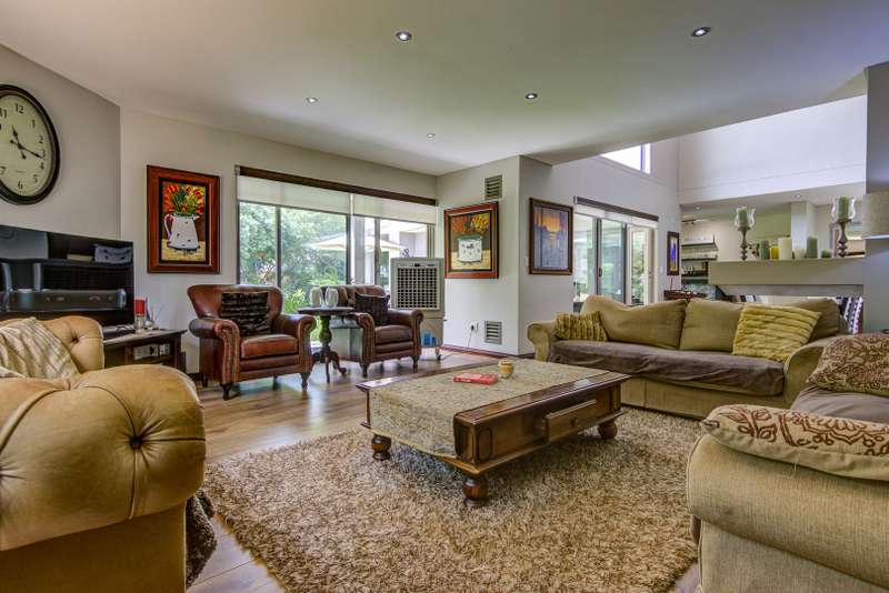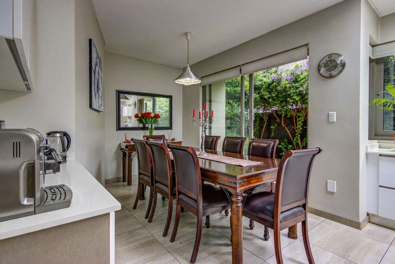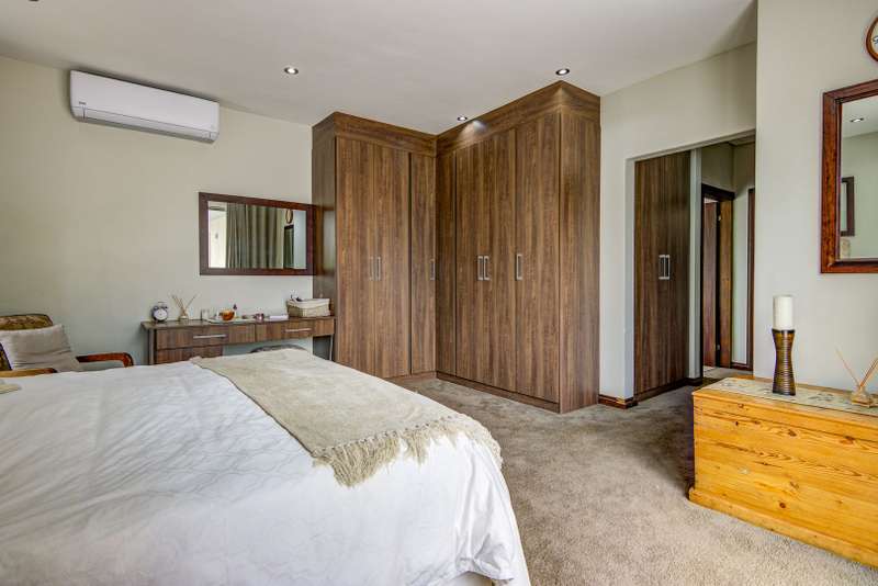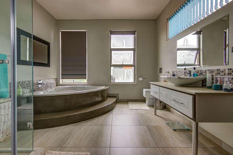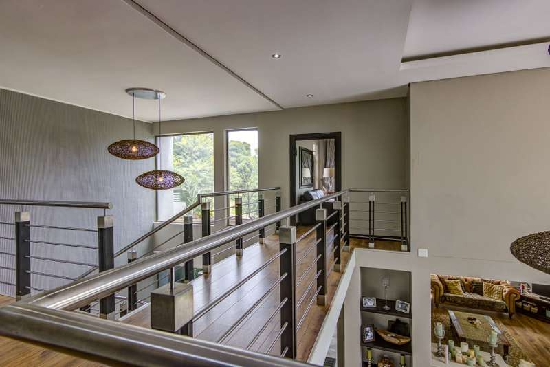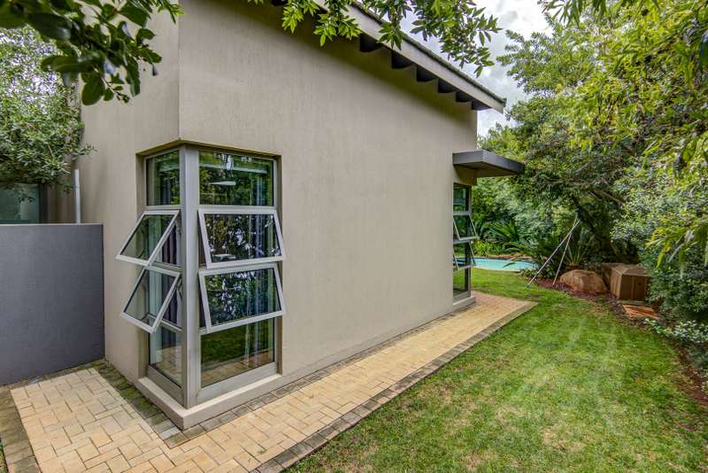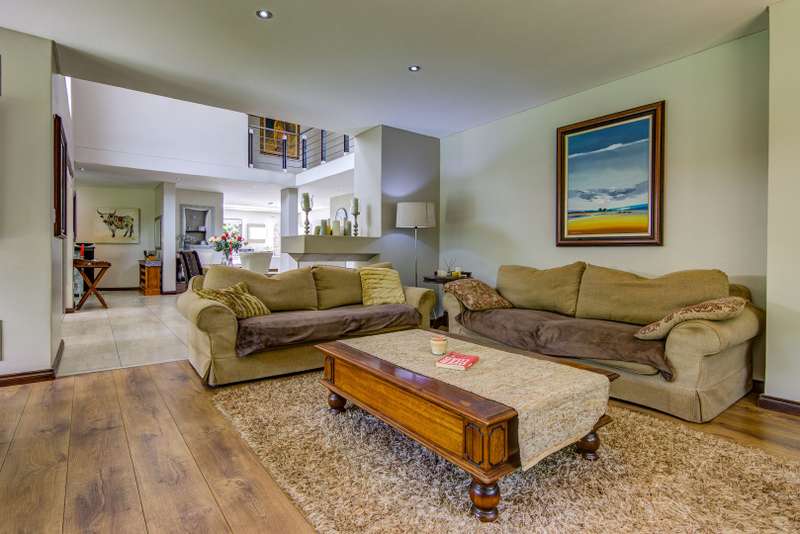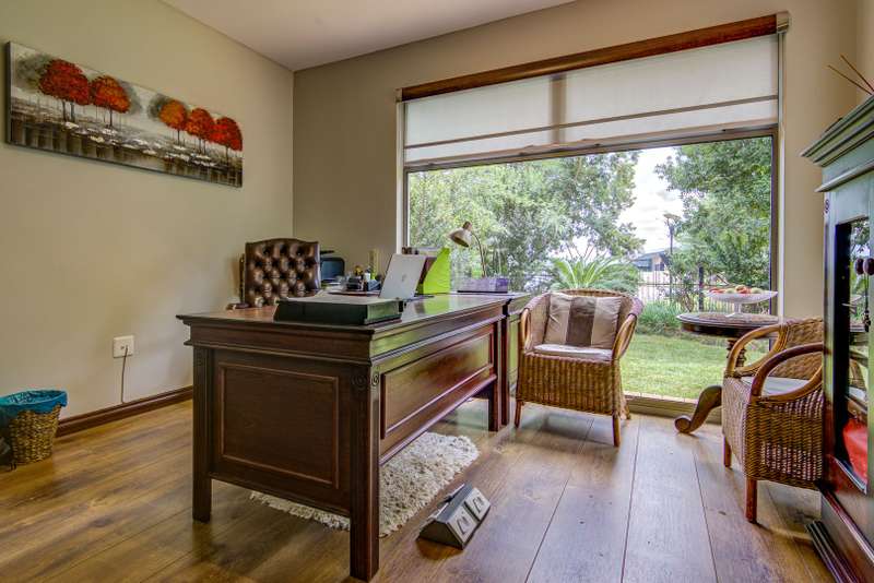Discover this stunning double-story modern contemporary residence located in the prestigious Serengeti Golf and Wildlife Estate. The main suite is conveniently situated on the ground floor, featuring a dressing area, a spacious en-suite bathroom, and sliding doors that lead directly to the pool area and a private courtyard. The open-plan lounge and dining room are designed for seamless living, with sliding doors that open onto a charming patio. The expansive kitchen is a chef’s dream, complete with a breakfast nook, sliding doors to a private courtyard, a pantry, and a separate scullery. It's equipped with a large stove, extractor fan, microwave, and fridge/freezer. A guest toilet adds to the convenience of the layout. This remarkable home offers parking for up to four vehicles, along with an automated side garage door perfect for a trailer or golf cart. Additionally, there's a separate study for your work-from-home needs. Step outside to the covered patio, which boasts both a built-in gas and wood braai, perfect for entertaining. The spacious dining and seating areas overlook a beautifully landscaped garden featuring a lovely pool. A gracefully winding staircase leads you to the first floor, where you'll find two generously sized bedrooms—one with an en-suite bathroom and the other adjacent to a family bathroom. There's also a versatile third space that can serve as a family room, playroom, or be transformed into a fourth bedroom. Don’t miss the hidden room, ideal for art or hobbies, along with wrap-around balconies for enjoying the views. For added convenience, an outside en-suite bedroom makes an excellent guest suite or can serve as a teenage or nanny suite. The property is equipped with two water tanks and a drying yard, enhancing its appeal. This beautiful home is a must-see! Contact me today to arrange your exclusive viewing.
