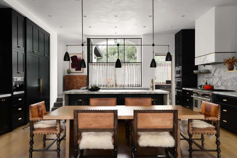 Inside, elegance meets functionality with custom oak beams, intricate splayed wall details, and rich plaster finishes. The chef’s kitchen is a culinary masterpiece, featuring a top-tier Wolf and Sub-Zero appliance package, including a 48” range, steam oven, and two dishwashers, designed for seamless meal preparation and entertaining. The marble-clad kitchen and exquisite bathrooms showcase hand-selected materials from Exquisite Surfaces. Thoughtfully designed spaces include a sophisticated library, an exercise room on the main floor that can double as a private office, and a steam shower for ultimate relaxation. The climate-controlled wine room is on par with the finest restaurants in town, perfectly complementing the oversized tequila tasting bar, ideal for entertaining in style. The primary suite is a true retreat, featuring a spa-like bath with breathtaking views of the grounds and a Rehme steel door leading to a private outdoor space, creating a resort-style living experience that seamlessly blends indoor and outdoor luxury.