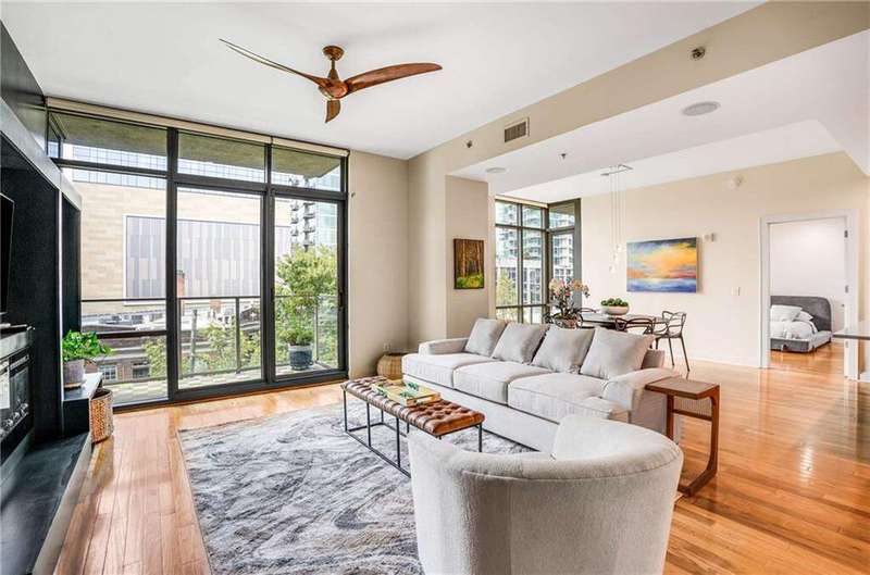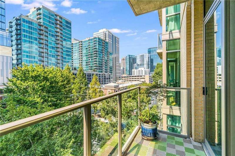 Welcome to 905 Juniper - The best boutique condo building in Midtown! Unit 512 has the one of the best floor plans available with an open living area combining the kitchen, living, and dining areas. The floor to ceiling windows fill the rooms with an abundance of natural light, two balconies provide great outdoor living space, and hardwood floors throughout. The kitchen has been updated with beautiful cabinets, stainless steel appliances, kitchen island seating, and an external exhaust for the gas range. Right off the kitchen is a combined laundry and pantry with plenty of storage. The living area has built-in bookcases with access to the main balcony. The dining area can accommodate an oversized table for large dinner parties. The primary suite has abundance of space with it's own balcony, two large walk-in closets, and fantastic primary bath. The primary bath has a double vanity, soaking tub, walk-in shower, and water closet. The large guest suite has a large walk-in closet and secondary closet with a full bath with a soaking tub/shower combination. The third bedroom suite can have a dual function as an office, tv room, or home gym. The home has two parking spots with electric car charger, storage unit, and two newer HVAC units!