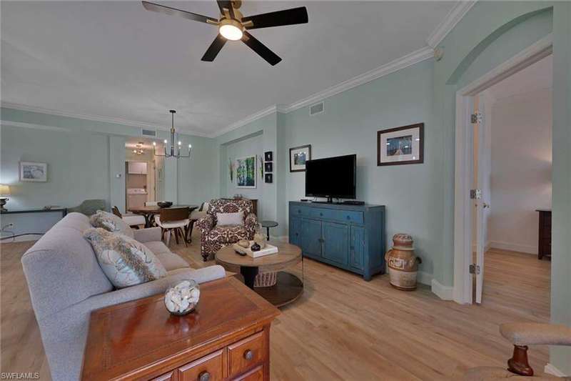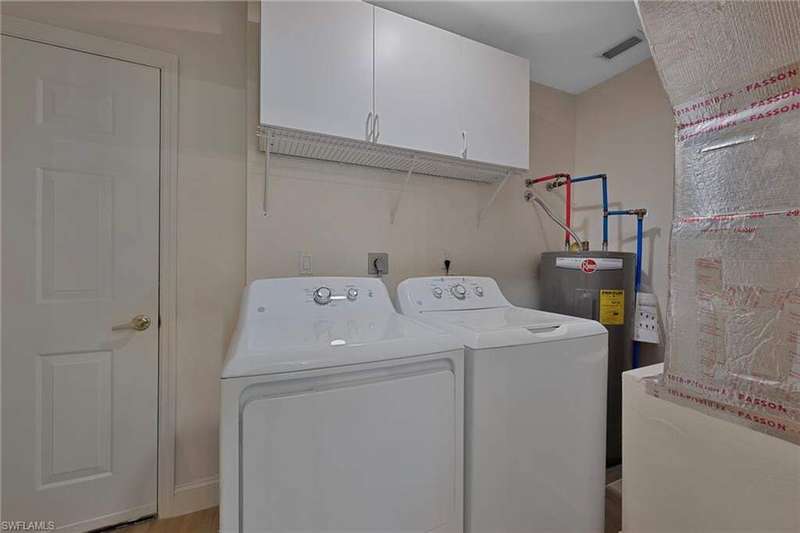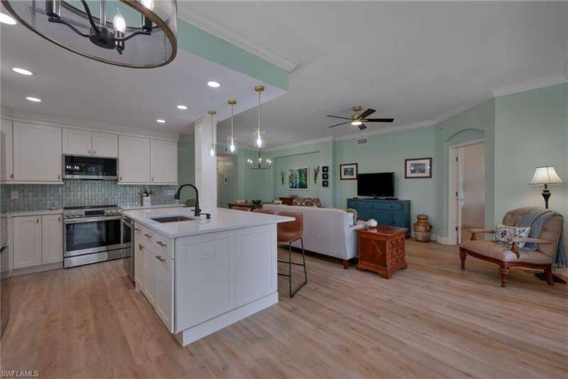 Indulge in modern coastal elegance with this first-floor, light-filled 2BR/2BA end unit, offering the perfect blend of lock-and-leave convenience and the ease of single-level living and direct access without stairs, all while showcasing breathtaking sunset views from the spacious screened-in lanai. The sophisticated open layout features a new chef-inspired kitchen with a large quartz island offering undercabinet storage on both sides, LG stainless steel appliances (dishwasher and refrigerator include extended warranties), slow-close custom cabinetry, and designer lighting and fixtures throughout. Updated baths, luxury vinyl plank flooring, and a laundry/mud room off the garage further enhance the home. Offered furnished for an effortless, move-in-ready lifestyle, this residence is equally suited as a seasonal retreat, full-time residence, or rental opportunity. The exterior is being updated with a fresh, contemporary blend of off-white and taupe tones, beautifully illustrated in the neighborhood photo. Set within a quiet, gated community just minutes from shopping, fine dining, RSW Airport, and Gulf beaches.