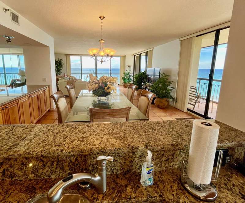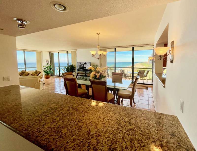 Rarely available SE corner Condo offered for seasonal rental at the Martinique East Tower. Enjoy OUTSTANDING OCEAN VIEWS south down island as far as the eye can see. Spacious 2,011 LSF 2 BR 3.5 BA. Ocean beach views from every room. Lounge and chill out on the sunny south balcony. Upgraded open kitchen area w/great views. Comfortably furnished with King Bed in Primary and Guest BR. Interior laundry area and powder room. Enjoy Martiniques array of fine amenities. New pool deck is underway w/ 2 heated pools, jacuzzi hot tub, tennis courts, the Q poolside restaurant and bar, 24 hour manned gate and concierge in lobby, residents lounge, billiards, library, dog walks and landscaped walkway to the beach and ocean dips. Perfect for a relaxing winter getaway.