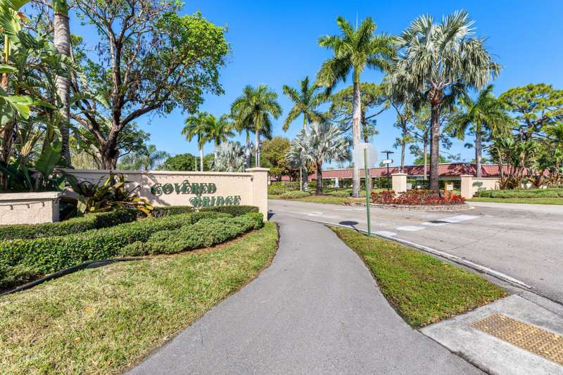 Motivated Seller!! Beautiful 2 bed 2 bath ground floor unit in covered bridge! Brand new roof, new A/C and lots of updates for peace of mind. Impact windows in both bedrooms with shutters for both kitchen and living room sliders. Granite counters in the kitchen with black appliances. Murphy bed in the second room. In-unit washer/dryer. East/west exposure. One assigned parking space with guest parking nearby. Enjoy miles of walking trails in the active 55+ community of covered bridge. There are many amenities and activities to enjoy including a clubhouse with two pools. Good proximity to shopping, parks, I95 and the turnpike.