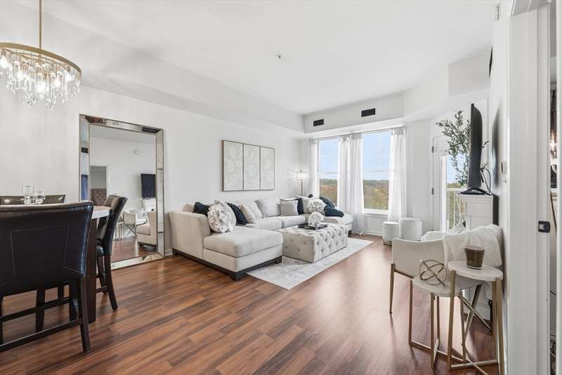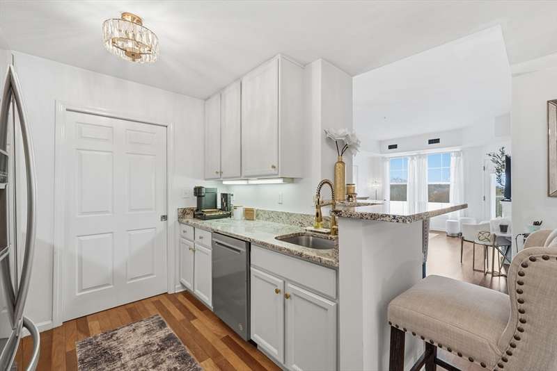 Embrace resort-style living at Ironwood on the Green. Elegantly appointed 1BR, 1BTH luxury residence. The open layout features 12 ceilings, in-unit laundry, and a sun-drenched dining/living area with a slider leading to a private balcony showcasing views of the Ferncroft Golf Course. The functional kitchen offers stainless steel appliances, granite countertops, a large pantry, and a charming breakfast nook. The spacious bedroom boasts an oversized walk-in closet, while designer d cor and elegant finishes create a warm, sophisticated ambiance. Enjoy premier amenities including a heated saltwater pool, jacuzzi, fitness center, library, function room, and secure building entrance with on-site management. Includes garage space #66 plus guest parking. Pet-friendly and ideally located near Routes 1 and I-95, this exclusive community offers the perfect blend of luxury, leisure, and location.