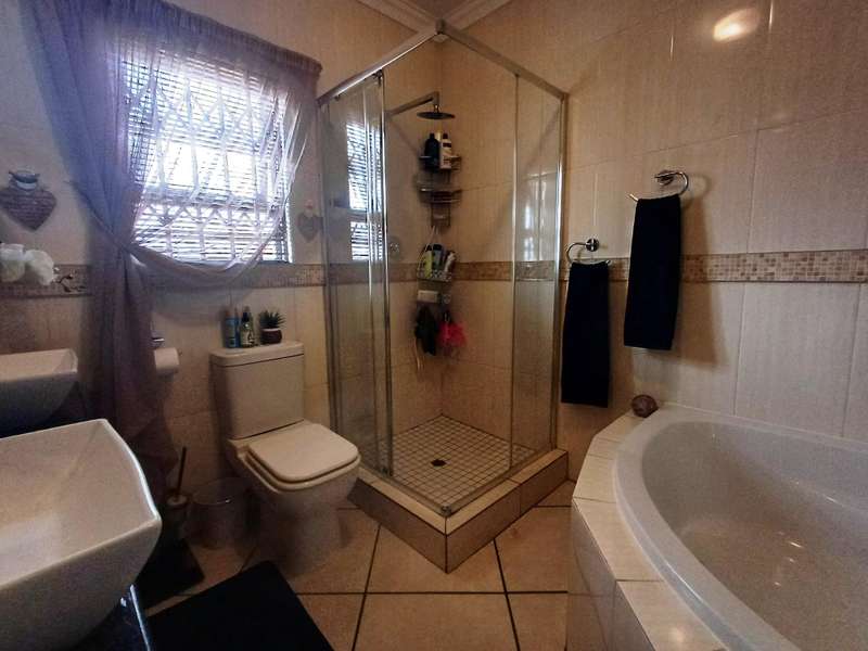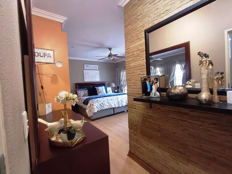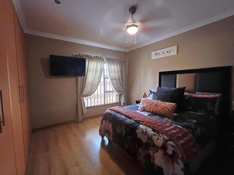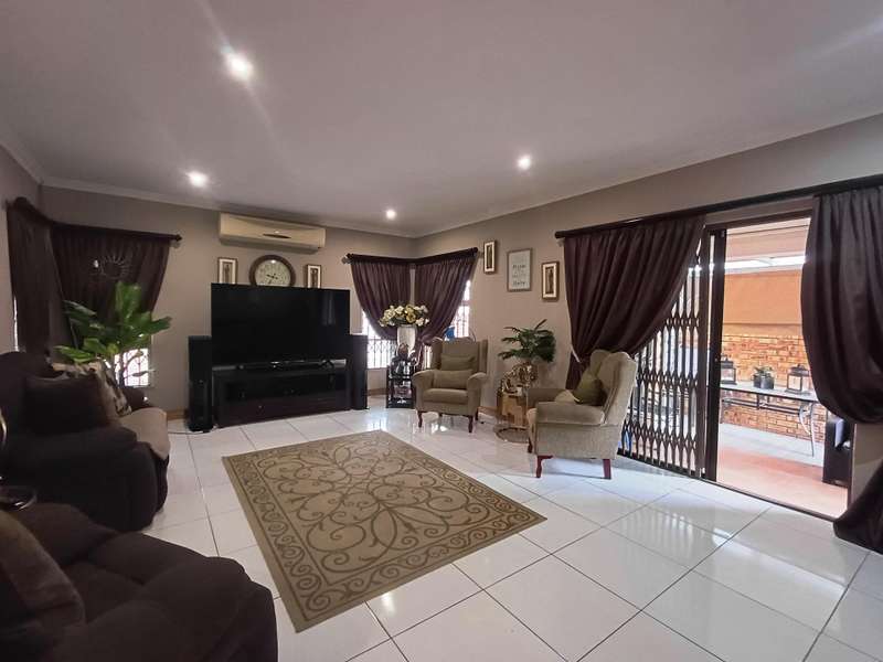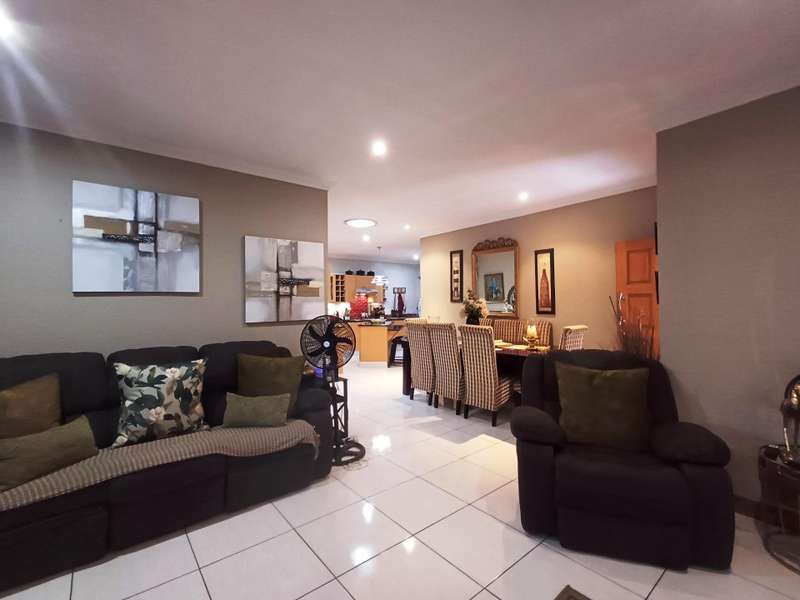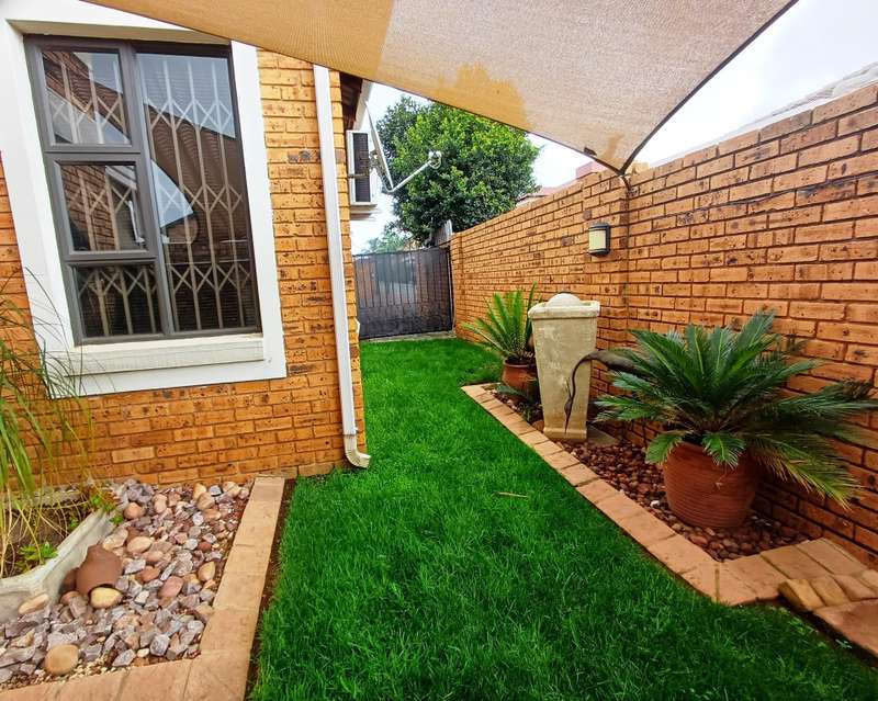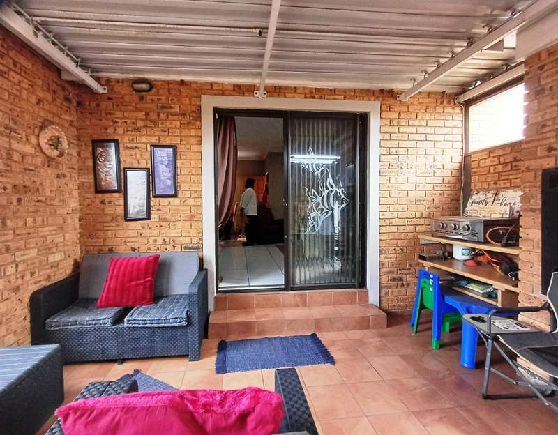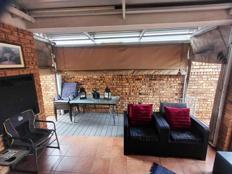 From the living area, you step into an enclosed patio with a built-in braai and a well maintained private garden