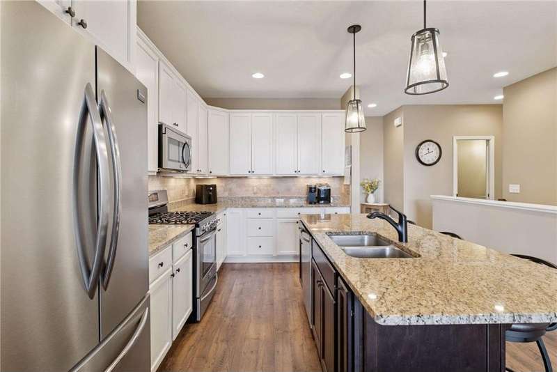 Immaculate townhome located in a well-maintained association. This home features a stone and shake front exterior and a gourmet kitchen with a spacious center island, stainless steel appliances, hard-surface countertops, and hardwood flooring. Enjoy main-level living with a dedicated office, tray-vaulted primary suite, main-level laundry, and a vaulted living room. Additional highlights include one gas fireplace, a private deck, and a walk-out lower level with ample storage and a concrete patio. Convenient guest parking is available. The neighborhood offers easy access to Hwy 169, retail, medical facilities, dining, shopping, and entertainment.