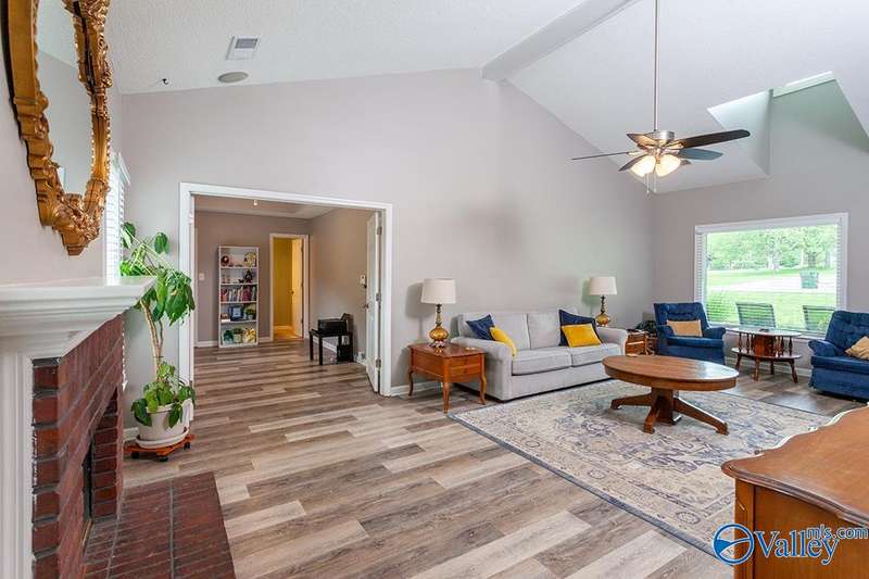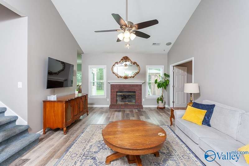 $5000 buyer closing or rate buydown Harvest Neighborhood new windows 4 Bedrooms plus office 3 bath desirable corner fully fenced lot with detached building & swingset. Patio w/pergola covered front porch, wood burning fireplace Granite Counters new disposal and Dishwasher, bay window eating area Primary suite vaulted ceiling, spacious closet, whirlpool tub, separate tile shower and frameless glass doors and rain shower, double sinks and granite counters. Family room with wood burning fireplace, vaulted ceilings LVP flooring. 2 car side entry garage with opener. ADT Security System with door sensors and smoke detectors. Home warranty included No HOA Septic has new field lines 2025