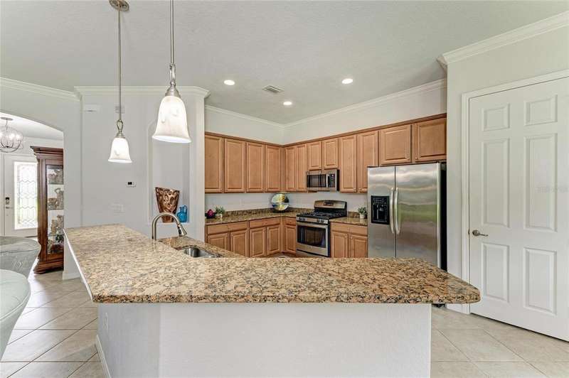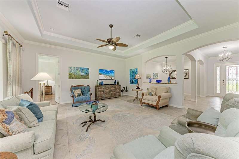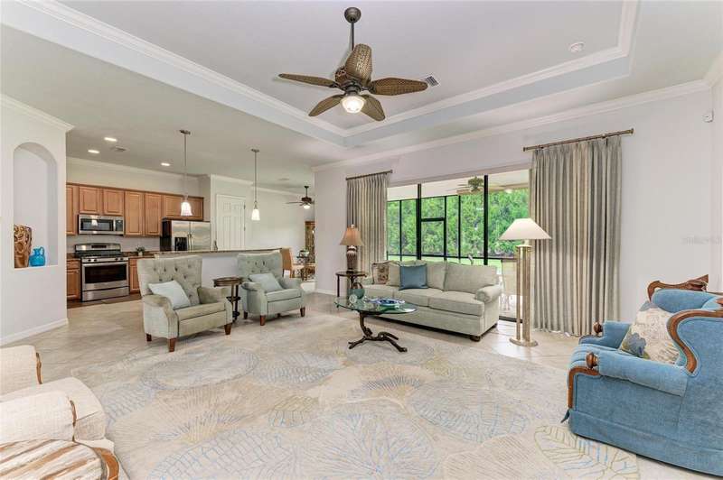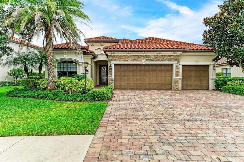 Welcome to this amazing 4-bedroom, 2-bathroom 3 car garage Princeton model in the highly sought after Bridgewater community in the most convenient and desirable area in Lakewood Ranch. This single-story residence with an open floor plan is the most popular floor plan in Bridgewater. The kitchen has granite countertops and breakfast nook. Adjacent to the kitchen is a cozy dining area with a window and sliding doors leading to the relaxing lanai. The Princeton is known for its large living room that is perfect for entertaining large groups of friends and family. The master suite has its own secluded wing in the house. The tray ceilings, crown molding, 8-foot doors, and 5-inch molding throughout the entire house add great grandeur to the home. The Princeton also has an oversized screened in lanai that would be perfect for adding a future pool. Residents enjoy access to a park, playground, and a gazebo area overlooking a serene lake. Just outside the neighborhood, you’ll find three large lakes, a public playground, and scenic walking trails. Lakewood Ranch is known for its A+ rated schools and is just minutes away from SRQ Airport, Tampa International Airport, Costco, UTC Mall and world class shopping and dining.