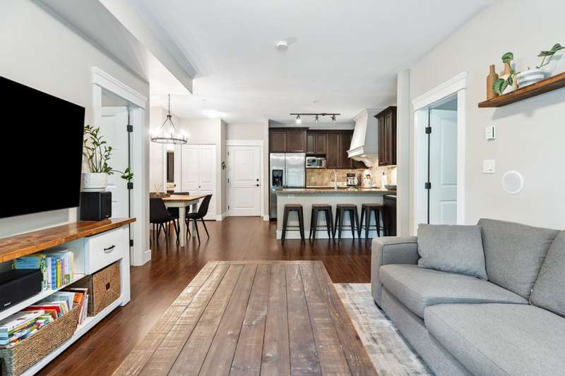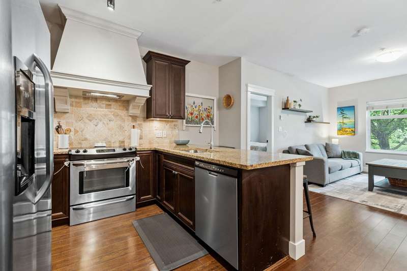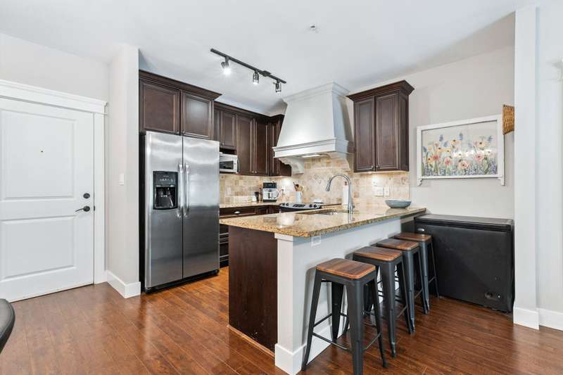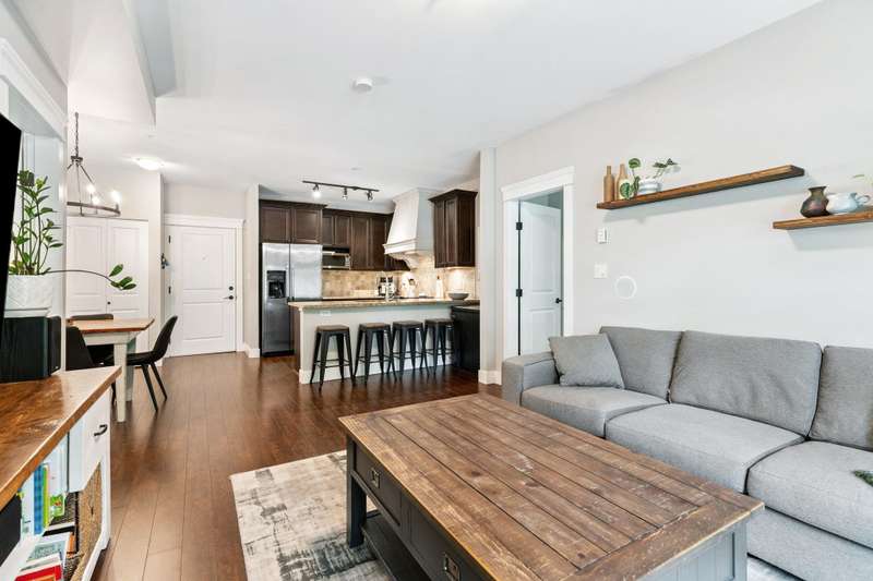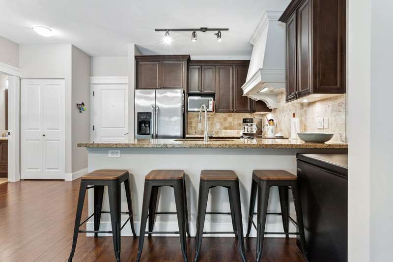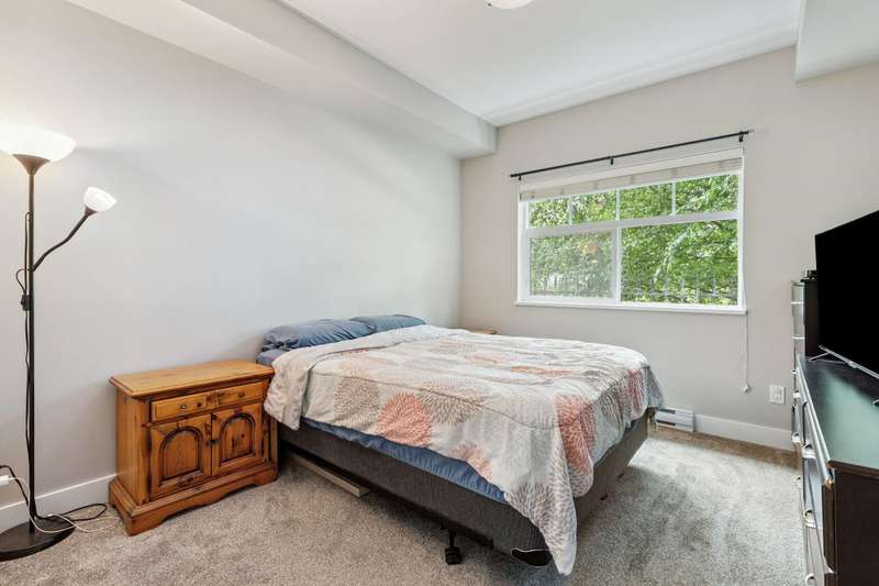 Almost 1000sf at the Willow Grand, an exceptionally well run building in Clayton Heights, this 2 bed 2 bath is a great starter home with room to grow, or a fantastic rental property. An ideal layout with separated bedrooms, an immense primary bathroom with double vanity, and a large walk-in closet, and 9 ft ceilings throughout. The living area has ample room for a large dining table, with a spacious living room and attached private balcony facing a quiet pathway. Restaurants, coffee, and grocery stores are all a short walk way, as well as Willowbrook Mall, and the upcoming Skytrain extension will be just a few minutes away - making it a great long term investment. Updates include a built-in surround sound system, new paint, and new washer and dryer. Bonus: 2 parking!