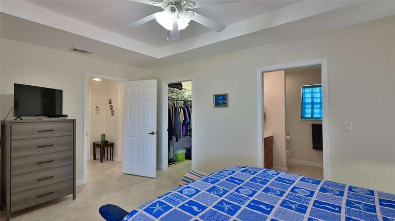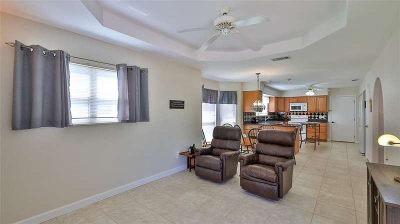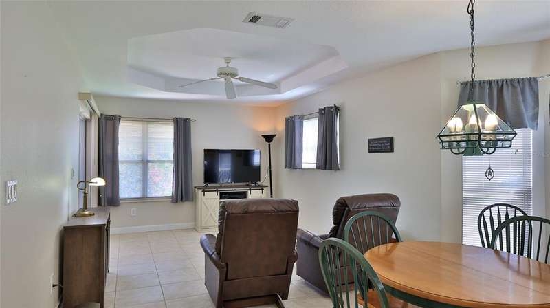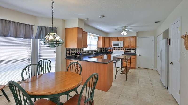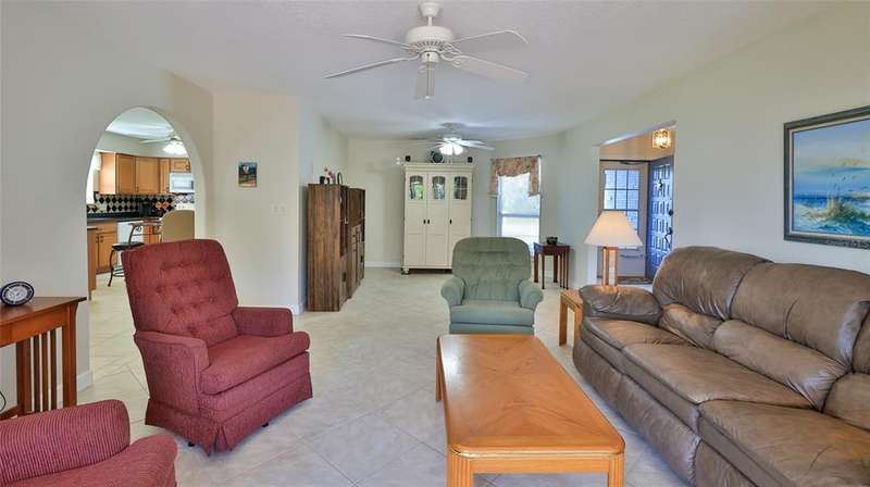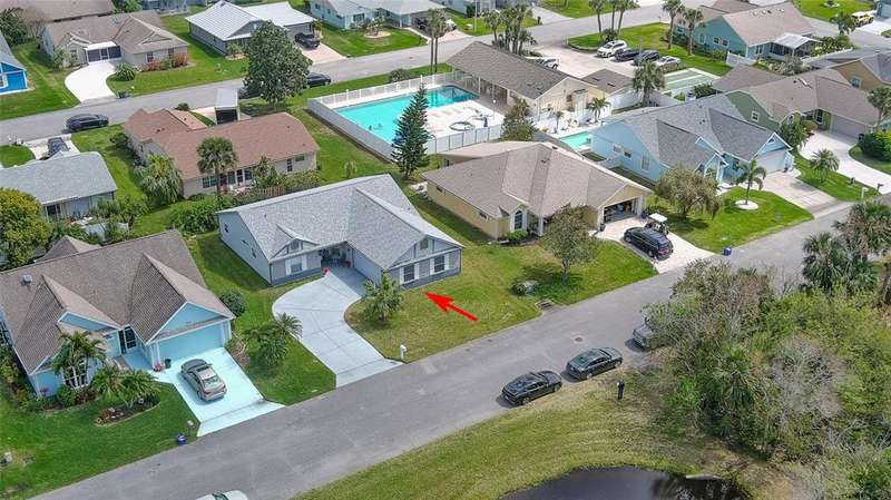 Well-maintained and updated single family home in golf community, with NEW ROOF & NEW A/C 2023, NEW WATER HEATER 2022. Vinyl siding for easy maintenance, and side loading garage with electric screen door. Like-new interior has all tile floors and is freshly painted. Family room with breakfast area provides separate living space from the living room/dining area. Primary ensuite bathroom features jetted tub and separate shower, with walk in closet. Shutter system throughout, and accordion shutters enclose the rear porch. Steps from community heated pool available by optional membership. Seller's Pool Membership Certificate is available, and furnishings are also negotiable. Nestled between 2 golf courses, easily accessed on your golf cart, to enjoy their restaurants and clubhouse facilities. Centrally located, close to everything! Ride your bike to the Historic Canal Street district, along scenic Riverside Drive to enjoy the restaurants, shops, boutiques and art galleries, as well art shows and the monthly Old Car Night. Eclectic Flagler Avenue shops, bars and restaurants are just a little farther east, across the river, and New Smyrna's beautiful beaches await you at the Flagler Avenue boardwalk. Small-town living awaits you in this great golf-community home.
