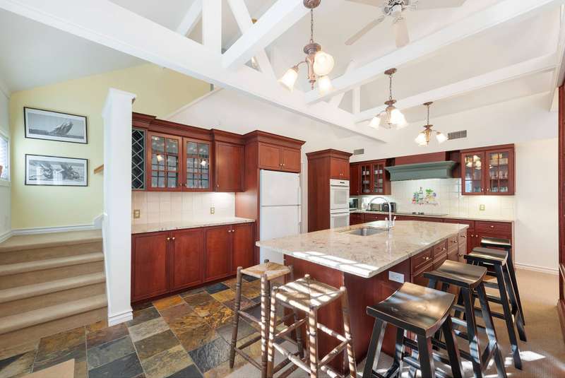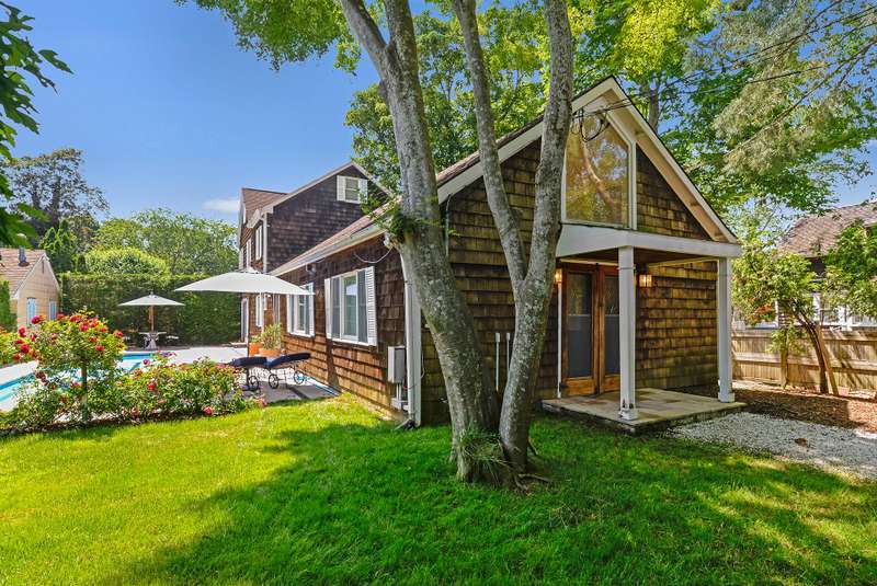 Beautiful barn-style residence, situated on a gated, landscaped property with beautiful trees, plantings, patio, and a heated Gunite pool. The spacious house features a living room with a 20 ft cathedral ceiling, dining, gourmet kitchen, four bedrooms, three baths, and central AC and a separate laundry room. Short distance to both Little Plains Beach and Main street. Listing ID: 738264