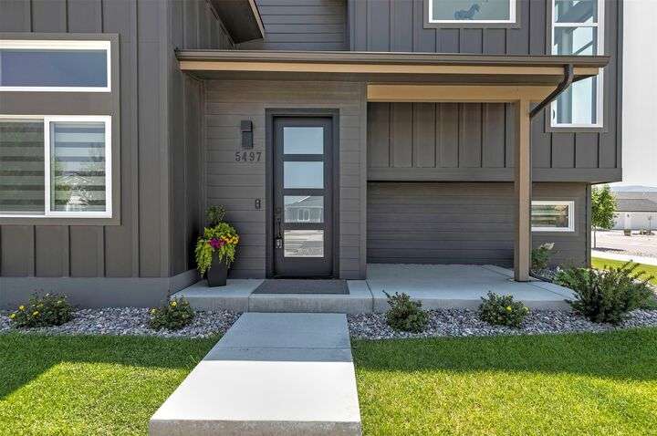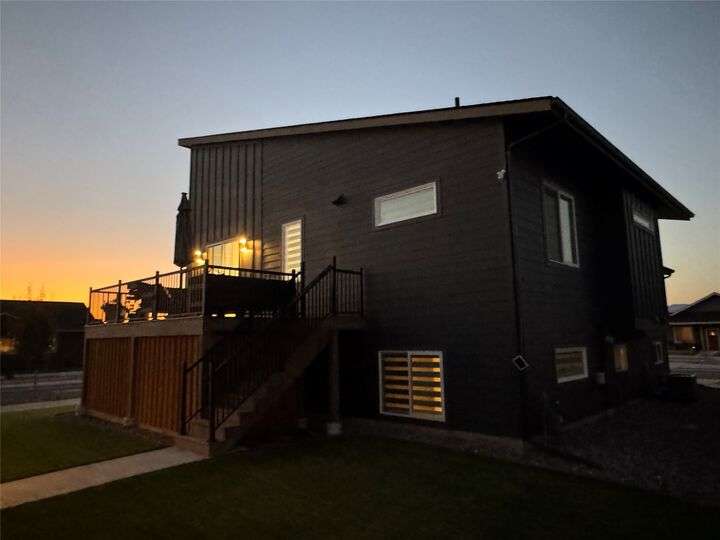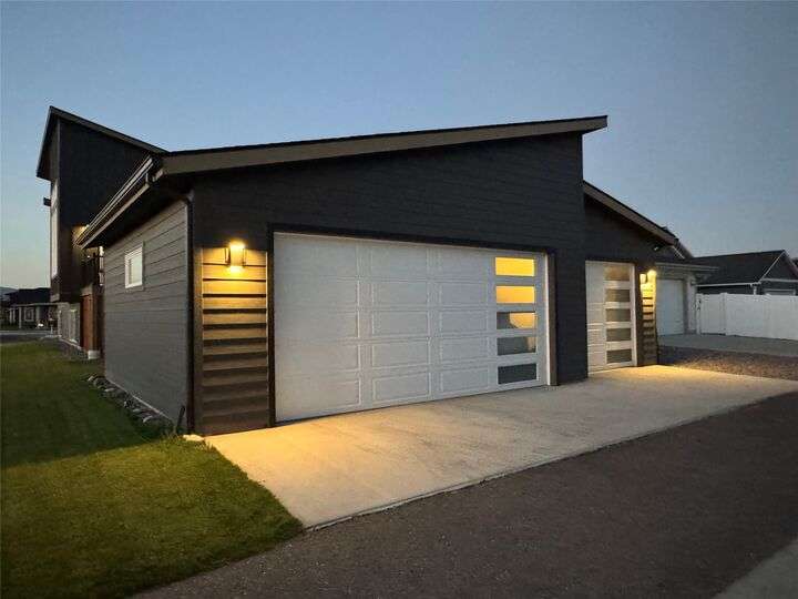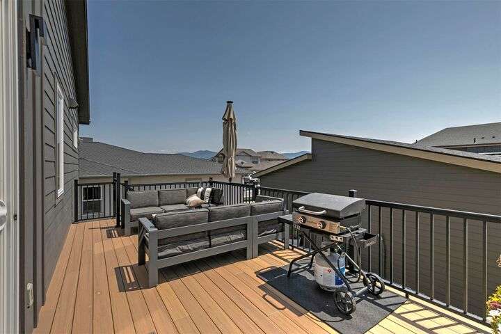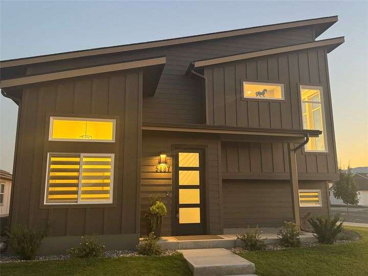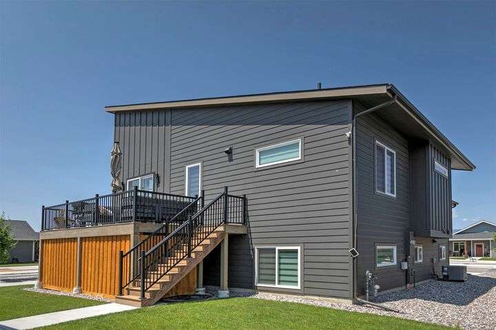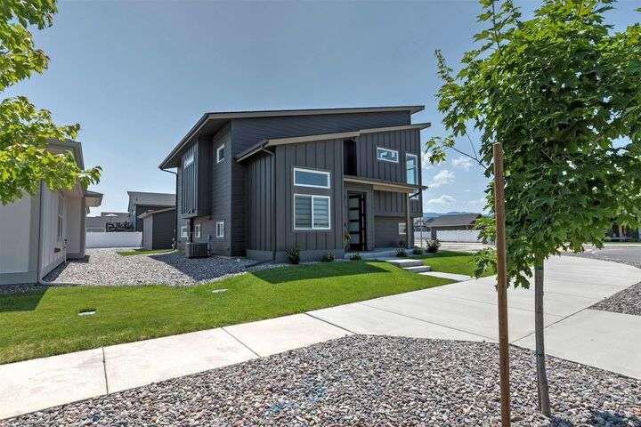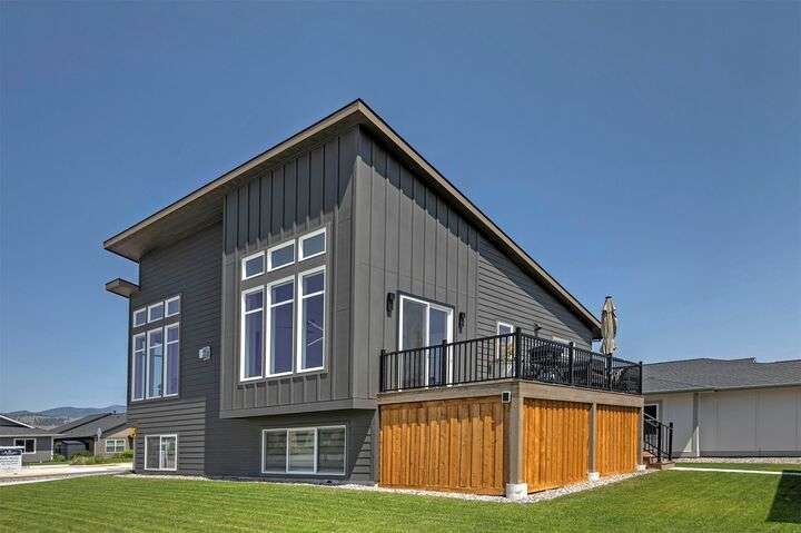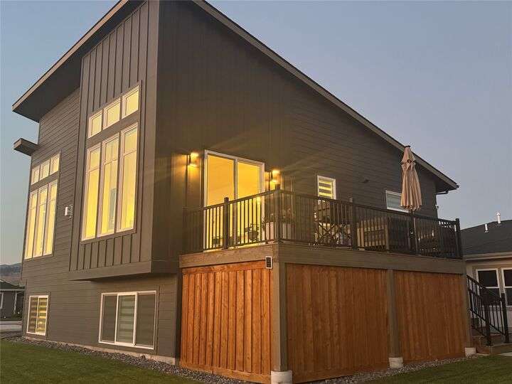 OPEN HOUSE 10/5/2025 1-3 PM. Sleek, Rustic Modern Living in 44 Ranch – Quality Built by McElmurry Homes Experience the perfect blend of form and function in this stylish modern home located in Missoula’s sought-after 44 Ranch neighborhood. Built by award-winning McElmurry Homes, this thoughtfully designed residence showcases clean lines, open spaces, and upscale finishes throughout. Smart home features include, dishwasher, washer, dryer, range, blinds, gas fireplace, door locks, garage door openers, and some lighting can be controlled by your smart phone. A bright, airy foyer welcomes you with a contemporary open baluster stairway and sleek metal railings. Just off the entry, a private home office with 11’ ceilings offers a quiet space for work or creativity. The main level impresses with 14’ sloped ceilings, floor-to-ceiling windows, and a striking tiled gas fireplace. The open-concept layout connects seamlessly to the kitchen and dining areas, where you’ll find painted shaker cabinetry, quartz countertops, modern appliances, a large butler's pantry with a beverage refrigerator, tiled backsplash, and a breakfast bar with modern lighting. The adjacent composite deck invites you to relax or entertain while enjoying scenic views. The main-level owner’s suite offers 9’ ceilings, a luxurious ensuite with quartz double vanity, a tiled walk-in shower, and a spacious walk-in closet. Downstairs, the daylight lower level features a large rec room, two generous bedrooms, a full bathroom with designer finishes, and a smartly designed laundry area. Additional highlights include landscaping with underground sprinklers, low-maintenance Hardie Plank siding, a welcoming front porch, elevated rear deck with storage underneath, and an insulated 3-stall finished garage with alley access. Situated on a corner lot just steps from 44 Ranch Park and within the desirable Hellgate Elementary and Middle School District, this home combines modern design with everyday comfort—just minutes from shopping, dining, and outdoor recreation in Missoula.