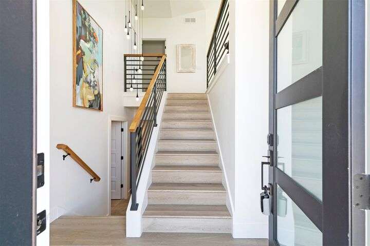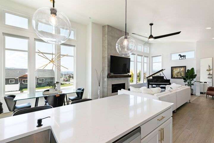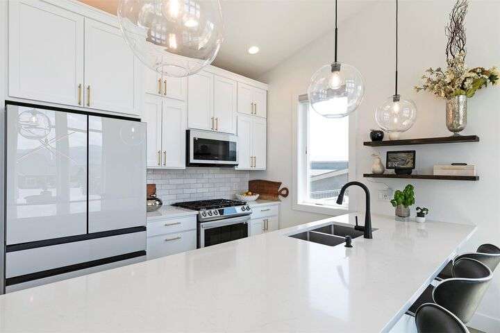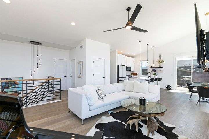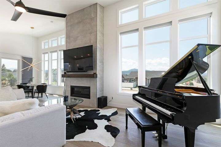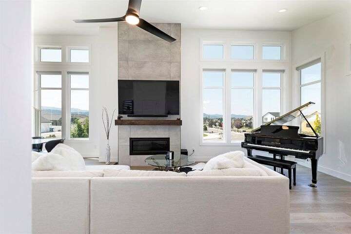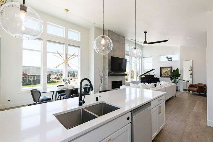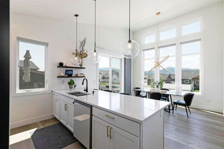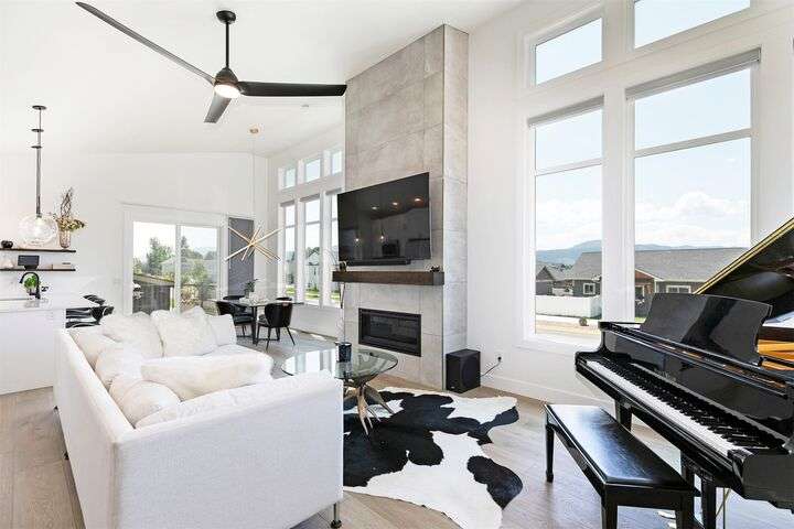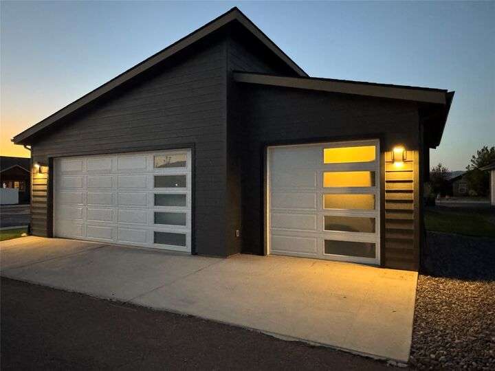 OPEN HOUSE 10/5/2025 1-3 PM. Sleek, Rustic Modern Living in 44 Ranch – Quality Built by McElmurry Homes Experience the perfect blend of form and function in this stylish modern home located in Missoula’s sought-after 44 Ranch neighborhood. Built by award-winning McElmurry Homes, this thoughtfully designed residence showcases clean lines, open spaces, and upscale finishes throughout. Smart home features include, dishwasher, washer, dryer, range, blinds, gas fireplace, door locks, garage door openers, and some lighting can be controlled by your smart phone. A bright, airy foyer welcomes you with a contemporary open baluster stairway and sleek metal railings. Just off the entry, a private home office with 11’ ceilings offers a quiet space for work or creativity. The main level impresses with 14’ sloped ceilings, floor-to-ceiling windows, and a striking tiled gas fireplace. The open-concept layout connects seamlessly to the kitchen and dining areas, where you’ll find painted shaker cabinetry, quartz countertops, modern appliances, a large butler's pantry with a beverage refrigerator, tiled backsplash, and a breakfast bar with modern lighting. The adjacent composite deck invites you to relax or entertain while enjoying scenic views. The main-level owner’s suite offers 9’ ceilings, a luxurious ensuite with quartz double vanity, a tiled walk-in shower, and a spacious walk-in closet. Downstairs, the daylight lower level features a large rec room, two generous bedrooms, a full bathroom with designer finishes, and a smartly designed laundry area. Additional highlights include landscaping with underground sprinklers, low-maintenance Hardie Plank siding, a welcoming front porch, elevated rear deck with storage underneath, and an insulated 3-stall finished garage with alley access. Situated on a corner lot just steps from 44 Ranch Park and within the desirable Hellgate Elementary and Middle School District, this home combines modern design with everyday comfort—just minutes from shopping, dining, and outdoor recreation in Missoula.