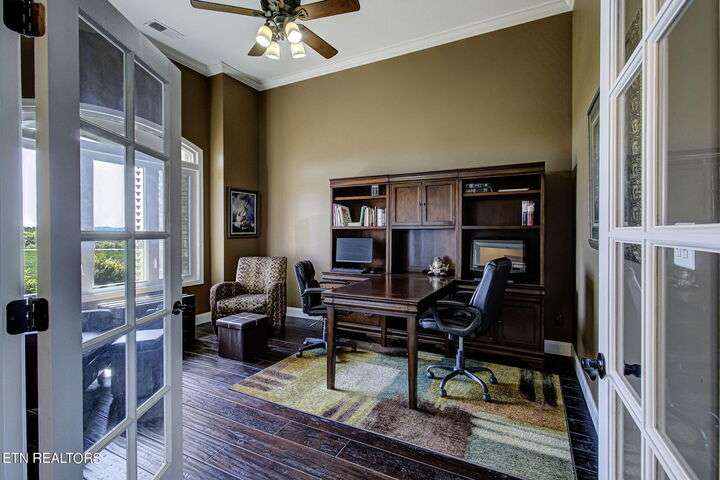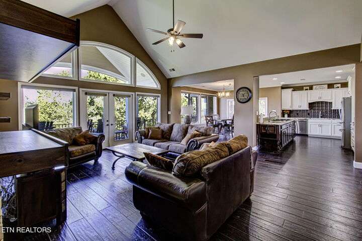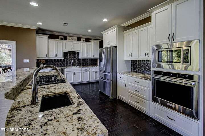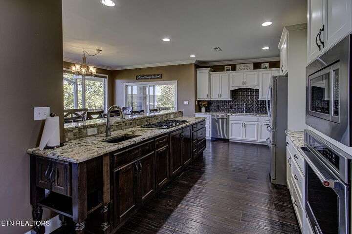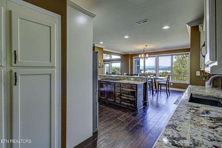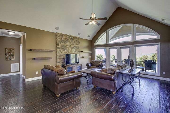 Bring a Buyer see the Breathtaking views of the Lake an Mountains from this custom luxury home in the prestigious gated community of Grande Vista Bay located on Watts Bar Lake. Sitting on 3 lots to give you that unobstructed view off your back deck making up the 1.68 acres and only one HOA fee. You have views of the lake and the mountain from most every window. The care in the detailed work will show you how much thought was put into this home by the sellers. The vaulted great room starts off your lake life living and open to the gourmet kitchen and dining area. Entertaining will be a breeze with all the areas to enjoy from the oversized breakfast bar with a gas cook top to the bright and beautiful eating area which flows right out from either area to your covered porch and patio with corner stone fireplace which can easily be screened. Kitchen features wall convection oven, oven and microwave. Pull out pot drawers and a nice spice cabinet and even a coffee station. Enjoy lake views from your primary bedroom with spa like ensuite with granite counters, custom cabinetry, plumbed for a garden tub, walk in tiled shower with multiple shower heads, two walk-in closets and linen closets. You will enjoy secondary access to the patio through your ensuite as well! Also, on the main level we have another bedroom or make it your office, hallway full bath. Spacious laundry with granite counters, cabinets with sink and hanging area and outside access makes life a little nicer. The 2-car garage completes this level. Lower-Level features floor to ceiling stone fireplace in the family room where you can enjoy game night, movie night and a wet bar to enjoy your favorite beverage. Two bedrooms, one with private bath the other bedroom has access to backyard and hall full bath. Multi-use room and your equipment room with lots of storage. Outside the covered patio area has rock flooring and plumbed for hot tub. Out in the landscaped yard is a stone path and a fire pit area all looking at your mountain and lake viewsThere is a $160 GVBPOA Account Set Up Fee to Buyer at closing.
