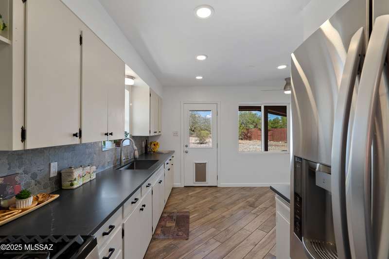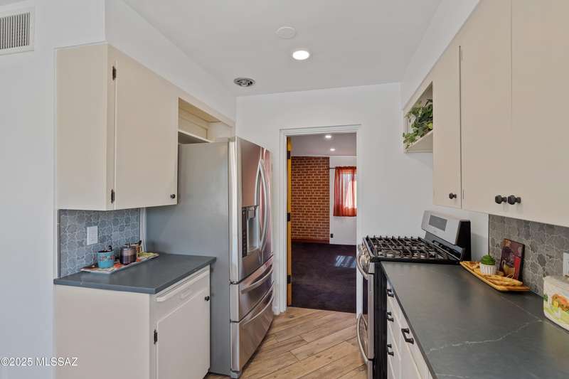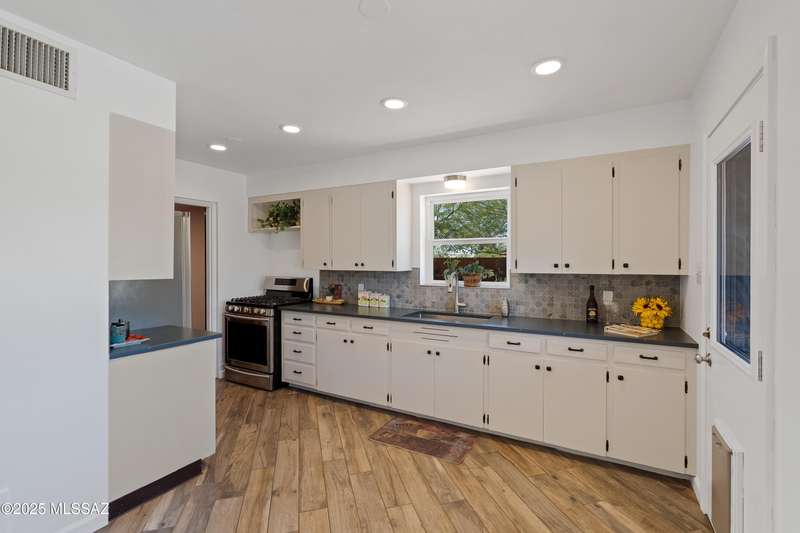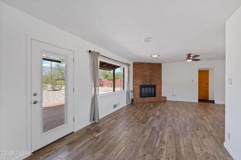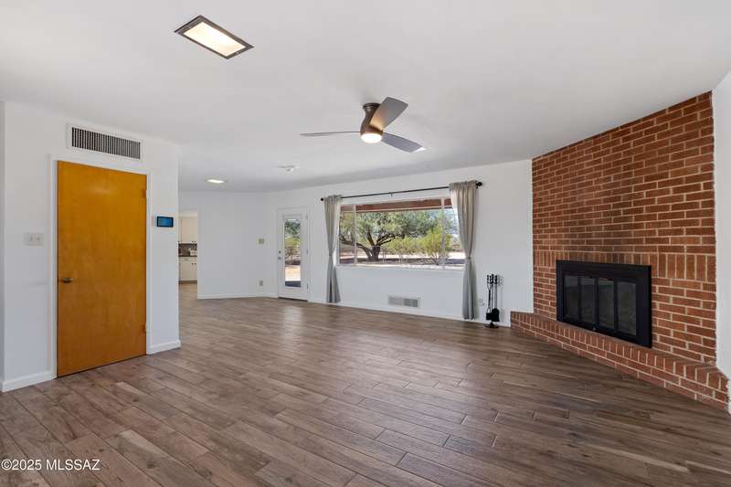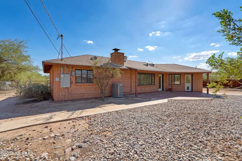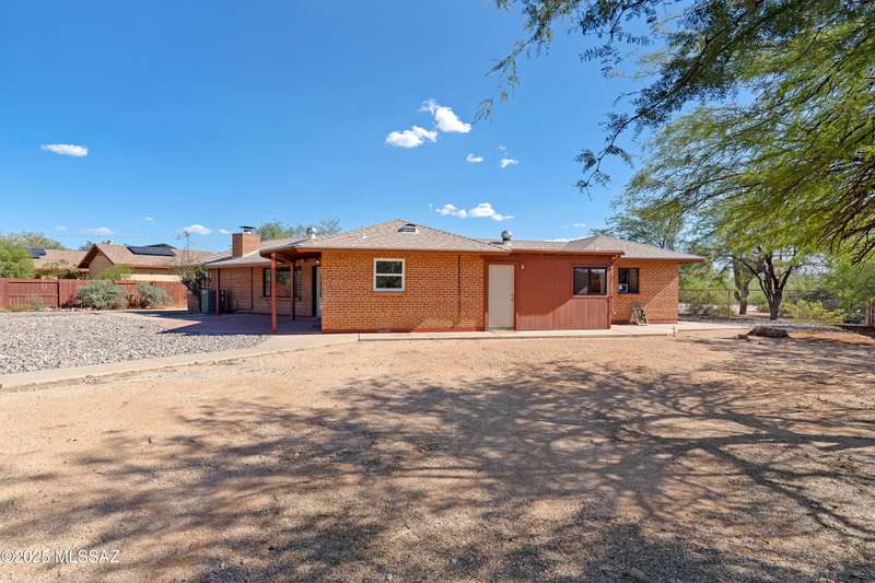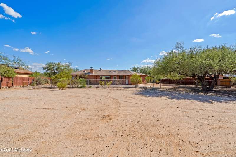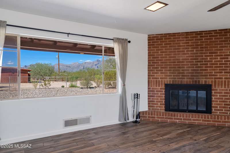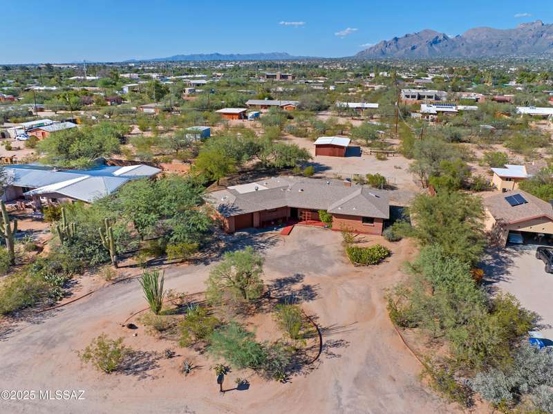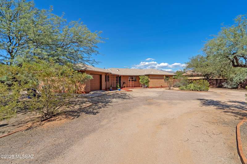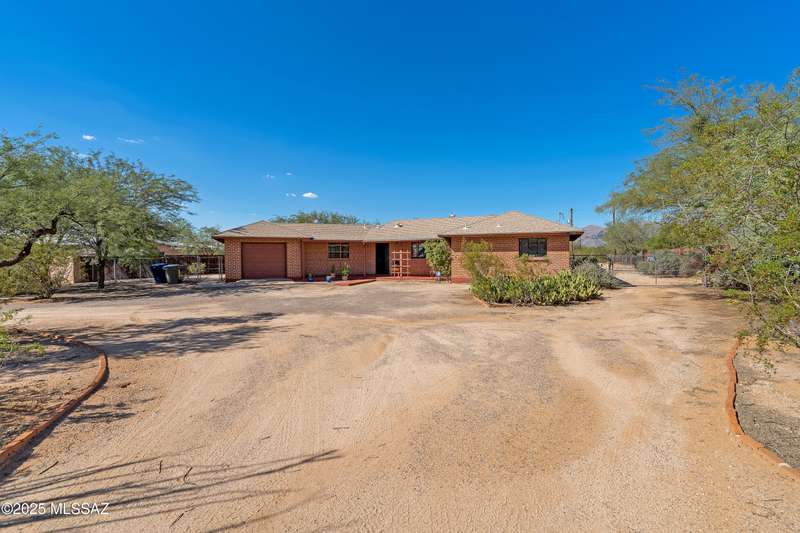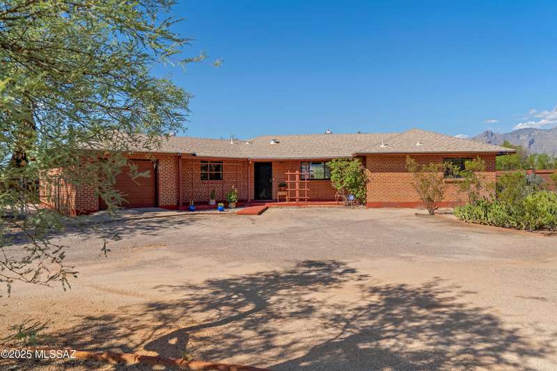 Experience the charm of rural living w/all the convenience of Central Tucson in this move-in-ready ranch-style home on a rare .83-acre fully fenced lot w/breathtaking Catalina Mountain views. Freshly painted interior features a split-bedroom layout & a versatile bonus room w/private entrance-ideal for office or studio. Spacious great room offers a cozy fireplace, picture window framing stunning views & a nice dining area. Updated kitchen includes quartz countertops, SS appliances & roomy eat-in nook. Enjoy the comfort of a 2-yr old HVAC system & upgraded 200 amp service. Exterior highlights include a massive 20x34 workshop w/30 Amp 240V subpanel, office space & extra storage rm. 1-car garage w/laundry & storage and a large circular driveway w/ample parking for guests, RVs, or toys.