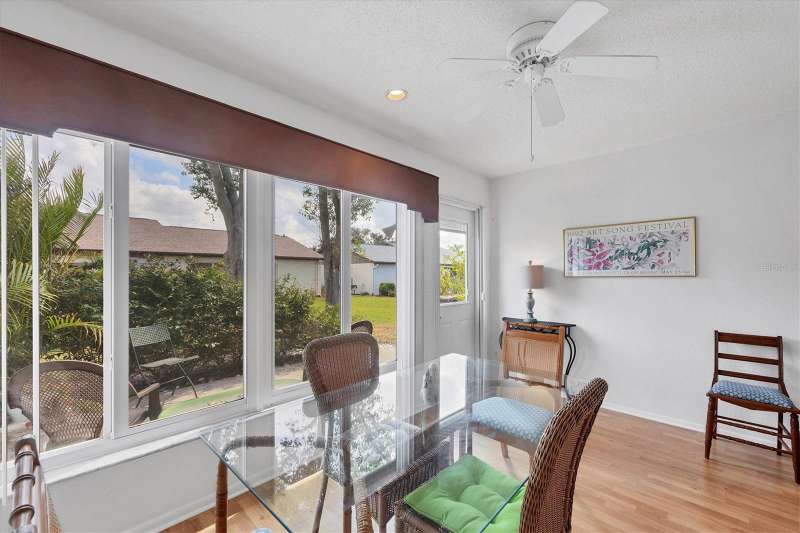 Welcome to your dream villa in the charming dog-friendly community of Foxwood! This beautifully furnished home is nestled at one of the highest elevations within the community and has not received any damage from storms. You are in a NON-FLOOD ZONE, ensuring PEACE OF MIND. The modern kitchen boasts elegant granite countertops and soft-close cabinets and drawers, making cooking a delight. Ample countertop space allows plenty of room for those Holiday pies, or breads. This exceptional Kitchen seamlessly opens to a light and bright dining room, perfect for entertaining, which leads out to a lovely outdoor patio—ideal for enjoying your morning coffee or evening gatherings. The primary suite is a true retreat, complete with a spacious walk-in closet that provides ample storage. The guest bathroom has been thoughtfully updated with a beautifully tiled shower, ensuring your guests feel right at home. Additional highlights include an inviting living space with a large nook area—ideal for a desk or card table and a new ceiling fan. Both bedrooms have new window treatments. The garage is complete with a screen, excellent for those lovely inland sea breezes, an epoxy-finished floor with built-in storage and a newer washer and dryer for your convenience. The roof and A/C system were replaced in 2023, in 2022 a backflow valve was replaced, and the hot water heater was replaced in 2019. Foxwood guests boast of the friendly clubhouse, warm pool and sidewalks as well as the convenience of a low maintenance 55 and over lifestyle. Don’t miss the opportunity to make this stunning villa your own in the welcoming Foxwood community!
