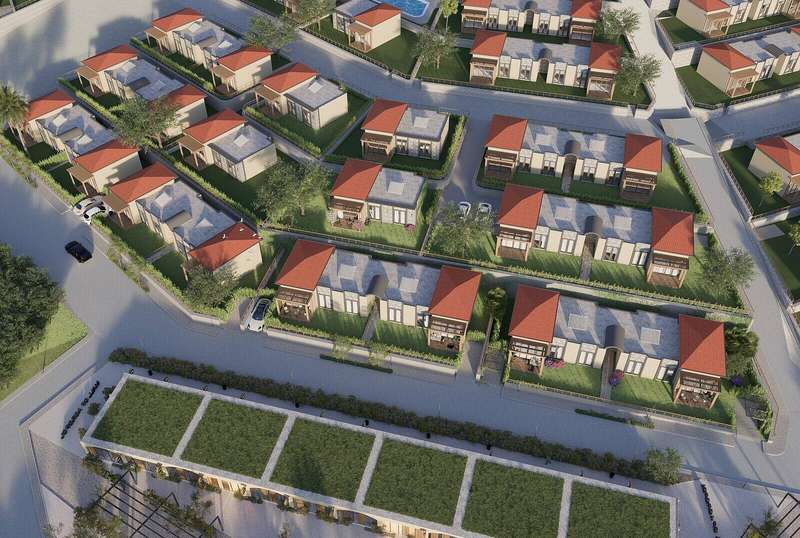 Built on a 93,000 m² plot, the project consists of 253 high ceilings, single-story semi-detached and detached villas. The project includes a communal swimming pool, basketball court, tennis court, outdoor sports area, Turkish bath, sauna, SPA, children's playground, parking lot, and 24/7 security services. The villas have a smart home system, a private swimming pool, and a private garden.