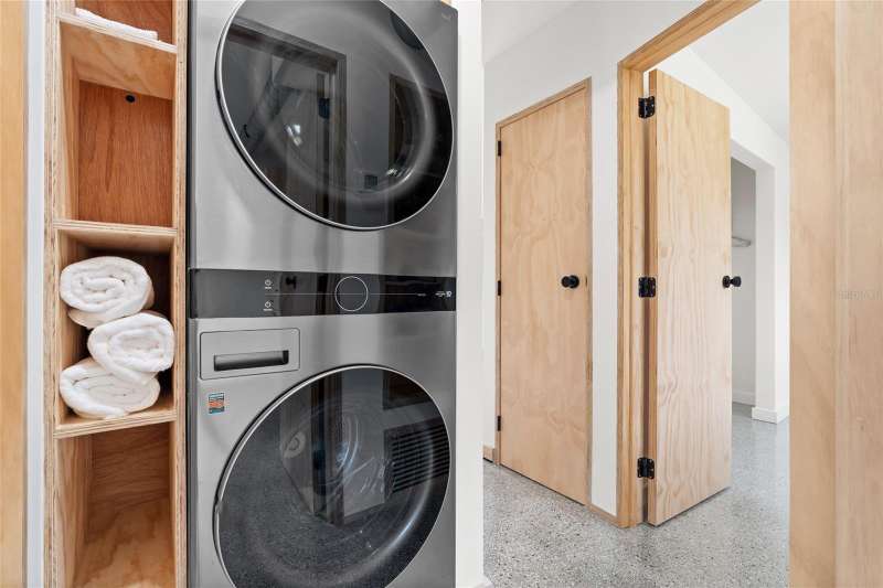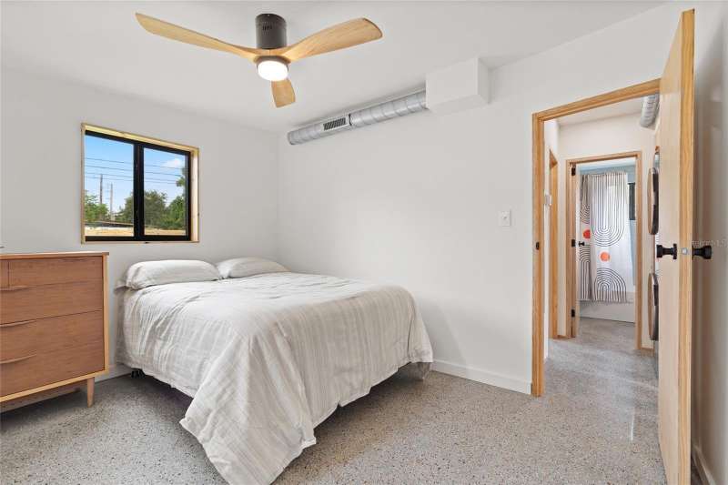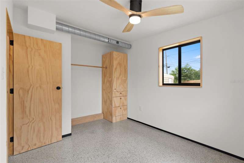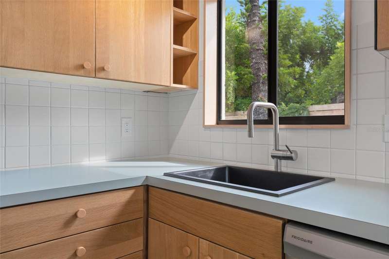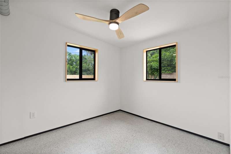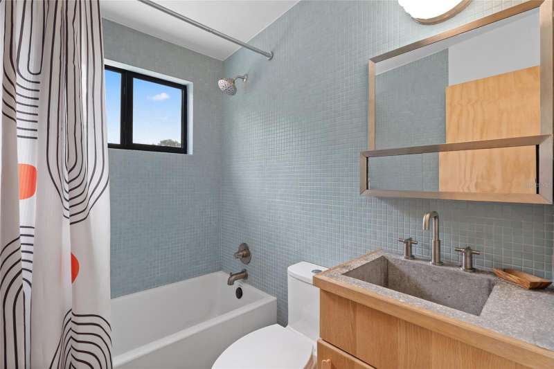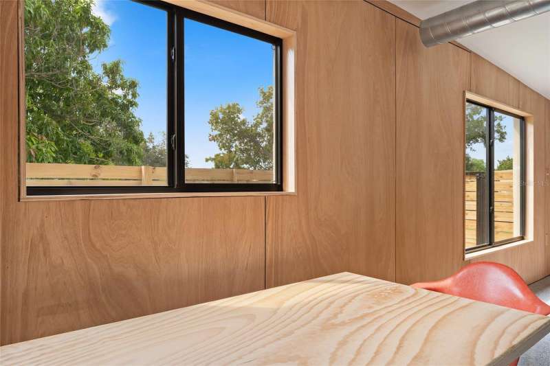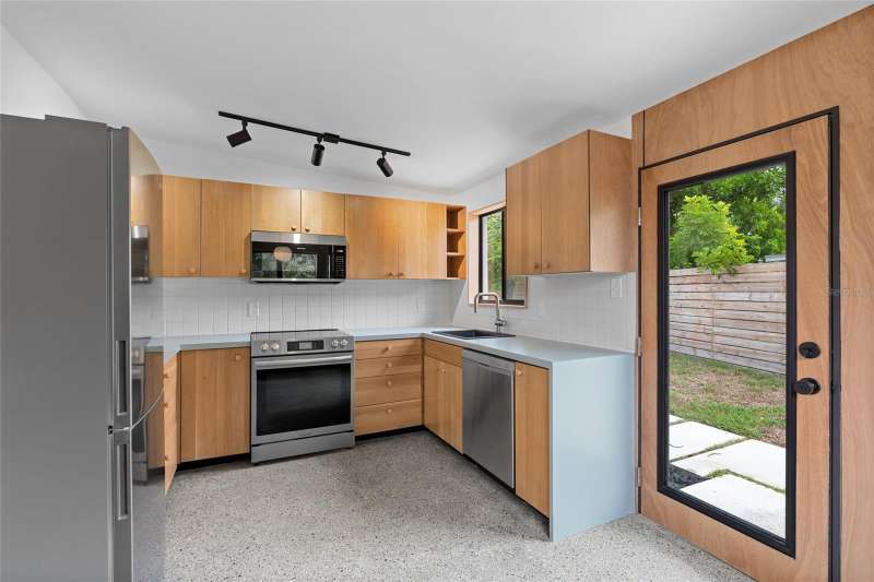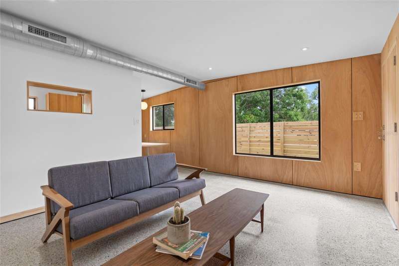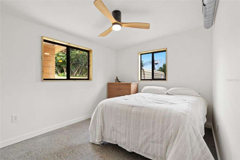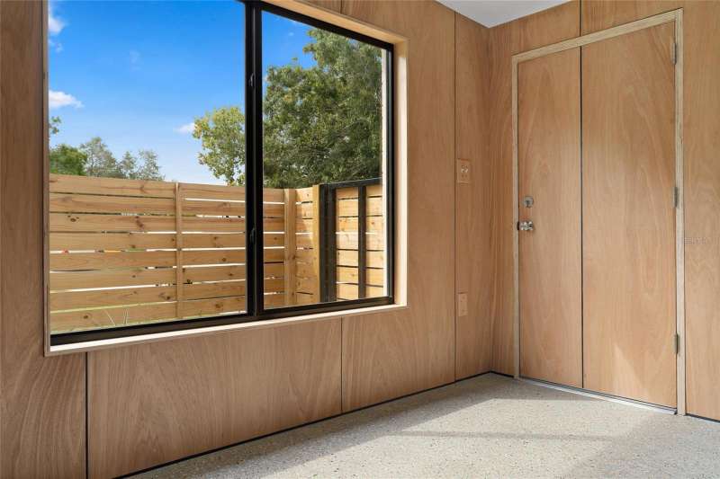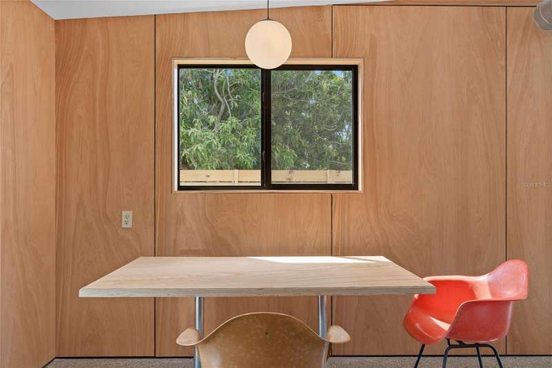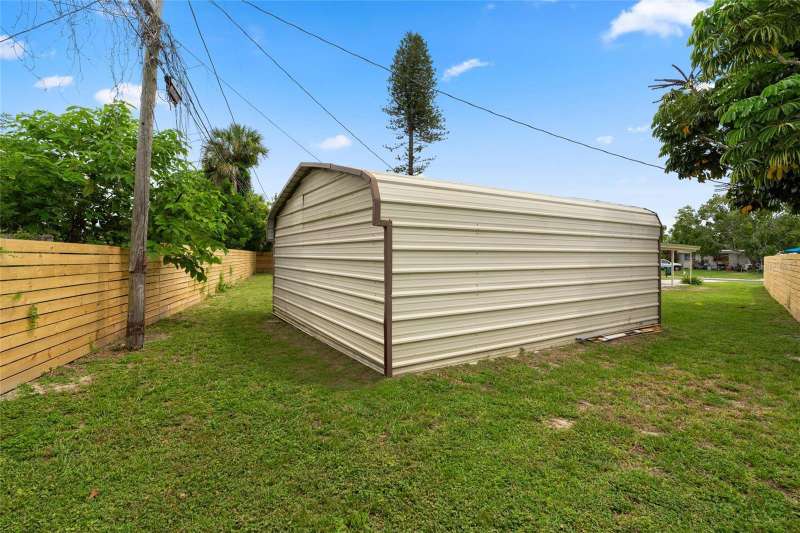 A mid-century ranch, reborn. This is The Turnaround House. For the admirer of minimalist, modernist design, this home has been thoughtfully renovated with inspiration from the greatest architects of our time. Clean lines, natural light and meticulous design defines each space. With the charm of an MCM home, it been masterfully renovated with new hurricane impact windows, new roof, new appliances, new HVAC with exposed industrial ductwork, new electrical, new plumbing, new indoor laundry and new fencing. Inside, discover custom built-ins, newly installed wood paneling with grain that flows seamlessly from ceiling to wall, immaculate trim work and polished terrazzo floors with the soft sheen of modern concrete. Set on an oversized lot along a quiet street, the property offers a carport, abundant attached storage, and an additional large shed ideal for a workshop. Outdoor spaces invite gatherings, with room in the backyard for a boat or RV. The front yard is graced with a mature mango tree and new concrete pavers, providing generous on-site parking. All of this, on a high-and-dry lot where flood insurance is not currently required. A rare find for this level of craftsmanship!