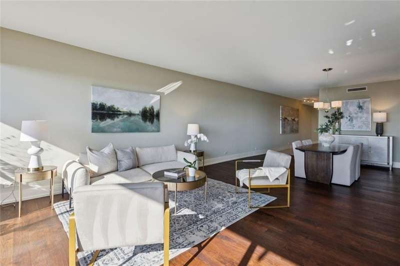 Nestled high above city on the 39th floor, this Park Place on Peachtree unit offers the best everything with unobstructed panoramic views both north and south...the iconic city view south to Atlanta like the Phoenix rising as well the view north of Buckhead's ever changing skyline. Sleek finishes include gorgeous marble entry opening to the light filled Living Room and Dining Room with hardwood floors. Relax in the inviting den with built-in bookcases and spectacular views from the balcony. Enjoy the Buckhead view from the breakfast room with built-in cabinetry and wet bar. Updated kitchen features soft close cabinetry and high end appliances including SubZero refrigerator, Bosch dishwasher, Gaggenau stainless vent hood, and Miele cook top. The primary suite is spacious with plenty of room for sitting area and of course, more dramatic views of the city from the balcony. Primary bath is updated with double vanity and walk in dual shower. With two spacious balconies, you'll enjoy the exposure to the outside from sunrises over Stone Mountain to the meandering view of Peachtree Street to downtown Atlanta. Known as the gold standard for high rise living in Atlanta, Park Place has recently completed a major first class interior and interior renovation. From the stunning new porte cochere and lush landscaping to the beautiful South Gardens and the resort style pool area, it truly is a lifestyle that is unmatched. All the common areas are new with handsome lobby where the 24/7 Concierge and staff greet you and your guests at the reception desk. Valet parking is 7 days a week for both homeowners and guests. Management is on site and their dedication to the homeowners is unsurpassed. Work out 24/7 in the fitness center with state-of-the-art equipment and an area for your personal trainer. The spacious Club Room overlooks the pool and is perfect for meetings, social gatherings, or private functions. Read any good books lately? The Library is at your disposal. Guest suites complete with kitchenette may be reserved for homeowners' overnight guests. Entertain friends in the PPOP Wine Cellar with secure wine storage for homeowners. One of the new favorite places to relax is the South Garden where serenity abounds with outdoor seating, fire pit, water feature and two grills. You and your dog will love Bark Place dog park with artificial turf and 24/7 access. Park Place on Peachtree offers a lifestyle that suits everyone, from the many group activities available to both privacy and security. Simply the Best.