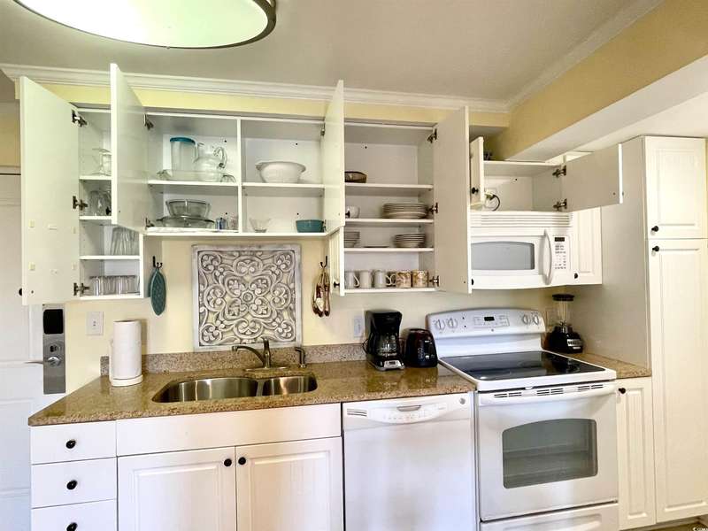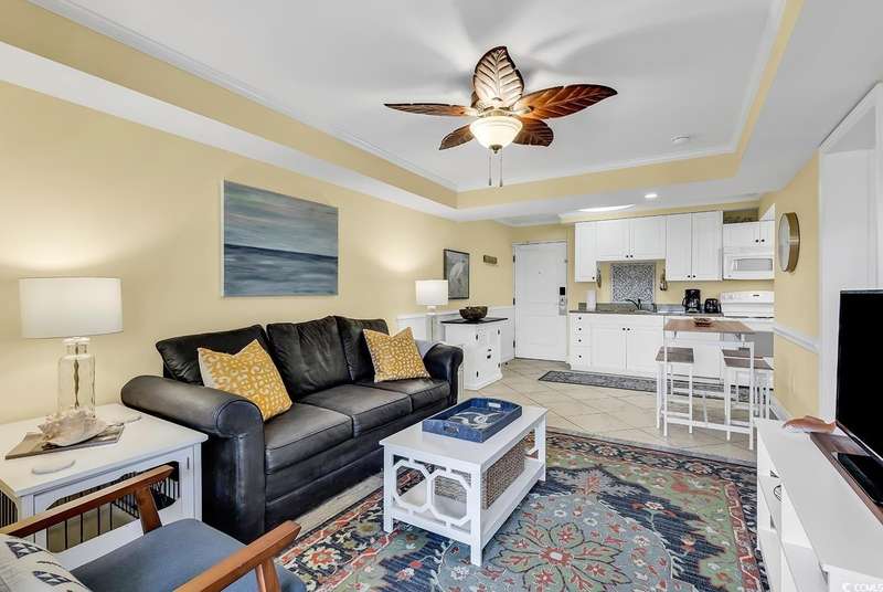 LAKEFRONT SUMMERHOUSE VILLA presents a Colorful, Casual, Comfortable Vibe. Enjoy restful mornings and quiet evenings on the Private Balcony Surrounded by Sunrise and Sunsets framed by Towering Palms. Well Maintained and Refurbished with Tile plus Luxury Plank Flooring. Boasting a Super Stocked Kitchen and Fun Art; with enough Seating to Entertain Friends and Family. This Premier Litchfield Beach Villa presents move-in ready Easy Living at the Beach!