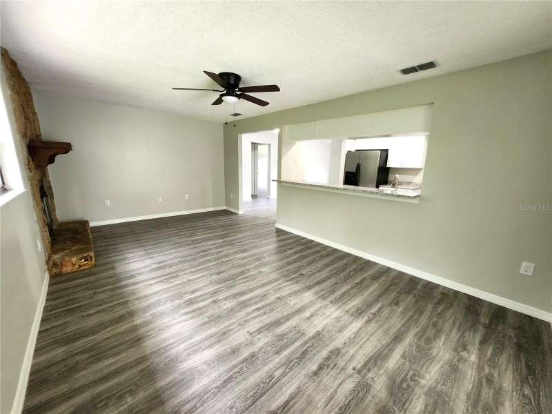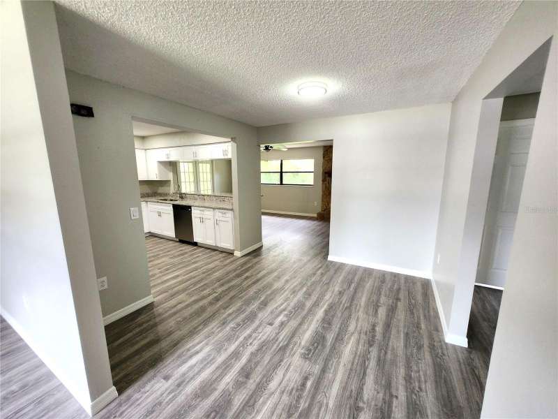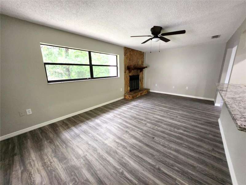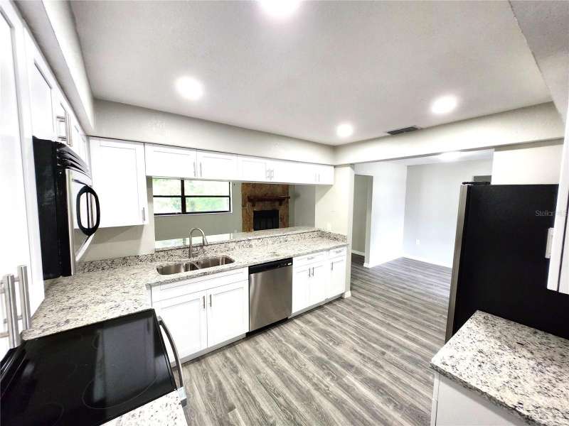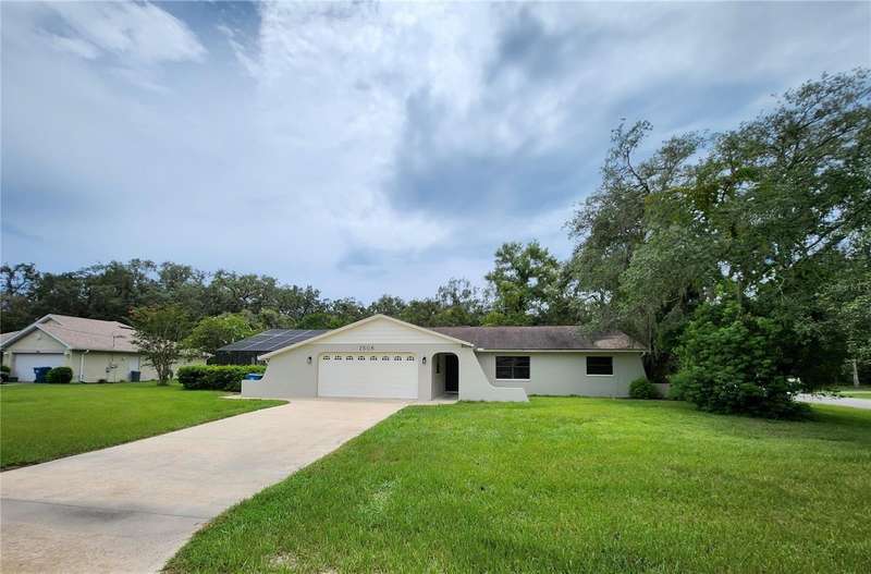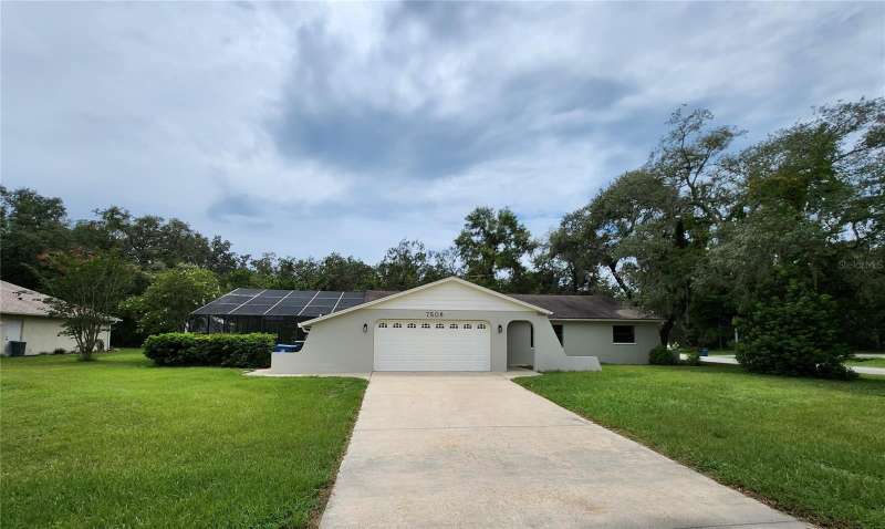 Newly Renovated Pool Home on Corner Lot in Spring Hill! Welcome to this beautifully updated 3 bedroom, 2 bath pool home situated on a spacious ¼-acre corner lot. Freshly painted inside and out, the home features brand-new flooring throughout for a modern, move-in ready feel. Step inside to the formal living room and continue into the all-new kitchen, complete with new cabinetry, granite countertops, stainless steel appliances, and a large breakfast bar that opens to the family room. The adjoining dining area is perfect for gatherings, while the cozy family room offers a fireplace and French doors leading to the lanai and pool area. The split floor plan provides privacy, with a master suite featuring a walk-in closet and a fully remodeled bath with a granite-topped vanity, makeup area, new tile flooring, and walk-in shower. Two oversized secondary bedrooms share a renovated hall bath with a granite vanity and a tub/shower combo. Enjoy outdoor living in the expansive covered lanai overlooking the deep, screened-in pool, ideal for relaxing or entertaining. The 2-car garage includes an extended area with a large workbench, perfect for storage or a workshop. Best of all—NO HOA, NO CDD, and lower utility costs thanks to the septic system. This home checks all the boxes—schedule your private tour today!