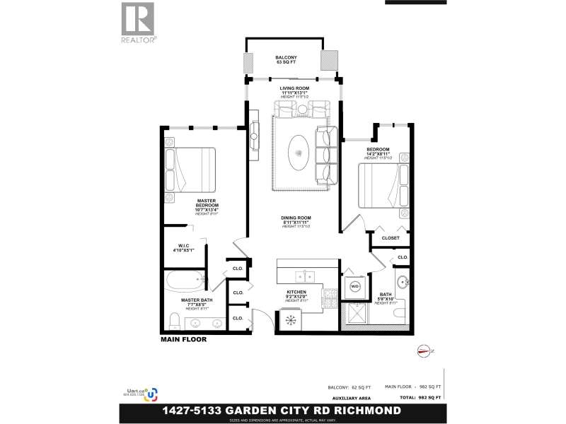 Lions Park by Polygon - a highly sought-after community in central Richmond! This quiet top-floor 2 bed, 2 bath home offers 982sqft of functional living with extra-high ceilings (over 11ft!) and a bright, efficient layout featuring separate living and dining areas, a rare find these days! The primary bedroom includes a walk-in-closet and a double vanity ensuite too. Enjoy peace with no upstairs neighbours and 2 side-by-side parking stalls. Move-in ready or update to your taste. Amenities include a clubhouse, fitness centre, outdoor pool and hot tub, guest suite, multipurpose room, playground, and green spaces. Steps to Lansdowne Mall, T&T, Kwantlen University, Walmart, SkyTrain, and many restaurants! A must see! (id:58403)
