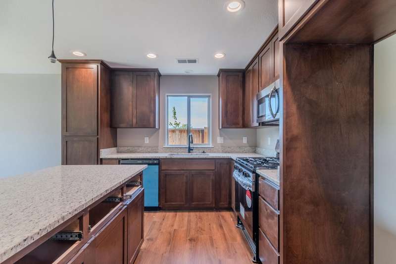 Discover this awesome new construction 3-bedroom, 2-bath home featuring a large vaulted family room perfect for entertaining. The completely landscaped lot offers extra parking and is fully fenced with sprinkler and drip line systems for effortless maintenance. Inside, you'll find modern stainless steel appliances and thoughtful design throughout. Relax on the covered back patio while enjoying the tranquil setting in a quiet part of town. Located in the desirable North Medford School District, this move-in ready home combines comfort, convenience, and quality construction in an ideal location.