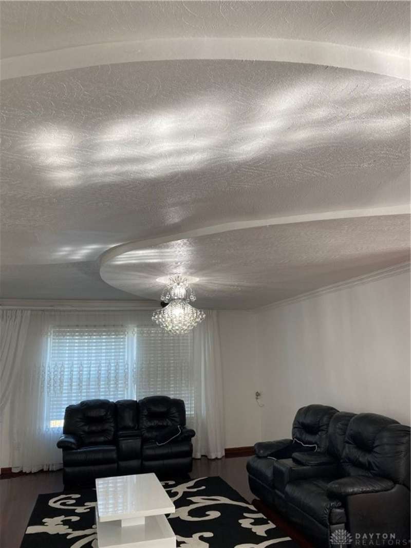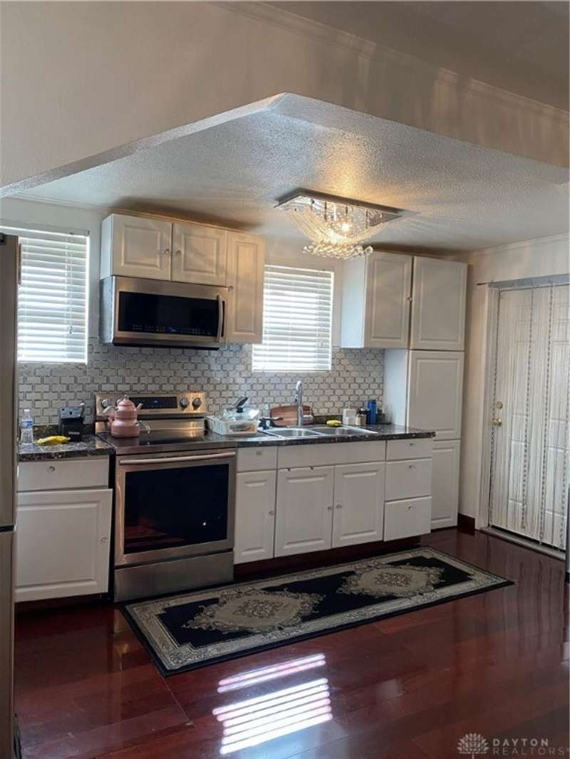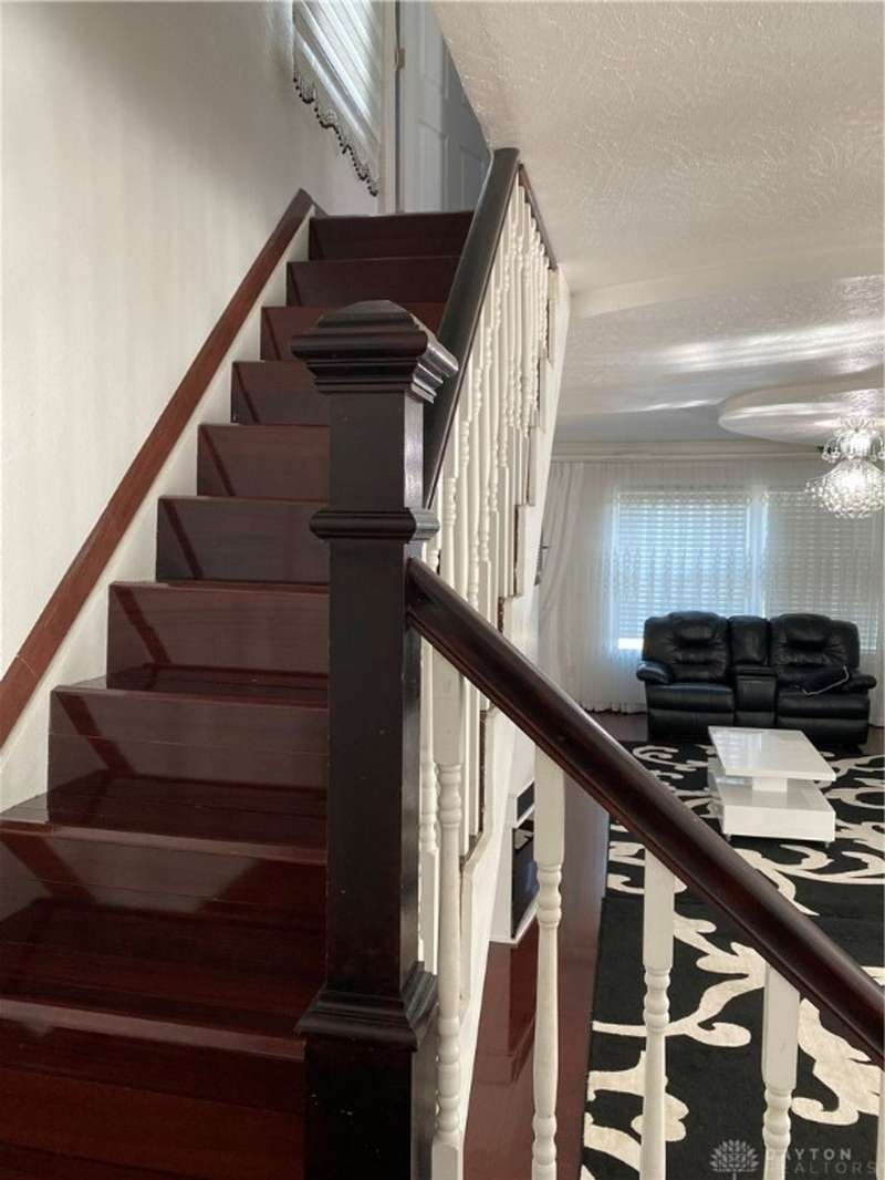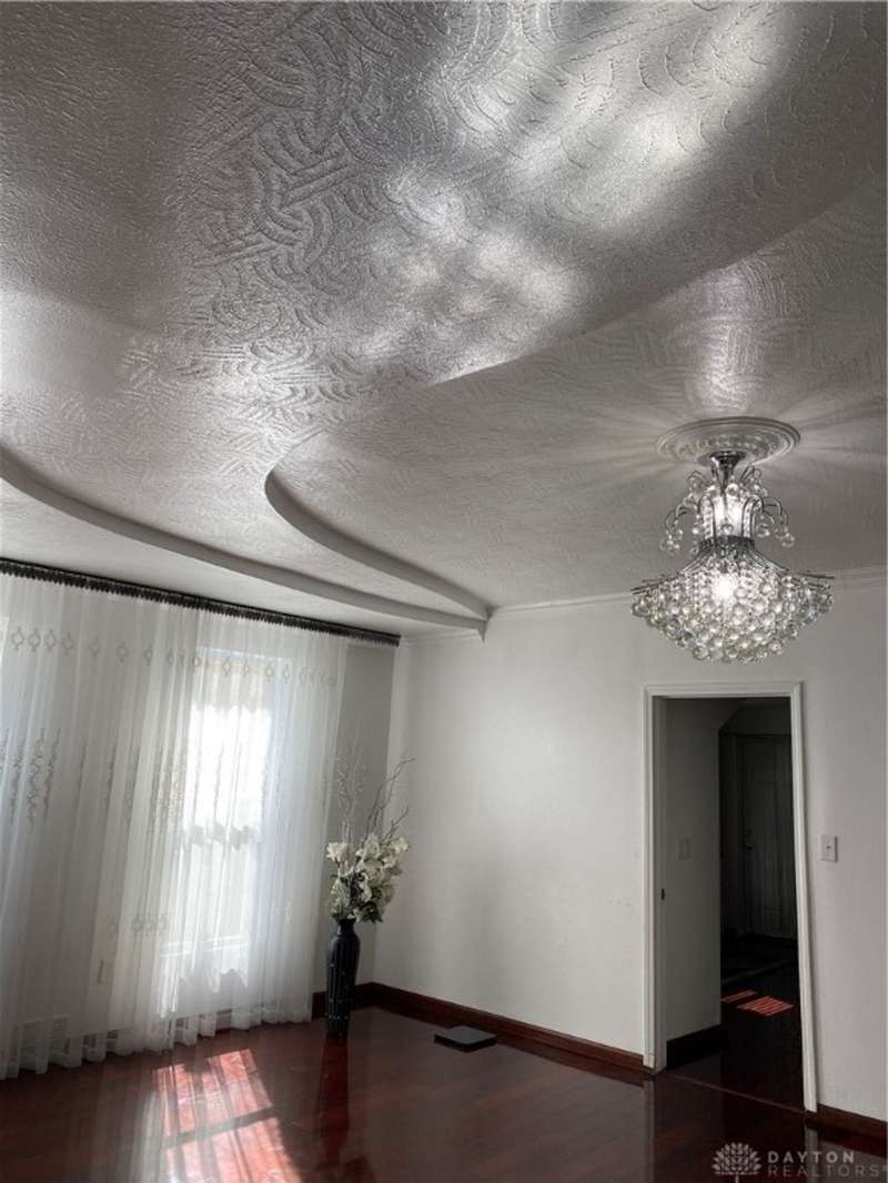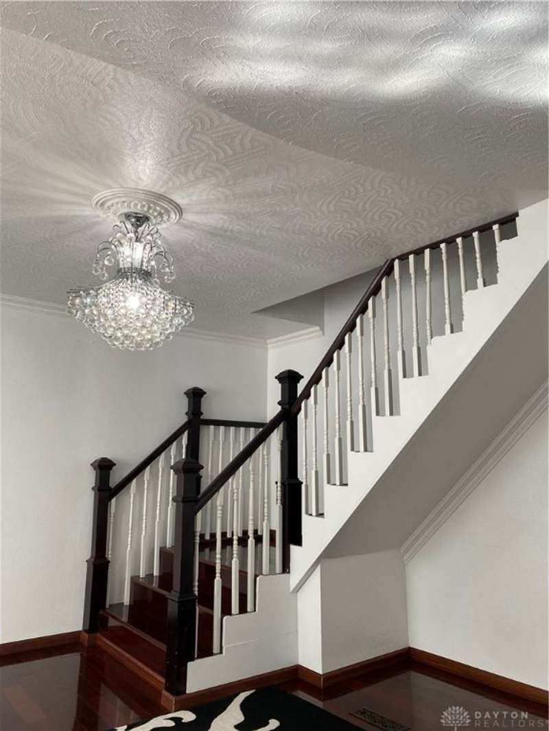 One of a kind, Old Noth Dayton Home 2241 sq ft offers 3+ bedrooms, 2 full baths, first floor full bath with laundry. It's stately Curb appeal shines with a butter-yellow and white stucco. The home welcomes you inside to a spacious main level featuring a huge living room with sculpted tray ceilings, chandeliers, and cherry wood floors. Solid cherry wood floors throughout main level, stairwell and hallway upstairs are beautifully polished with charm and character! Bright eat in kitchen & breakfast room with laundry off kitchen and enclosed back porch. Main level bath off kitchen is stunning with jacuzzi, mirror ceiling and laundry closet sliding doors, shelving and storage galore. All appliances stay in the home including front load washer/dryer. Outside enjoy paver patio side yard area 44X15. Elegant custom iron fence around front yard. Full rehab 2018 includes drywall, electrical wiring, plumbing, floors, doors, hardware, tray ceilings and chandeliers. Original Ornate Stairwell banister leads you upstairs where you will find 3 spacious bedrooms, walk-in closets plus a bonus room and fabulous (designer like) black and white full bath with shower and recessed shelves. That's not all, the yard is its own oasis with a covered porch and paved side yard for outside entertaining. Privacy fence, shed, concrete patio. Perfectly located just minutes from Downtown Dayton, parks, bike trails, festivals, shopping/markets, and Children's Hospital (2 blocks), this home blends historic charm with everyday convenience in an unbeatable location!!