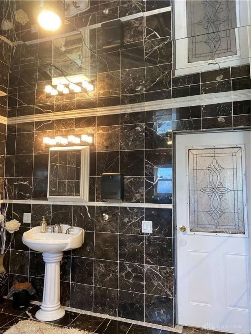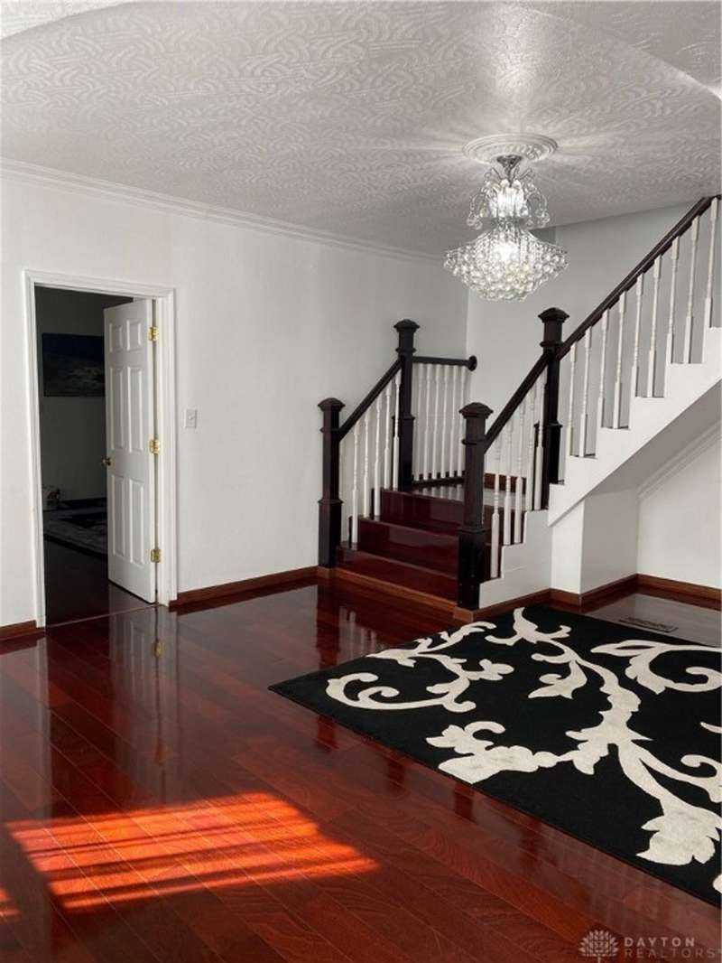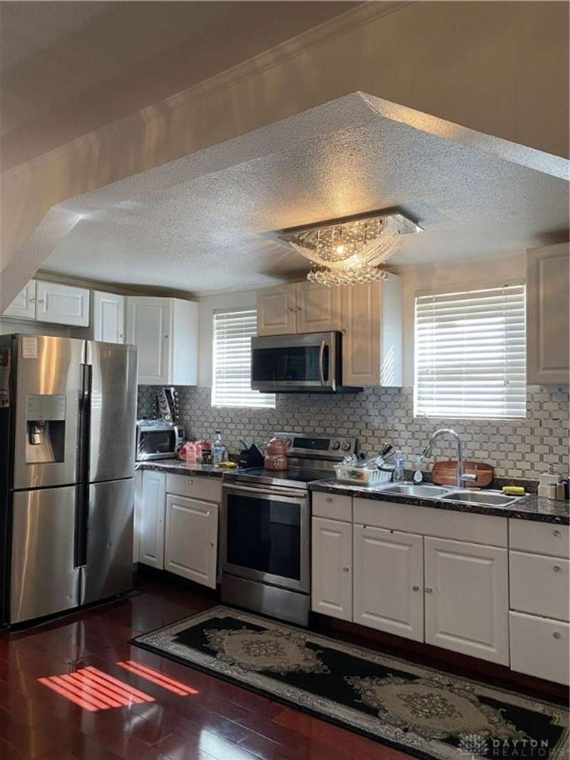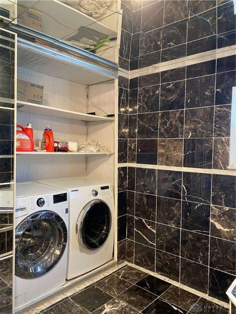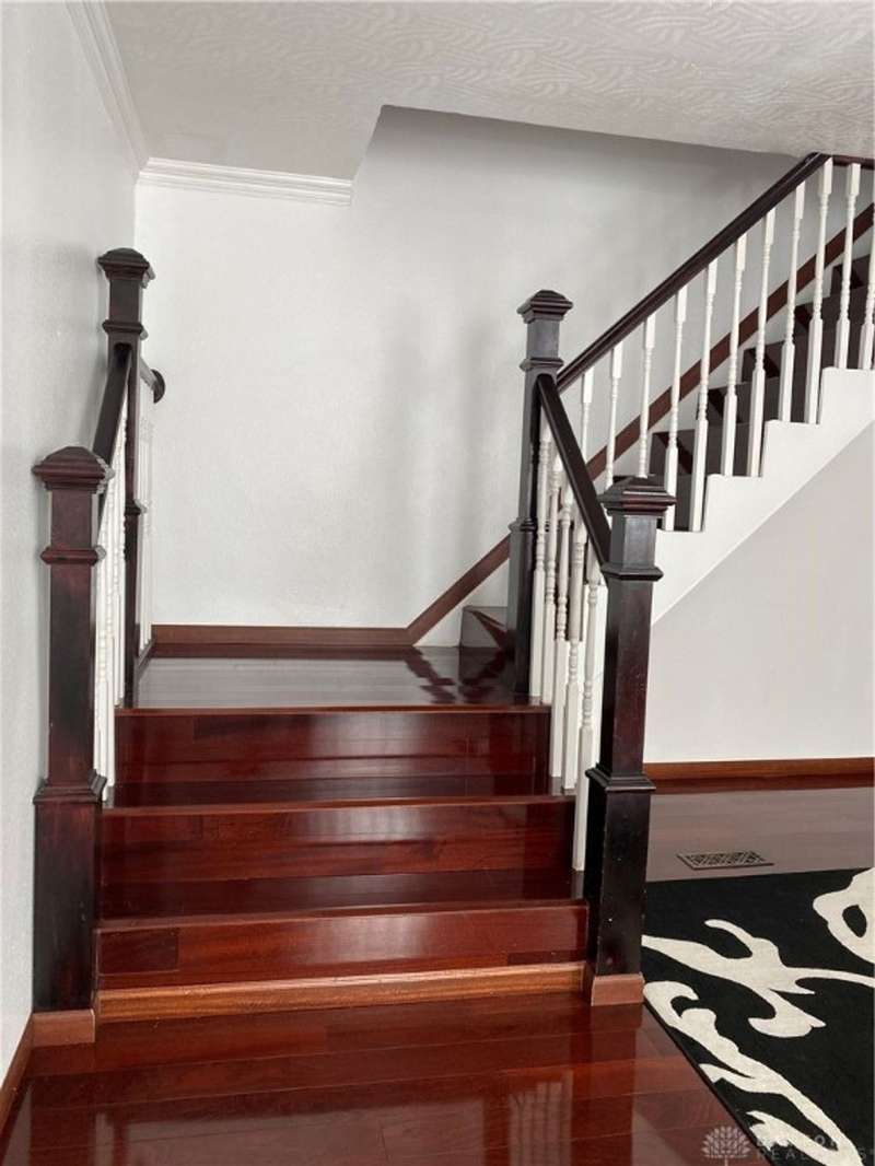 One of a kind, Old Noth Dayton Home 2241 sq ft offers 3+ bedrooms, 2 full baths, first floor full bath with laundry. It's stately Curb appeal shines with a butter-yellow and white stucco. The home welcomes you inside to a spacious main level featuring a huge living room with sculpted tray ceilings, chandeliers, and cherry wood floors. Solid cherry wood floors throughout main level, stairwell and hallway upstairs are beautifully polished with charm and character! Bright eat in kitchen & breakfast room with laundry off kitchen and enclosed back porch. Main level bath off kitchen is stunning with jacuzzi, mirror ceiling and laundry closet sliding doors, shelving and storage galore. All appliances stay in the home including front load washer/dryer. Outside enjoy paver patio side yard area 44X15. Elegant custom iron fence around front yard. Full rehab 2018 includes drywall, electrical wiring, plumbing, floors, doors, hardware, tray ceilings and chandeliers. Original Ornate Stairwell banister leads you upstairs where you will find 3 spacious bedrooms, walk-in closets plus a bonus room and fabulous (designer like) black and white full bath with shower and recessed shelves. That's not all, the yard is its own oasis with a covered porch and paved side yard for outside entertaining. Privacy fence, shed, concrete patio. Perfectly located just minutes from Downtown Dayton, parks, bike trails, festivals, shopping/markets, and Children's Hospital (2 blocks), this home blends historic charm with everyday convenience in an unbeatable location!!