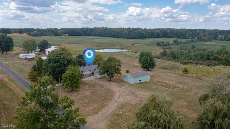 This is a bargain in Rootstown. Just reduced for a quick sale. Land is valued at $174,625.00 alone for the 11.3 acres. Where else could you buy a house and pole barn for $194,375.00????? Hurry and snatch this beauty up before it's gone. Welcome to 6747 Giddings Road in Rootstown! Nestled on 11.3 acres, this property offers the perfect balance of comfort, functionality, and endless possibilities. The well constructed home features 3 spacious bedrooms and 2 full bathrooms, providing a warm and inviting space for everyday living. The bright and open kitchen flows easily into the dining and living areas, ideal for both entertaining and quiet nights at home. There are plenty of windows allowing full light and views of the expansive property. The living room and recreation room have wood burning fireplaces. A two-car attached garage adds convenience, while the impressive 30 x 50 pole barn expands the property's potential. Whether you envision a workshop, storage for equipment and vehicles, or space for hobbies and projects, the pole barn is ready to accommodate your needs. Outdoors, the 11.3 acres offer incredible opportunities-whether it's creating trails, gardening, farming, keeping animals, or simply enjoying the privacy and natural surroundings. With ample space and flexibility, this property is perfect for anyone seeking country living with room to grow. Recent updates include NEW ROOFS on home and pole barn in 2024, new gutters, new soffits, all new doors in entire home and new wrought iron railings on inside steps. Older updates include hall bathroom, LVT flooring on upper level, boiler recently serviced, new chimney completely rebuilt, newer electrical, newer water heater and updated sump pumps. Also added were "Leaf Guard protectors" on gutters with lifetime warranty. Don't miss your chance to make this unique property your own-schedule a private tour today!