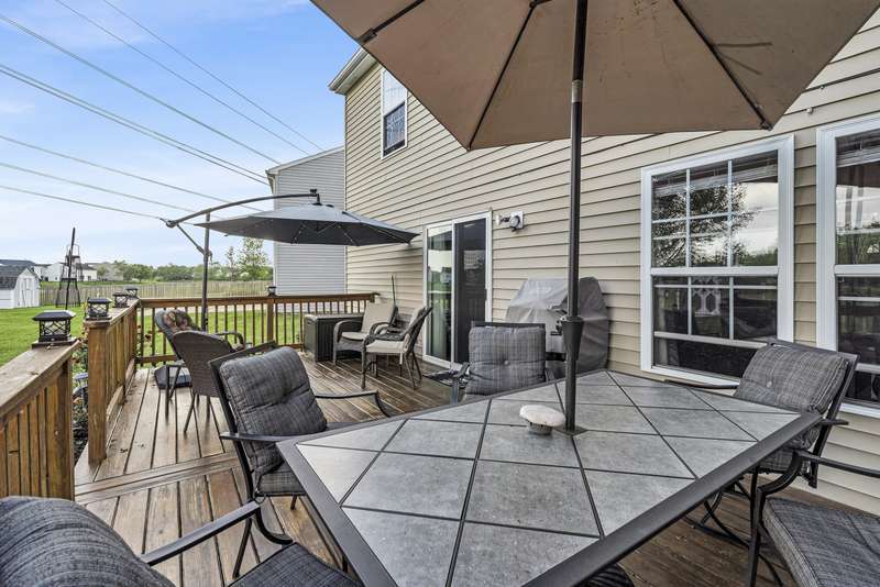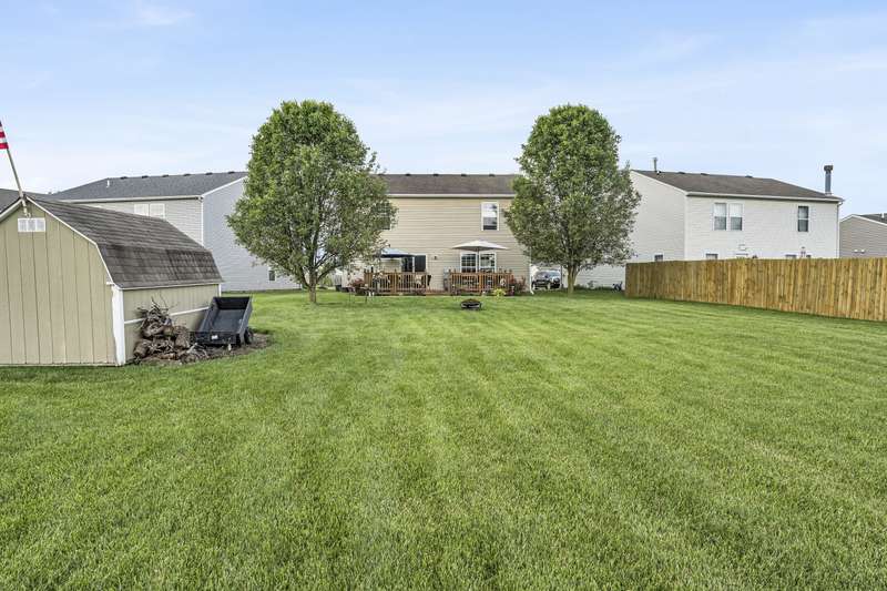 Welcome to your move-in ready home in Franklin Township! Well maintained one owner home featuring 4 BR 2 1/2 baths. Fabulous kitchen w/stainless steel appliance, Center Island with bar & Butcher Block countertops. Open floor plan on the main floor. Upstairs features 4 bedrooms, with 3 having walk-in closets and 4th office/or guest room. Enjoy time on the back deck with beautiful large yard and pond! Shed for extra storage. Several of the appliances have extended warranties that will pass on to the New Owners.