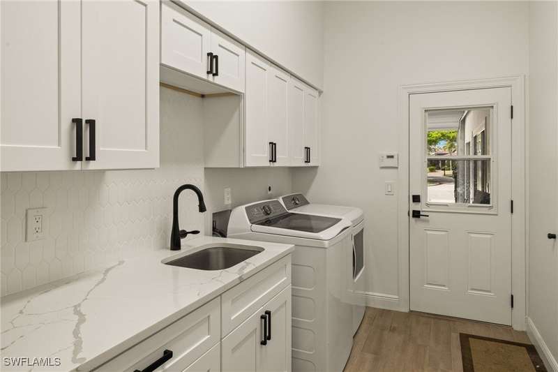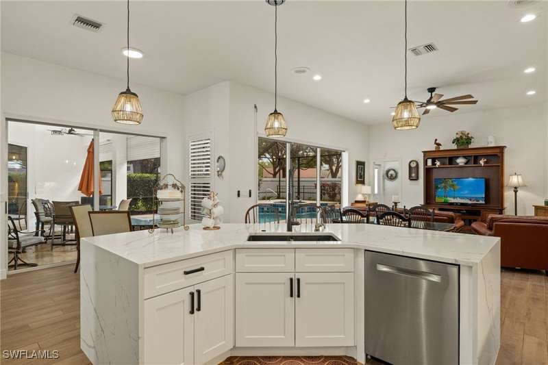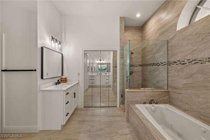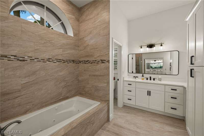 BACK ON MARKET AT NO FAULT TO THE SELLERS!! MOTIVATED, One-of-a-Kind Home in the Gated Golf Course Community of Gateway Greens! This stunning, modern, 3 car garage, pool and spa home sits on an expansive 0.6+ acre lot in a highly sought after gated golf community. With 4 bedrooms, 3 full bathrooms, and 2,457 sq. ft. of living space, this home offers luxury, comfort, and an unbeatable location. Key Features: NEW 2022 Roof & Two Trane A/C Units (2022), Whole-Home Culligan Water Softener System, Hurricane Impact & Manual Shutters, New Plantation Shutters & Remote Blinds, Travertine Pool Deck & New Pool Heater/Equipment, & Whirlpool Stainless Steel Appliances. Step inside through the grand solid wood double doors and be captivated by the open-concept layout. The fully renovated chef's kitchen is the heart of the home, featuring: Large Island with Bar Seating, White Cabinetry & Soft-Close Drawers, Tile Backsplash & Stainless Steel Range Hood, & Reverse Osmosis Water Filtration System. The split-bedroom floor plan provides privacy and functionality. The spacious master suite boasts: His & Hers Walk-In Closets, Luxury Bath with Dual Sinks, Walk-In Shower, & Soaking Tub & a Unique Arch Window for Natural Light. On the opposite side of the home, the 2nd bedroom is a private suite-ideal for guests or in-laws-with a full bathroom and pocket door for privacy. Two additional bedrooms make perfect guest or kids' rooms. Enjoy the heated pool & spa overlooking the private fenced-in yard-perfect for entertaining! Lastly, You have a Prime Location & Community Perks: Flood Zone X - No Storm Damage, Low HOA Fees including cable & internet, & Optional Private Golf Memberships Available. Experience the ultimate Florida lifestyle in the highly sought-after Gateway Greens community. This is more than a home.