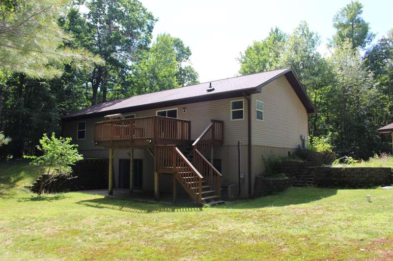 Expansive Raised Ranch Home Near Minocqua - Nestled in a tranquil area and positioned away from the street for enhanced privacy, this 3-bedroom, 3-bath raised ranch provides comfort and convenience on nearly 2 acres. The main floor showcases a sizable primary suite featuring a walk-in shower and jetted tub, along with two more bedrooms, each with walk-in closets, and an additional full bath. The large kitchen is complemented by an open dining space and a spacious living room, ideal for hosting. Convenient main floor laundry makes daily tasks simpler, and the large deck overlooks a serene backyard. The walk-out lower level is perfect for guests or extended family, featuring a second kitchen, a roomy family area, a large bunk room, and plenty of storage. Sliding doors provide access to a private patio and backyard sanctuary. A detached two-car garage rounds out this offering. Just minutes from town and in proximity to the Minocqua Chain, state lands, and snowmobile/ATV trails, this residence is a perfect blend of privacy and outdoor enjoyment.