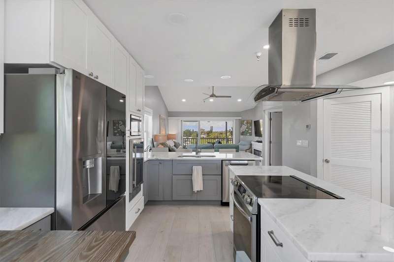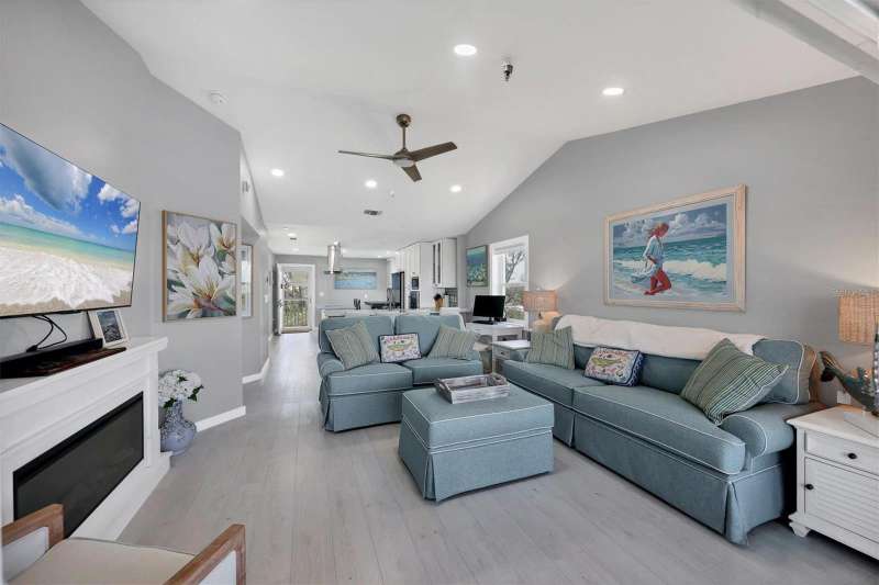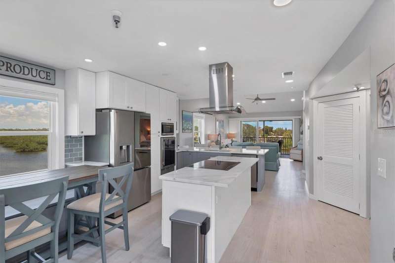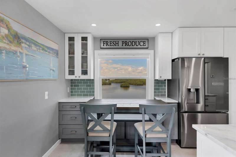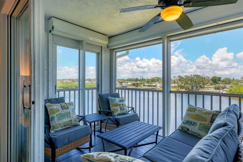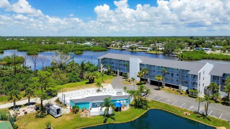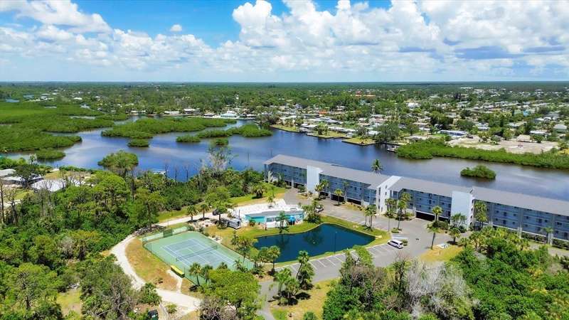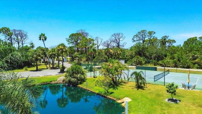 VIEWS! VIEWS! VIEWS! End unit with spectacular Gottfried Creek views from the front and side. Boat slips available for annual rental for $450/yr. (There may be a waiting list.) You're 500 yards and 1 bridge away from Lemon Bay Intercoastal. Less than 5 minutes to the beach. Top floor with an open floor plan and vaulted ceilings makes this unit light and airy. Totally remodeled with granite countertops, newer stainless steel appliances, freshly painted and new LVP flooring through out. TURNKEY FURNISHED! Additional storage included with attic access and a storage cage. Complex offers: elevators, assigned under building parking, open parking for additional vehicles, pool, spa, tennis court, BBQ's, private boat ramp, boat dock slips with water and electricity (extra fee), gated community. Pets: 1 CAT Maximum. Can be rented for a 30 day min., 12 times per year with HOA approval of tenant. Tenant CAN NOT have pets.