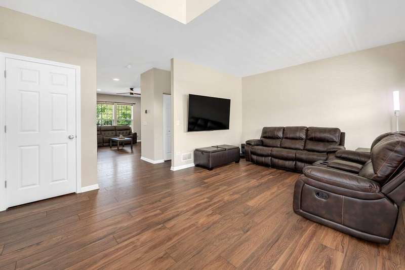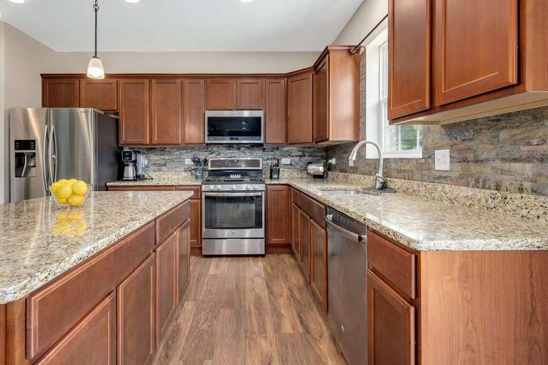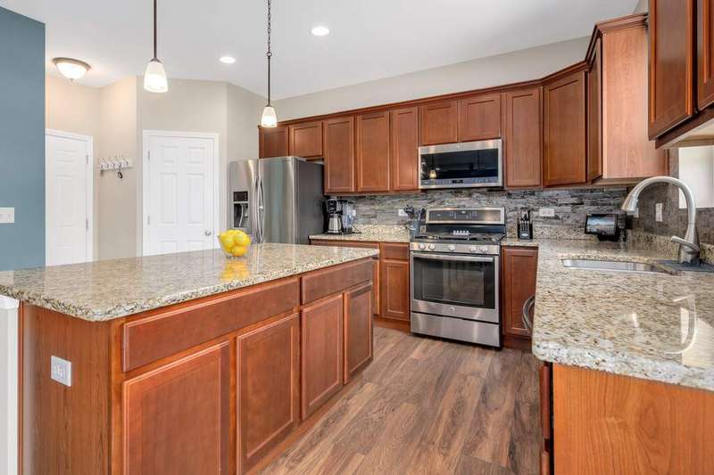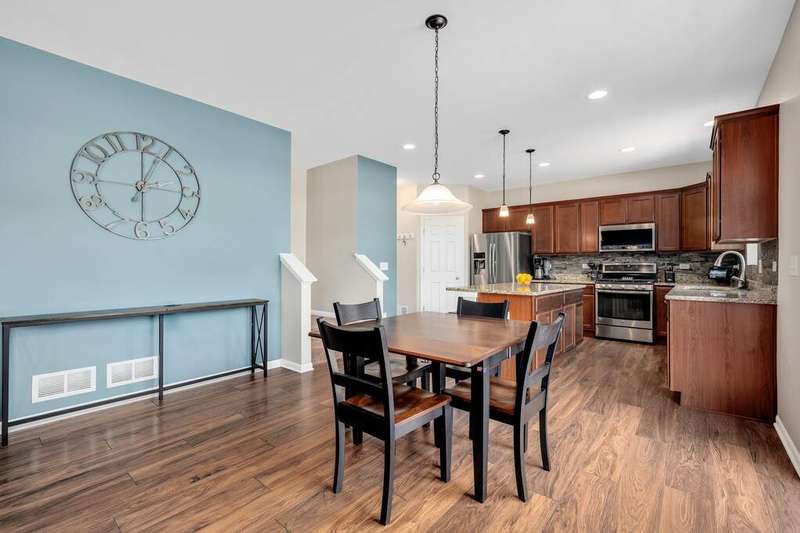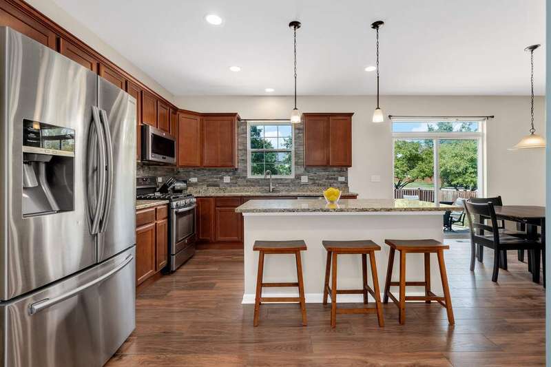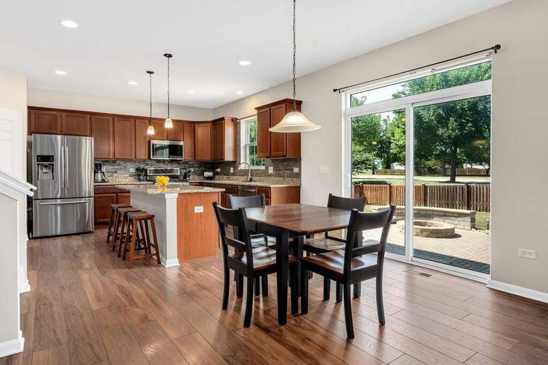 Welcome to wonderful Woodiris, a fabulously upgraded home perfectly situated on a prime corner lot in a family friendly neighborhood. Overflowing with curb appeal, you will be instantly wowed from the moment you step onto the darling front porch. When you walk through the welcoming front door, you are greeted with soaring ceilings, walls of windows-the difference is in the details! Gleaming floors, gorgeous decor, the formal living room is ready for entertaining. The wide open floorplan leads to the heart of the home- the culinary kitchen. What a showstopper! Ample storage thanks to the generous cabinetry, gather around the kitchen island or in the sunny breakfast room. Adjacent is the fantastic family room. Upstairs, you will find three large bedrooms- the primary is an absolute dream! Oversized bedroom with sitting area and vaulted ceilings. Luxury bath with shower with body sprayers and separate soaking tub. The loft/potential 4th bedroom offers opportunities for rest and relaxation. So much storage throughout, don't miss the fabulous basement and three car garage! The backyard is a true oasis; with the most beautiful paver brick patio perfect for entertaining. Complete with firepit and shed wired with electricity. Awesome subdivision with park, pool and clubhouse just steps away- this is the home where your story begins!