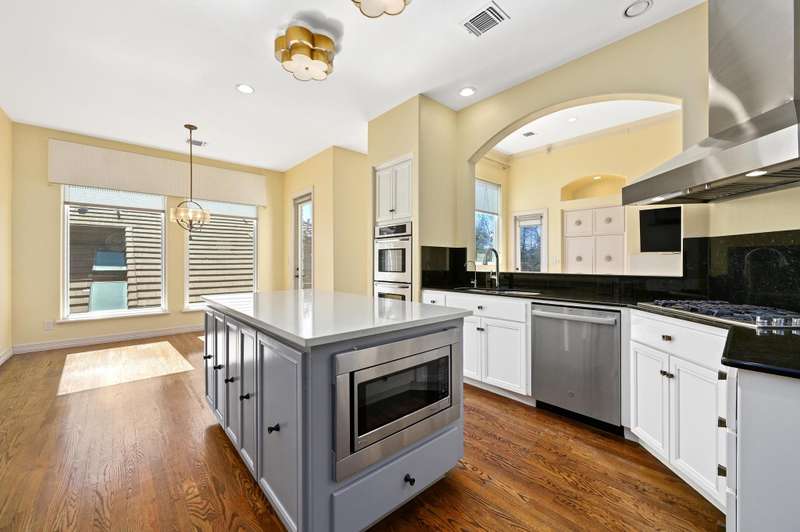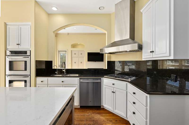 The main-level primary suite is a private retreat overlooking a secluded patio space. A flexible fifth bedroom on the main floor is perfect for a dedicated home office, a cozy library, or even a personal gym--tailored to suit your lifestyle. A tucked-away wine storage room adds a touch of sophistication, perfect for collectors or casual enthusiasts.