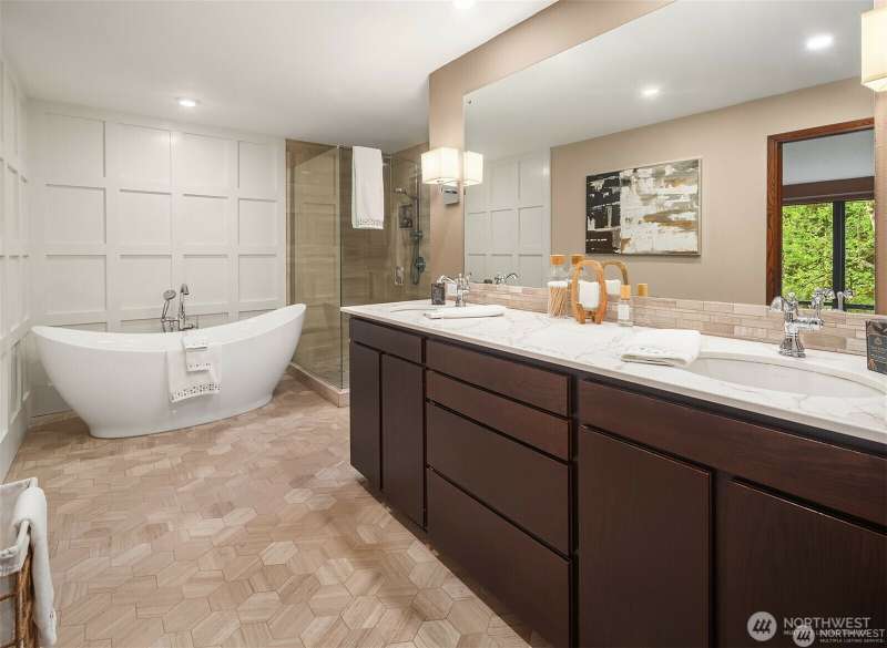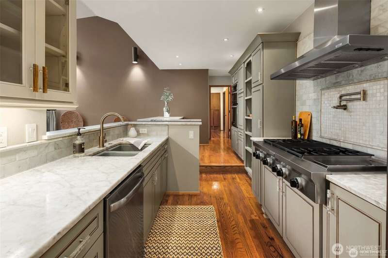 AVAILABLE NOW! Hidden Gem in Cherry Hill, this 3-bed 2.25-bath home blends warm cedar siding w/ sleek metal & glass. Great room stuns w/ soaring 20+ ft ceilings & walls of windows, feel immersed in nature & luxury. Chefs kitchen w/ marble countertops, built-in pantry shelving, 4-burner gas cooktop, griddle, & pot filler. Spacious formal living w/ gas fireplace & French doors opening to deck. Top-floor Primary Suite offers a spa-like 5-piece Carrera bath & dual WICs. Hardwoods throughout, 2-car garage, driveway & st parking. Upper-level firepit. Mins to Bowl, dining & beach. Tenant responsible for utilities. Landscaping incl. in rate. Dogs under 25 lbs ok with addit'I $500 deposit per pet - 2 max. No Cats, firm. Edmonds Schools!