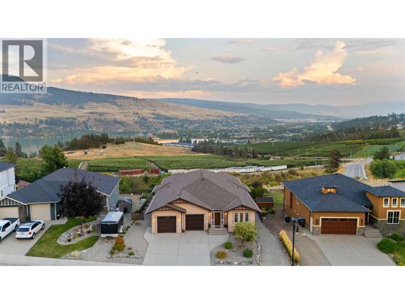 ""You can't put a little house on a big piece of land,"" said the seller while explaining how this dream home was designed to maximize the lot, capitalize on lake views AND orchard views, all while being open concept and easy to maintain. Located on one of Lake Country BC's most sought after streets, this 4,700+ sq ft home is a rare offering. On the 2,100 sq ft main floor, you will find three bedrooms and two bathrooms, an open kitchen and great room and a walk in pantry as well as a spacious laundry room. The kitchen presents an excellent space for entertaining either in the large dining area or out on the 533 sq ft patio. The expansive views this home provides will dawn on you the moment you walk in -- you will feel like you can reach out and pick the apples from all the nearby orchards. Down a wide (lit) staircase to the walk out basement you will find a large family room where the options are endless. Card table? Pool table? There's room for both, and for your kids to run wild. There is a small wet bar area, that could easily be expanded for your games room. Then there's the bonus room which is currently being used as an arts and crafts area but could also be a theater room, golf sim, or a bedroom -- which would make the basement 2 bdrm/1bth. Out on the 500 sq ft covered patio there's a hook up for your hot tub or swim spa where you can continue to soak in the views (pun intended). The yard is xeriscape with a little garden. There's RV AND boat Parking. The home has been meticulously cared for and pride of ownership shines on this one. A couple extras include pre-engineering for and ELAVATOR and a reverse osmosis water system. There is potential to add a second garage with carriage suite as well. (id:58403)