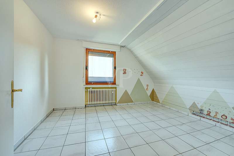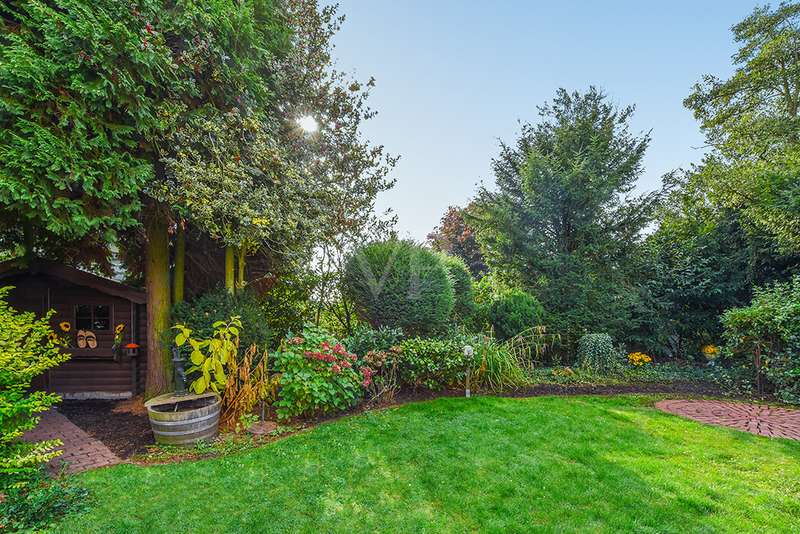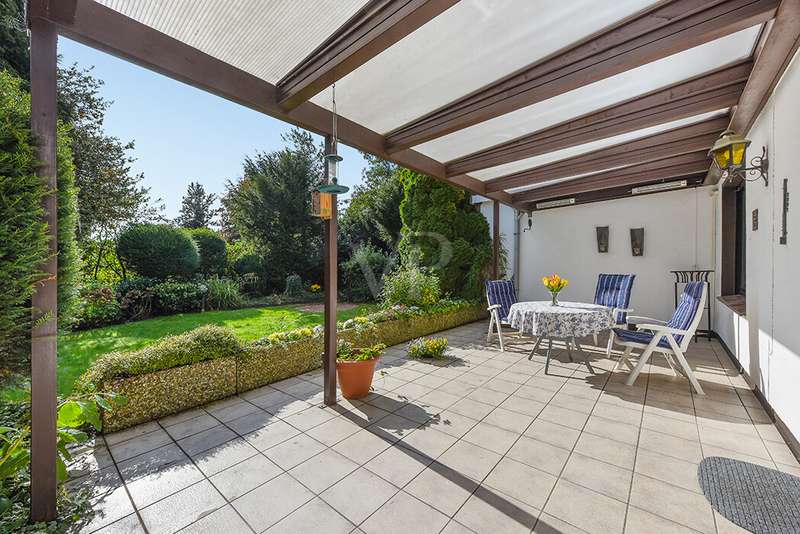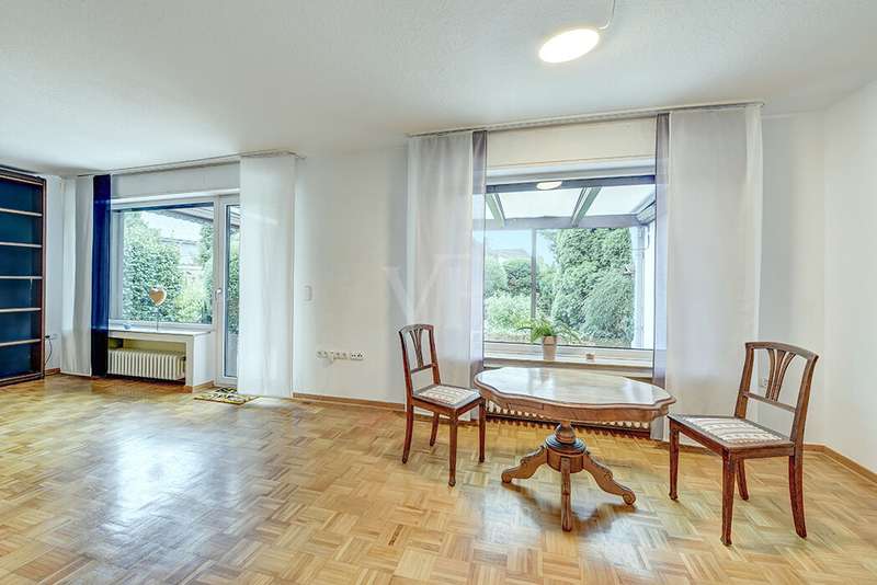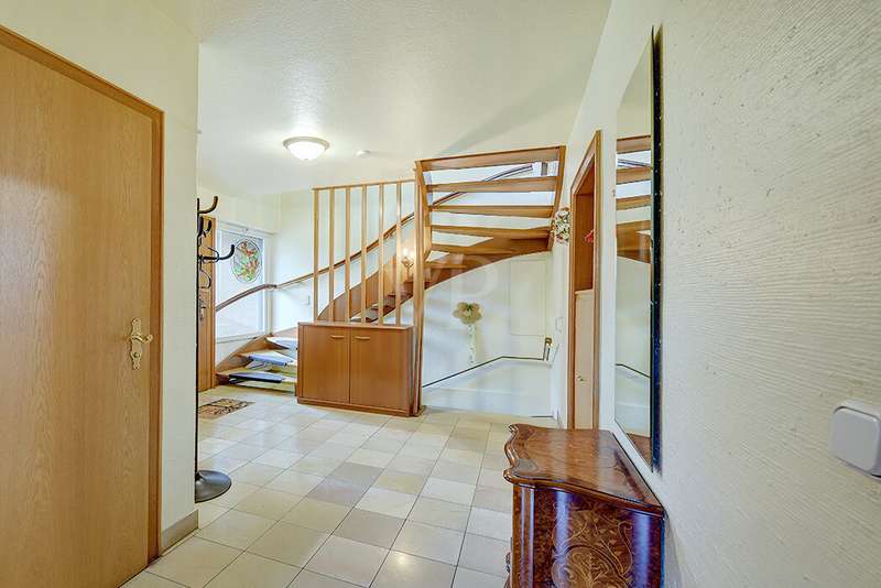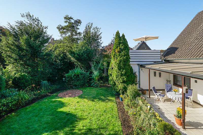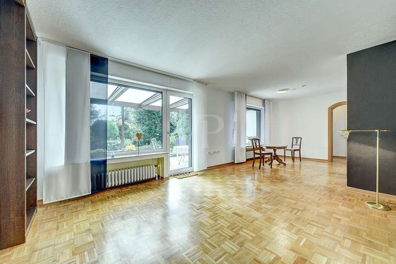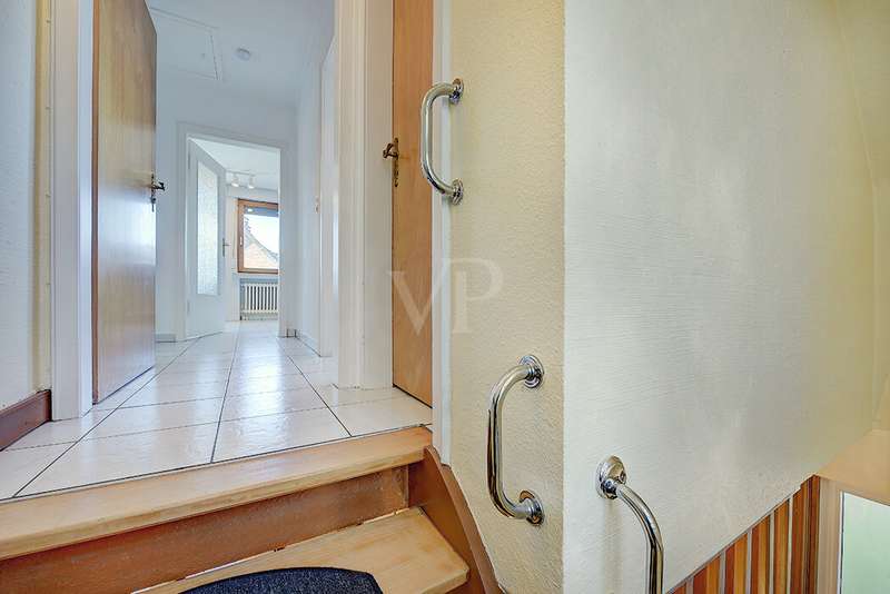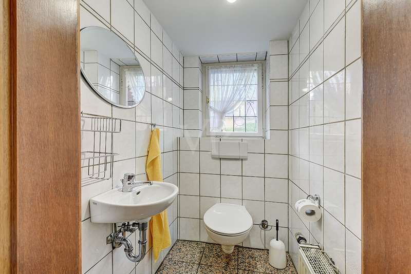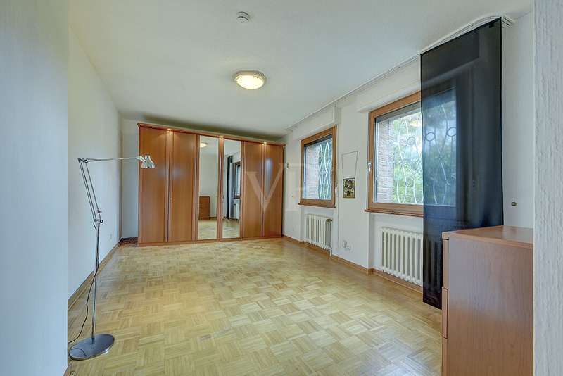 This charming detached house, built in 1962, impresses with a living space of 140 m² and a spacious plot of 590 m². This beautiful old building offers a total of 5.5 rooms, including three bedrooms, as well as two bathrooms, a guest WC and a WC in the basement. An extension with an additional cellar from 1976 completes the space on offer and enables a wide range of possible uses for this real estate treasure. The elegance of the period is immediately apparent upon entering the house, as the bright and spacious entrance area still features high-quality Solnhofen stone slabs. The hallway leads to the right via a small passageway into the spacious living and dining room. Two large windows plus a patio door are installed here, providing pleasant lighting conditions, a wonderful view of the garden and direct access to the covered terrace. The flooring in the living and dining area consists of timeless, high-quality strip parquet, while the bathroom, guest WC and kitchen are fitted with light-colored tiles. The highlight of the extension is a bedroom, which has a separate bathroom and is separated from the rest of the ground floor living area by a hallway. A floor-to-ceiling window can easily be retrofitted in the hallway and would then also provide access to the front garden, which also gives you external access to the extension from the street side. This opens up a wide range of possible uses for this special area. The outdoor area impresses with a large stone terrace with a roof from 2016, as well as a well-kept wooden garden shed. The beautifully landscaped, large garden invites you to realize a wide variety of leisure activities. A solidly built garage with an electric up-and-over door and access to the garden, as well as an outdoor parking space are also available. The upper floor comprises a further bright bathroom with round shower, WC and washbasin, which can be reached via the staircase with an elegant wooden staircase. All bedrooms and the bathroom on the upper floor have tiled floors. The bedroom and the children's room are characterized by a good room layout with plenty of cupboard and storage space. The guest room or home office has a spacious terrace, which is located on the extension on the ground floor. An ideal retreat to escape the hustle and bustle of the family. The basement, including the extension, offers plenty of storage space and room for hobbies, sports equipment, laundry, supplies and heating, including an oil tank, and is also accessible via an external staircase. Heating is provided by an oil heating system with burner. The building's own sewer connection was modernized in 2011 using the inliner method. The property has been modernized in various areas as required. Most of the façade was insulated and clinkered in 1989. Some of the windows are of a high-quality, white plastic design with double glazing, and some are double-glazed wooden windows. Some windows have roller blinds and window locks for additional security. DSL connection is available. The property is furnished to a good standard. All areas present themselves in a very loving, well-kept condition. Here you live in a quiet, family-friendly environment with good connections and optimal development opportunities on an attractive plot. Come and see for yourself the space on offer and the numerous details of this well-kept property. We look forward to receiving your inquiry to arrange a viewing appointment.