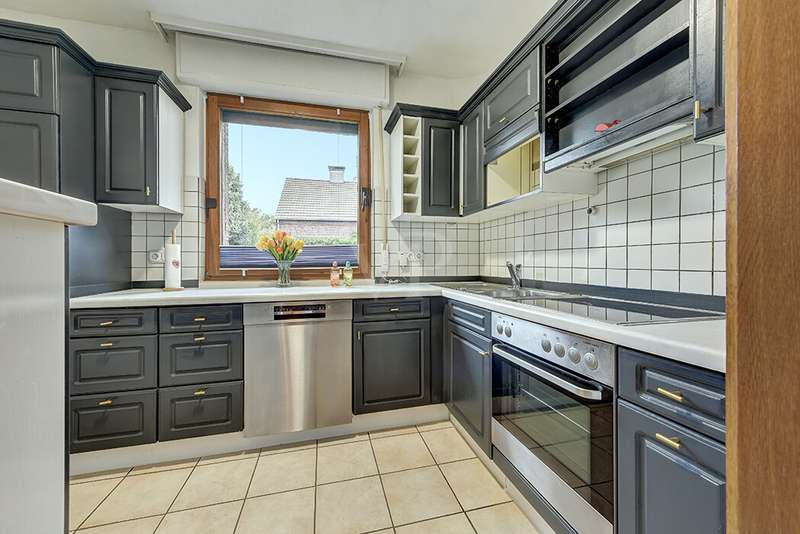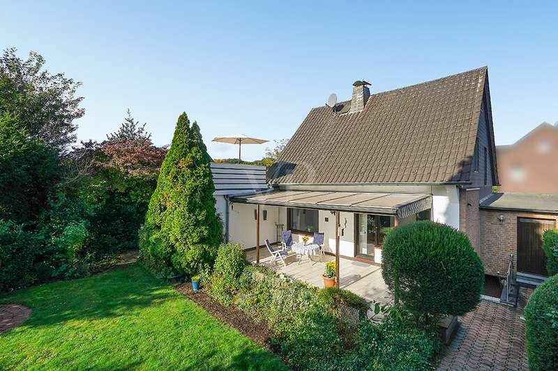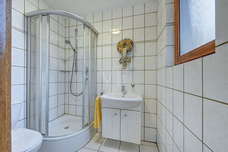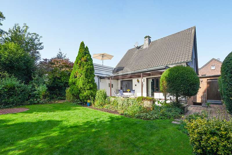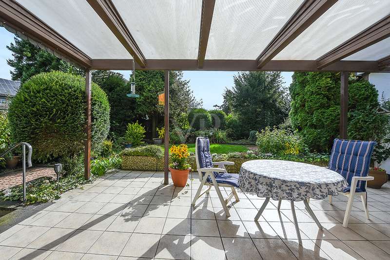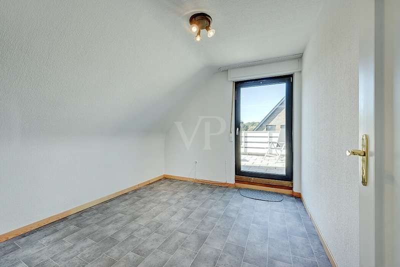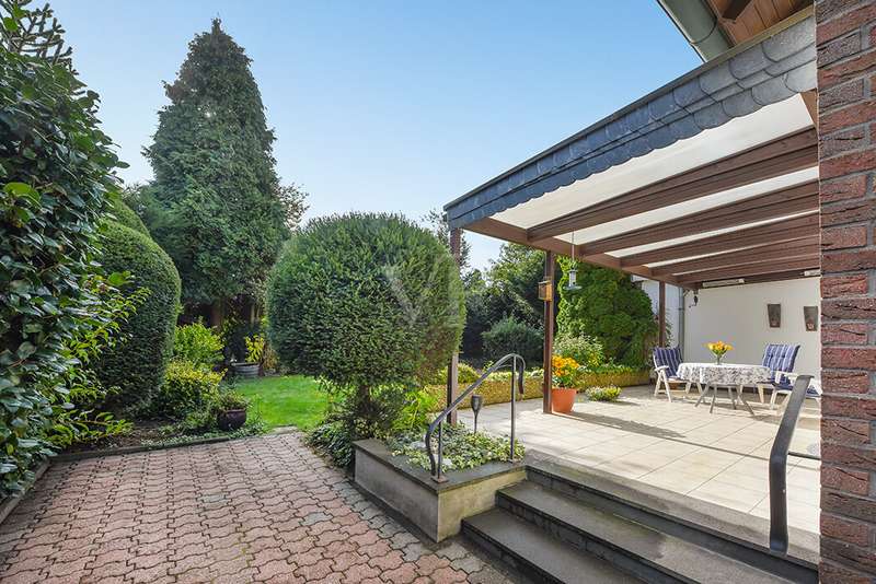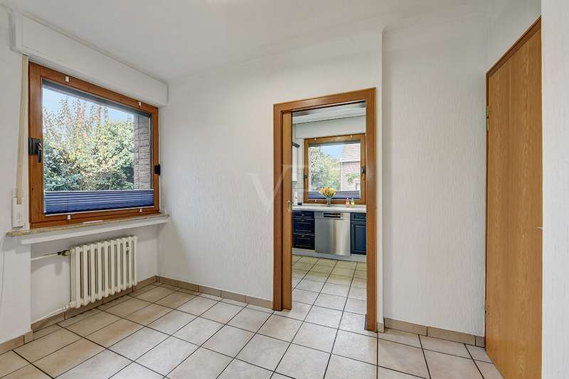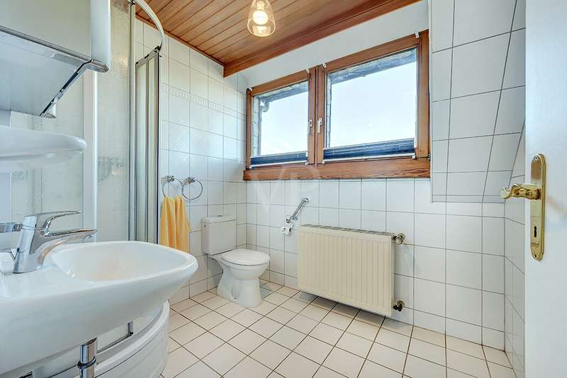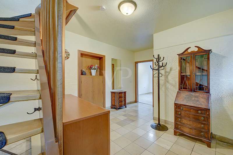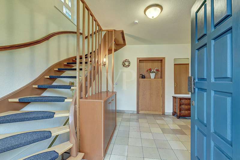 This charming detached house, built in 1962, impresses with a living space of 140 m² and a spacious plot of 590 m². This beautiful old building offers a total of 5.5 rooms, including three bedrooms, as well as two bathrooms, a guest WC and a WC in the basement. An extension with an additional cellar from 1976 completes the space on offer and enables a wide range of possible uses for this real estate treasure. The elegance of the period is immediately apparent upon entering the house, as the bright and spacious entrance area still features high-quality Solnhofen stone slabs. The hallway leads to the right via a small passageway into the spacious living and dining room. Two large windows plus a patio door are installed here, providing pleasant lighting conditions, a wonderful view of the garden and direct access to the covered terrace. The flooring in the living and dining area consists of timeless, high-quality strip parquet, while the bathroom, guest WC and kitchen are fitted with light-colored tiles. The highlight of the extension is a bedroom, which has a separate bathroom and is separated from the rest of the ground floor living area by a hallway. A floor-to-ceiling window can easily be retrofitted in the hallway and would then also provide access to the front garden, which also gives you external access to the extension from the street side. This opens up a wide range of possible uses for this special area. The outdoor area impresses with a large stone terrace with a roof from 2016, as well as a well-kept wooden garden shed. The beautifully landscaped, large garden invites you to realize a wide variety of leisure activities. A solidly built garage with an electric up-and-over door and access to the garden, as well as an outdoor parking space are also available. The upper floor comprises a further bright bathroom with round shower, WC and washbasin, which can be reached via the staircase with an elegant wooden staircase. All bedrooms and the bathroom on the upper floor have tiled floors. The bedroom and the children's room are characterized by a good room layout with plenty of cupboard and storage space. The guest room or home office has a spacious terrace, which is located on the extension on the ground floor. An ideal retreat to escape the hustle and bustle of the family. The basement, including the extension, offers plenty of storage space and room for hobbies, sports equipment, laundry, supplies and heating, including an oil tank, and is also accessible via an external staircase. Heating is provided by an oil heating system with burner. The building's own sewer connection was modernized in 2011 using the inliner method. The property has been modernized in various areas as required. Most of the façade was insulated and clinkered in 1989. Some of the windows are of a high-quality, white plastic design with double glazing, and some are double-glazed wooden windows. Some windows have roller blinds and window locks for additional security. DSL connection is available. The property is furnished to a good standard. All areas present themselves in a very loving, well-kept condition. Here you live in a quiet, family-friendly environment with good connections and optimal development opportunities on an attractive plot. Come and see for yourself the space on offer and the numerous details of this well-kept property. We look forward to receiving your inquiry to arrange a viewing appointment.