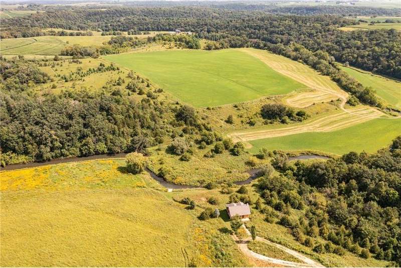 Looking for a slice of paradise tucked away on almost 100 acres with incredible surroundings in this well maintained seasonal custom built cabin offering 2 large bedrooms, tiled 3/4 bath, cozy eat-in kitchen, living room with cozy wood fireplace, hardwood floors throughout most of cabin, an incredible 3 season back deck revealing picturesque views of your heavily stocked trout stream with hill side of hardwoods as back drop with plenty of wildlife, groomed trails that follow Riceford Creek and prairie meadow views. There is approximately 26 acres of tillable, along with CRP, pollinator and RIM program. A great retreat for hunting, nature walks, fishing, land stewardship and more. A place to kick back get out of the hustle and bustle. Live with nature and all the wildlife on this remarkable property. 30 mins to Lanesboro MN, 45 minutes to La Crosse, WI, 1 hour to Rochester, MN and 2.5 hours to Twin Cities.