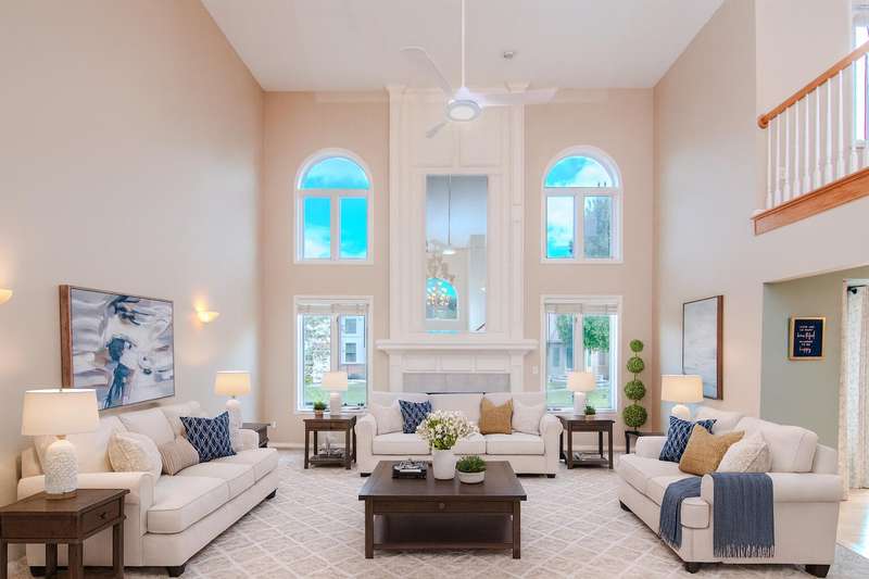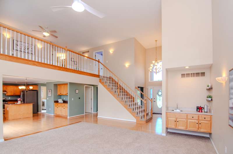 Welcome to this stunning sun-filled home located in Macomb Township, within the award-winning Chippewa Valley School District. Step into the grand two-story entrance that flows into an elegant living room featuring a cozy gas fireplace, built-in butler pantry, and an open loft perfect for additional living space. The expansive first-floor master suite offers a bay window, walk-in closet, luxurious jetted tub, separate shower, and dual vanity. A versatile first-floor flex room provides the option of a traditional dining room or private home office. The finished basement extends your living area with a seamless combination of entertainment and relaxation zones, while still offering generous storage. Outside, enjoy a fully fenced backyard designed for privacy, complete with a stamped concrete patio and built-in grill, ideal for gatherings and outdoor enjoyment. This home blends elegance, comfort, and convenience in a desirable neighborhood setting.