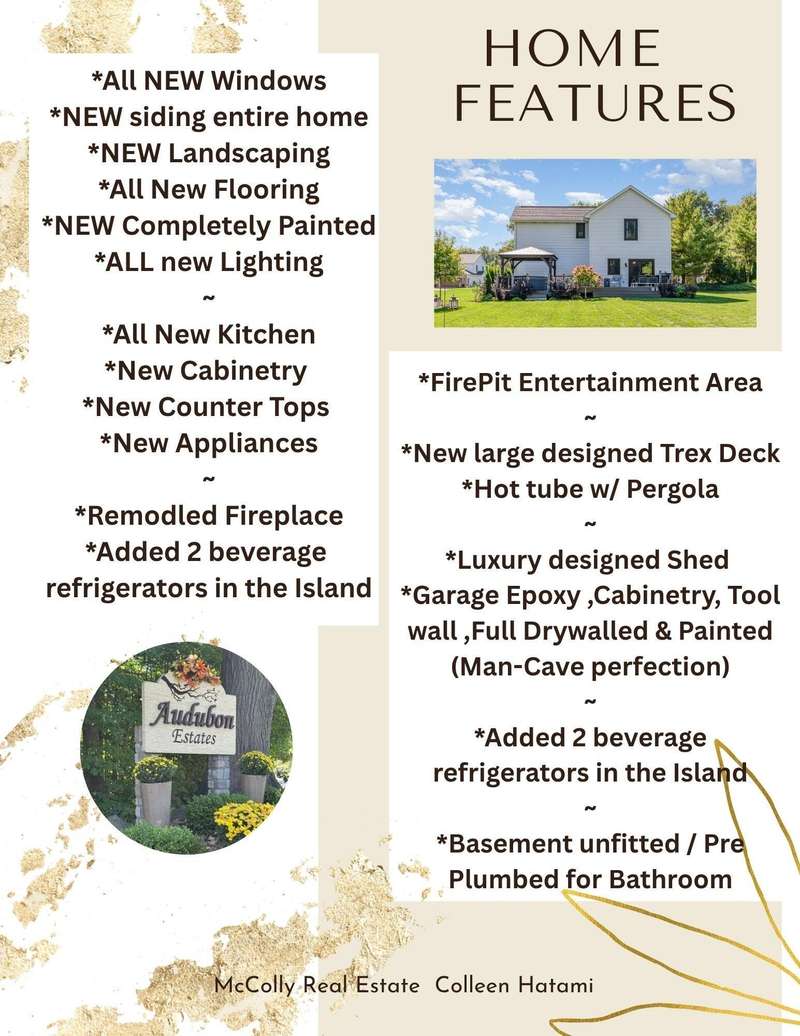 Audubon Estates-Step inside this beautiful two-story in the coveted Audubon Estates, and you'll instantly feel the difference a thoughtfully reimagined home can make. Every detail has been carefully chosen -- from the all-new windows and siding that give the exterior a fresh, timeless face, to the new flooring and lighting that set the stage for life's everyday moments inside. The kitchen is the heart of the home, and this one was designed for both function and connection. A generous island anchors the space, paired with a breakfast bar and two beverage refrigerators -- making it as easy to gather over morning coffee as it is to host a celebration. And then, there's the garage. More than just parking, this space is an ultimate man cave -- finished with sleek epoxy flooring and built-in cabinetry. It's a place for projects, collections, or simply retreating into your own corner of the home. Outdoors, the living continues. Freshly updated landscaping frames a yard designed for memory-making: a fire pit for cozy evenings, a pavilion-covered hot tub for year-round enjoyment, and a brand-new maintenance-free deck that invites effortless entertaining. Even the shed is elevated -- high-end and ready for your creative projects. Upstairs, the primary suite offers a retreat that feels both indulgent and restorative, with a spacious bathroom designed to give you room to exhale. The unfinished basement waits with possibility, already roughed in for an additional bath -- ready to become whatever you imagine. Perfectly placed near shopping, dining, and with easy highway access, this home is more than move-in ready -- it's ready to tell its next story.